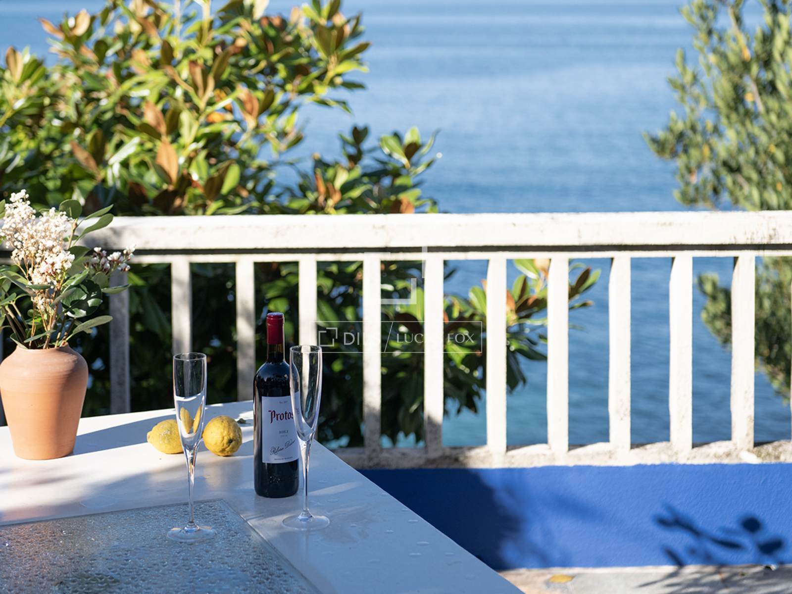 On the ground floor, there is a spacious open-plan living room, designed for spending time with family and friends surrounded by nature and the sea. Through the glass door, there is a porch and an original tiled terrace, ideal for summer gatherings. There is also a barbecue area.
