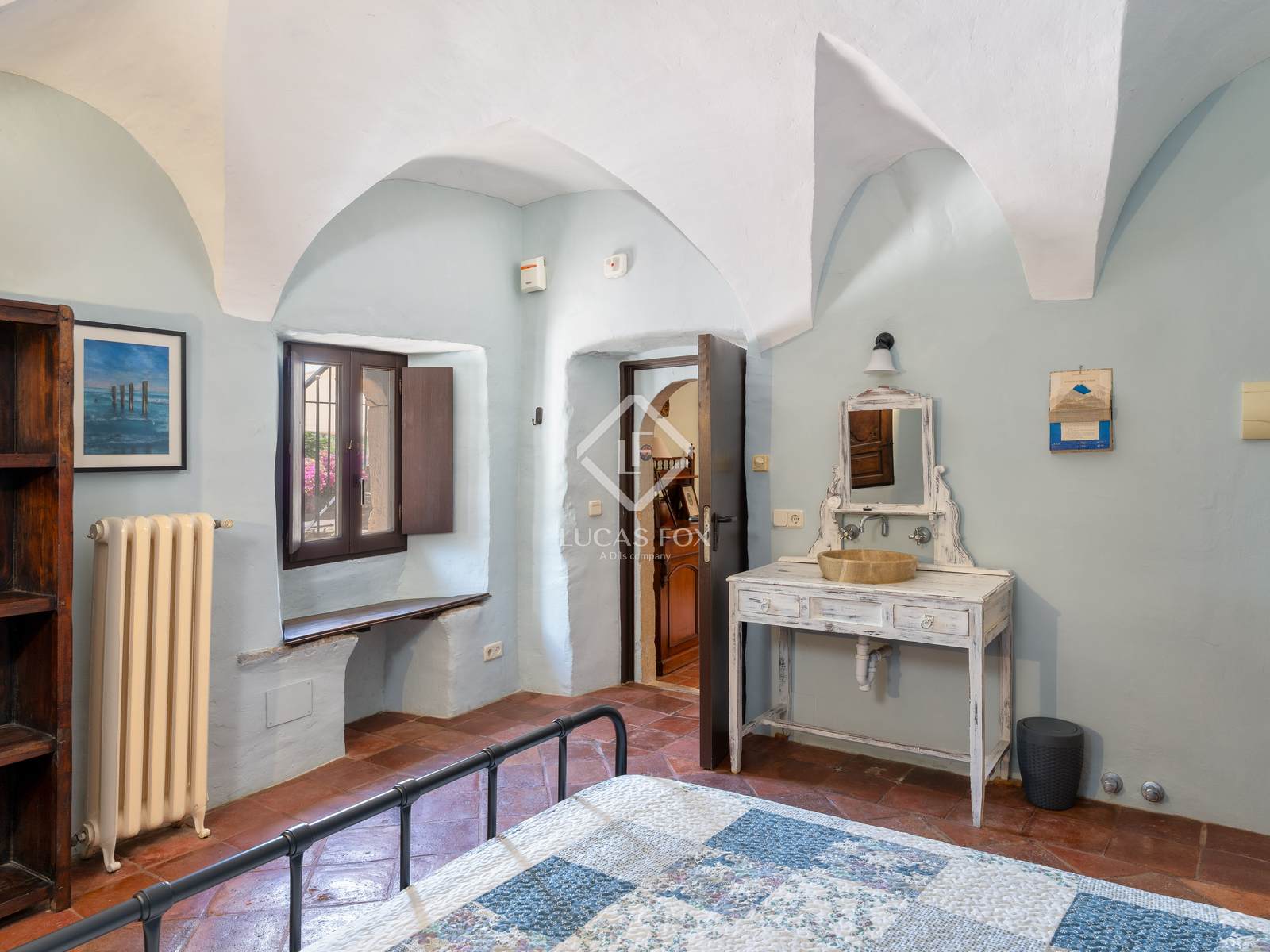 With a basilica-like structure, the country house preserves original architectural elements of great heritage value. Its elevated central section and gabled roofs define the building's distinctive silhouette. The main façade features a voussoired doorway with a lowered arch and an old window with a molded lintel, currently converted into a French window. On the top floor, a Gothic-style trefoil window lends historic character and authenticity to the building.