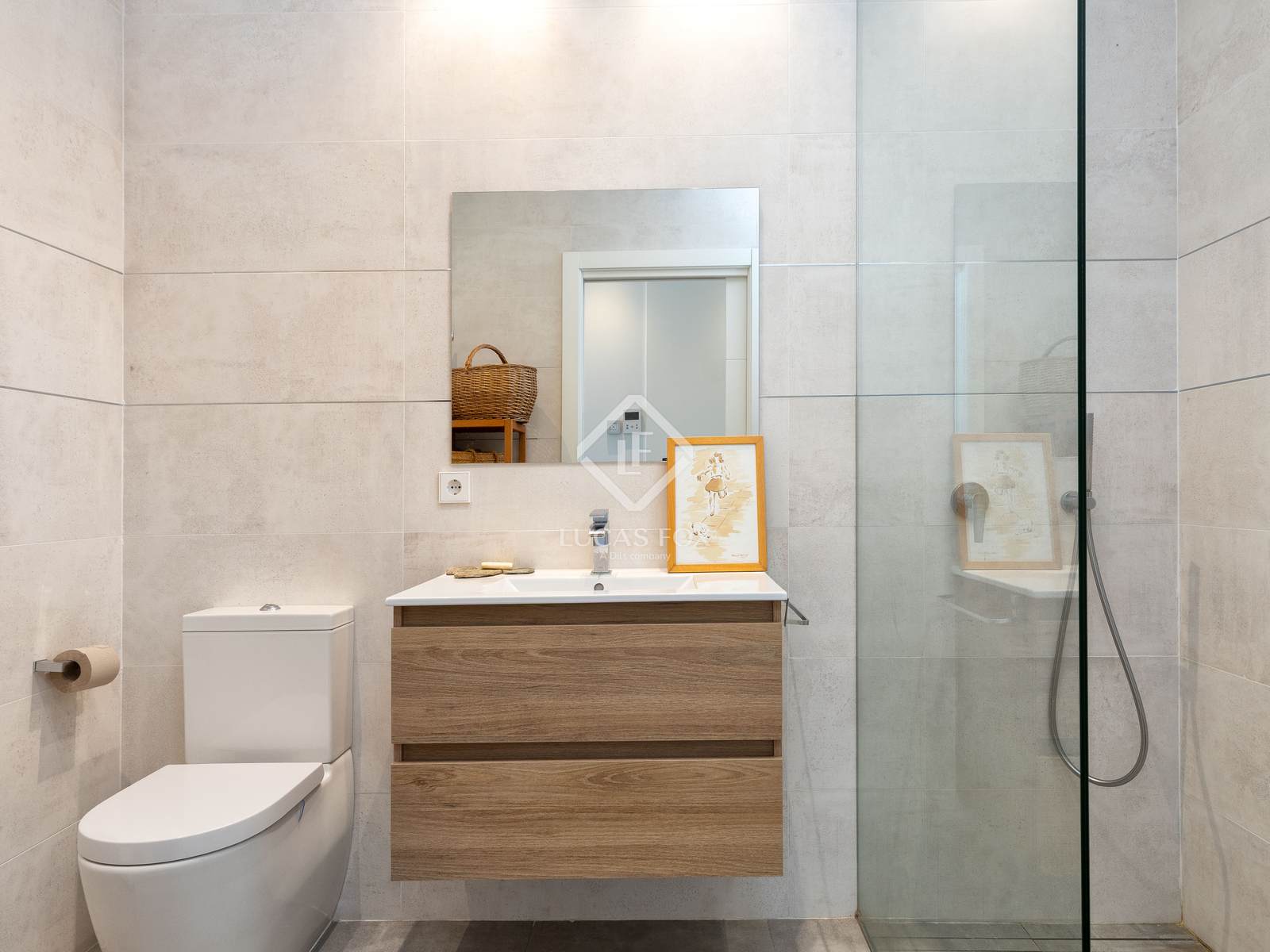 Upstairs, the night area is designed for relaxation and privacy. The generous main suite includes large windows with park views, built-in wardrobes, and a stylish en-suite bathroom with a walk-in shower. Two additional double bedrooms share a modern bathroom, and one has access to a large private terrace, perfect for entertaining or a second lounge area.