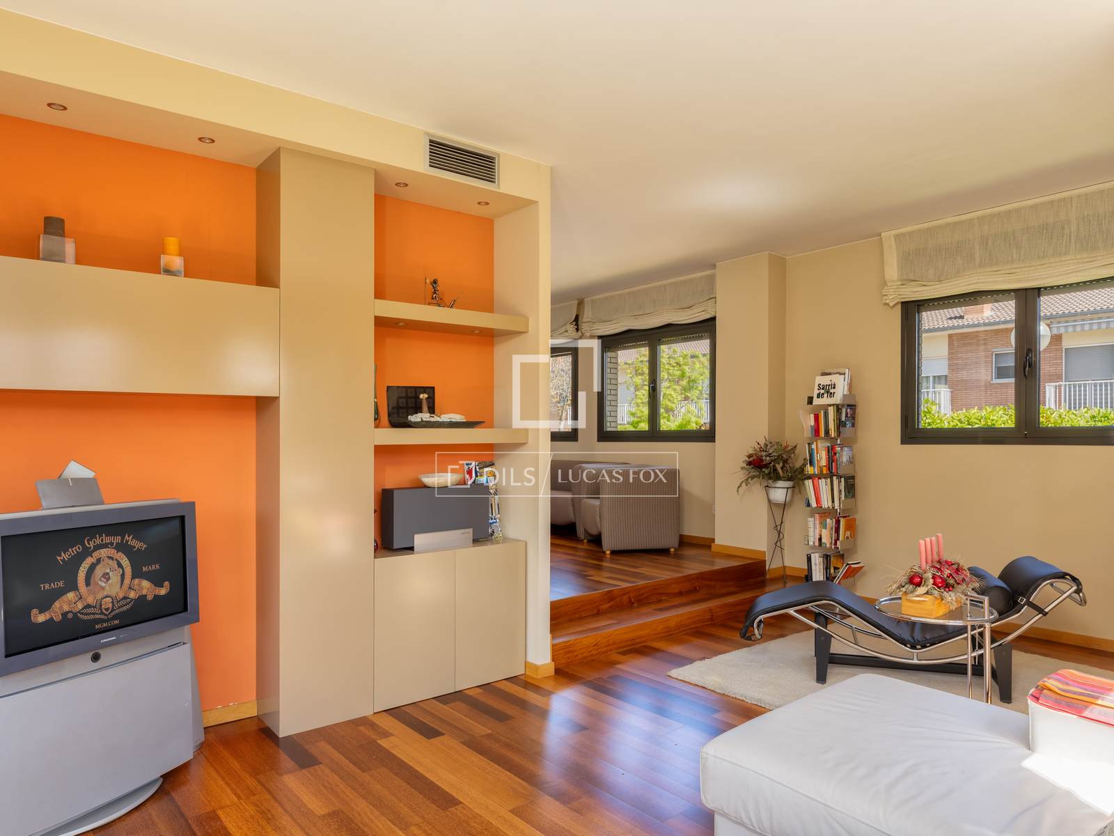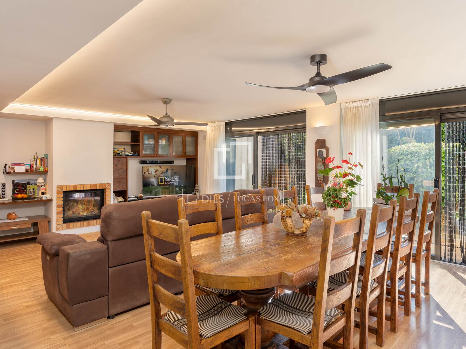 The property is distributed over three levels, with the main living area set on the ground floor. A large entrance hall welcomes us and naturally separates the day and night areas. On one side, we find a bright and inviting living space, including a large living room and a cosy sitting area that flows seamlessly out to the garden. The open kitchen with dining area also enjoys direct access to the outdoor space, creating the perfect setting for everyday living and entertaining.