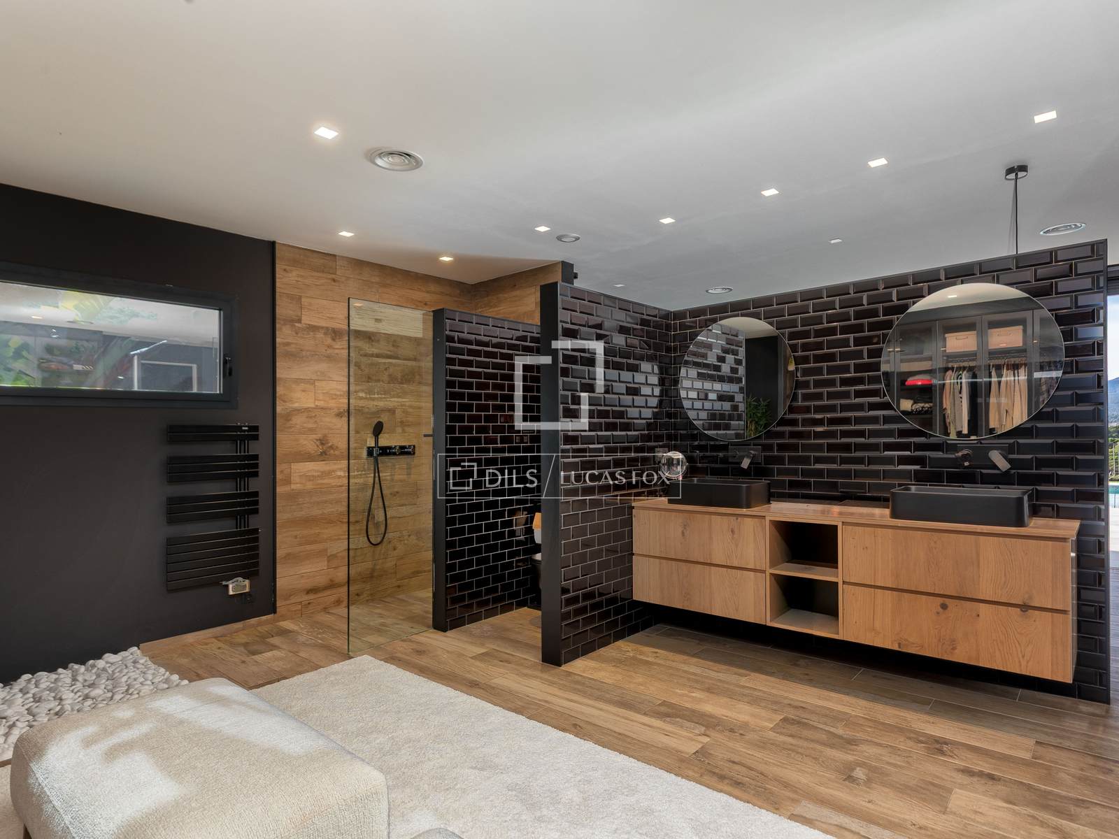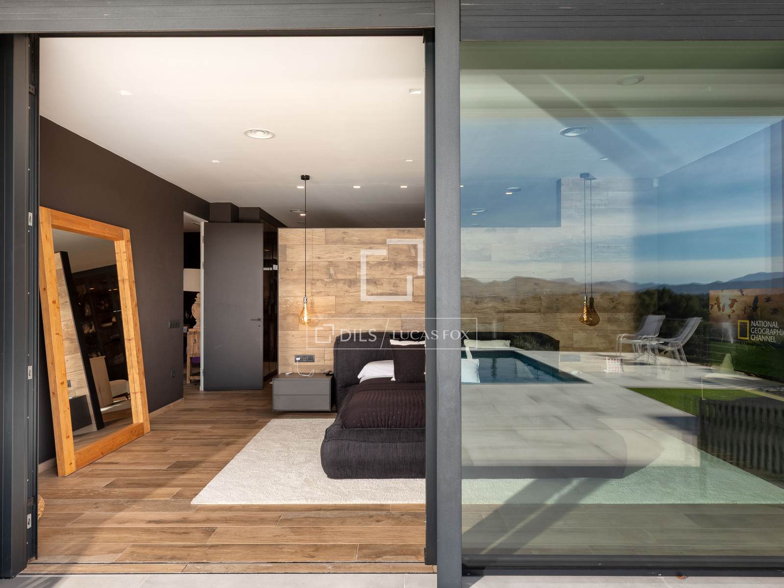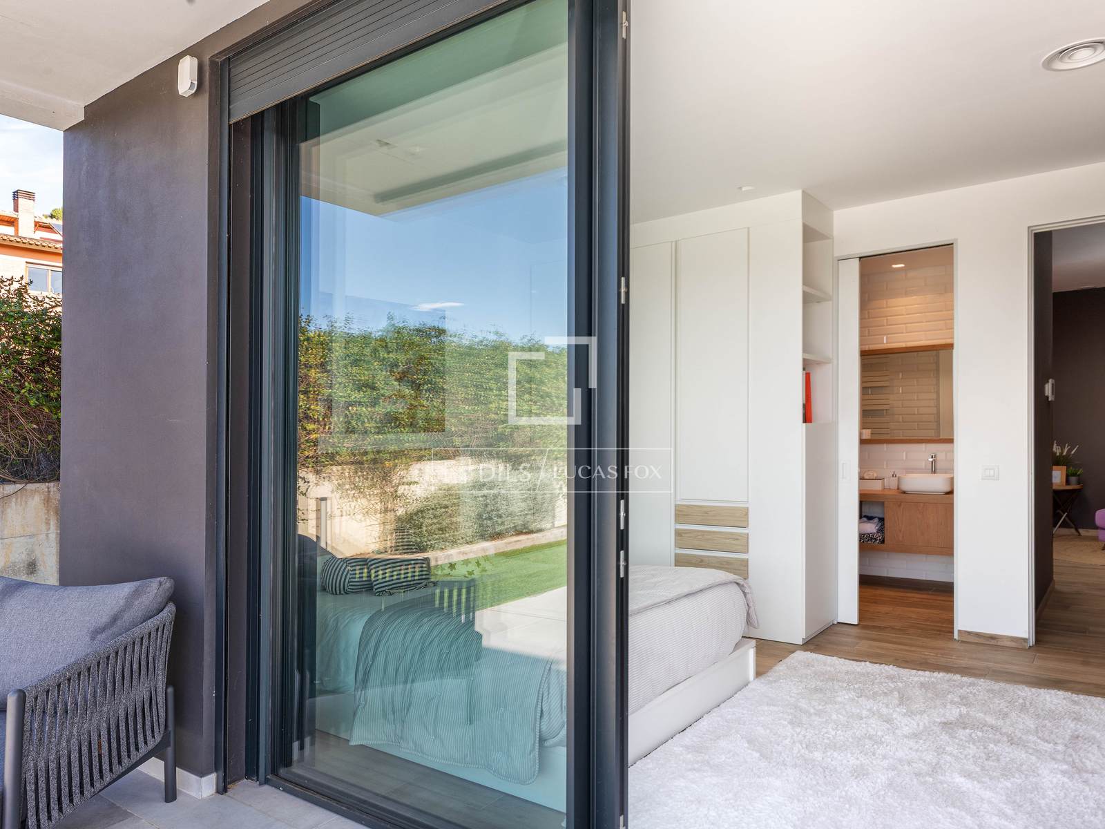 Descending to the lower level, the private sleeping area opens directly onto the garden. Here you will find a spacious double bedroom with en-suite bathroom and direct access to the outdoor space, as well as an impressive primary suite featuring an open walk-in wardrobe, a generous bathroom, and exceptional views to wake up to every morning. From this level, there is direct access to the garden and swimming pool, creating a seamless indoor-outdoor lifestyle.