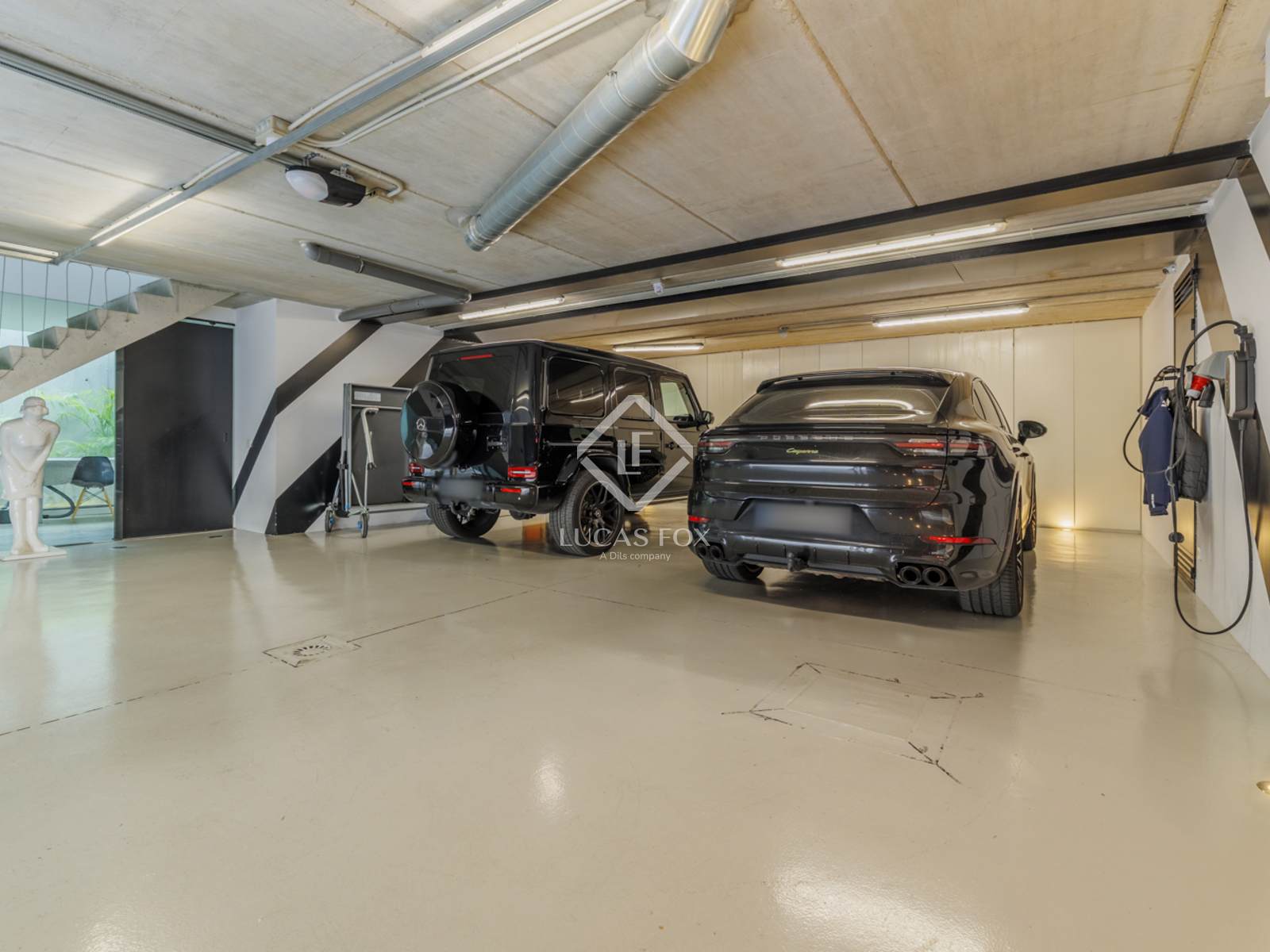 The ground floor offers a versatile multi-purpose room, a cinema room, a staff bedroom with private bathroom, a separate kitchen with an English patio, a full bathroom , a spacious laundry room , and a storage room. The garage, easily maneuverable and with direct access to the property, has space for four or five vehicles and includes an electric car charging point.