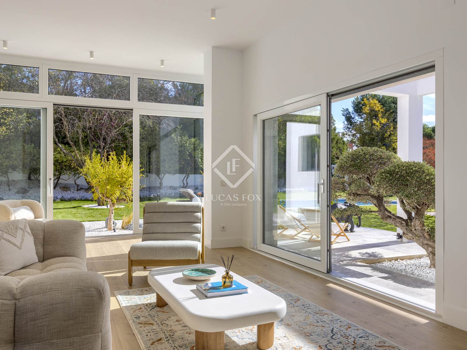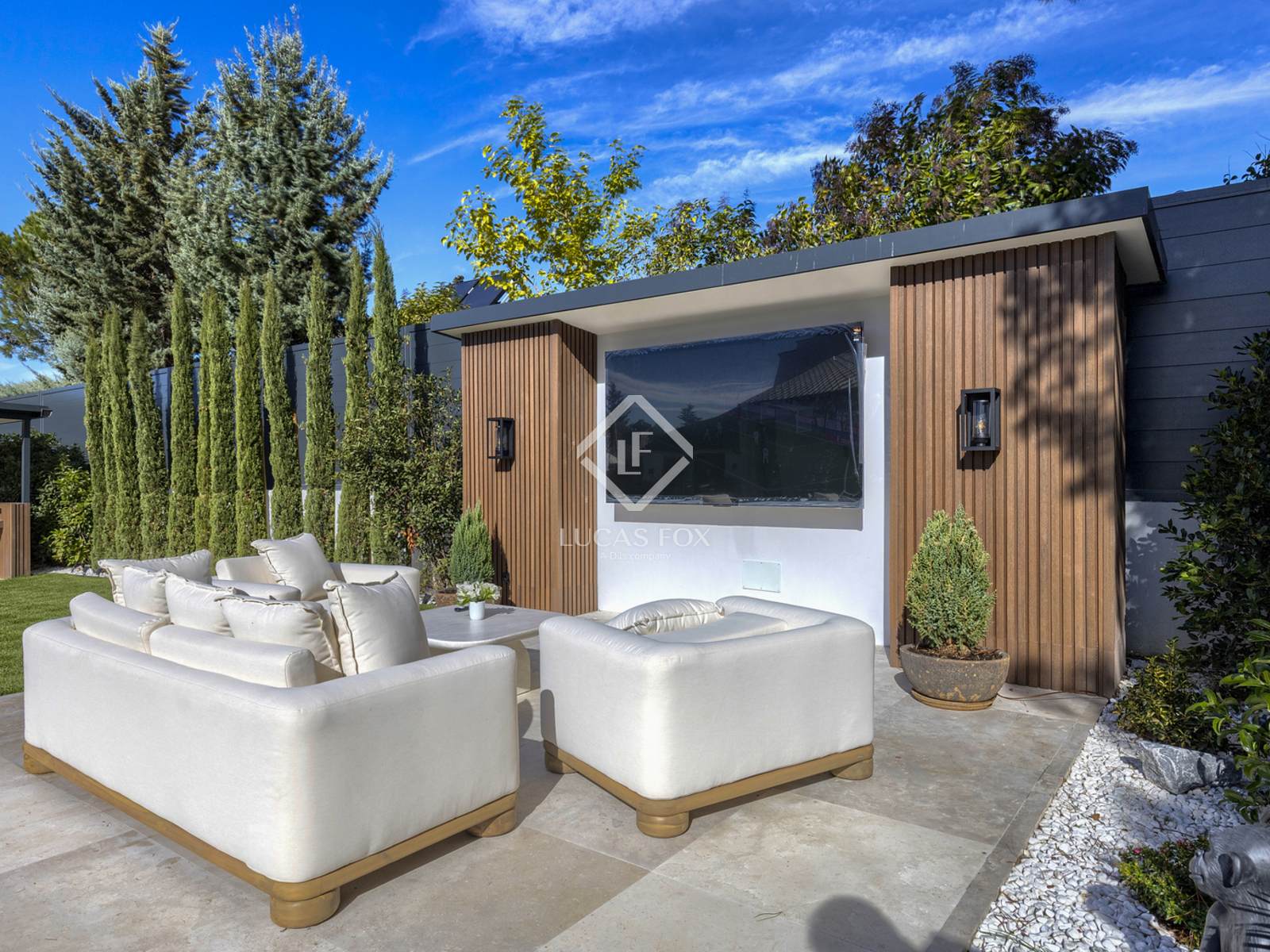 Lucas Fox is delighted to exclusively present this extraordinary luxury detached villa , recently undergoing a complete renovation that blends cutting-edge architecture with the warmth of a home designed with meticulous attention to detail. High ceilings, abundant natural light, and carefully selected materials take center stage in every room, while a spectacular private garden embraces the entire property, creating an oasis of privacy and serenity. The exterior area offers a world of enjoyment with a swimming pool, a sophisticated exterior summer kitchen, and an elegant exterior living room with a TV, ideal for entertaining, relaxing, and enjoying the outdoors in complete comfort.