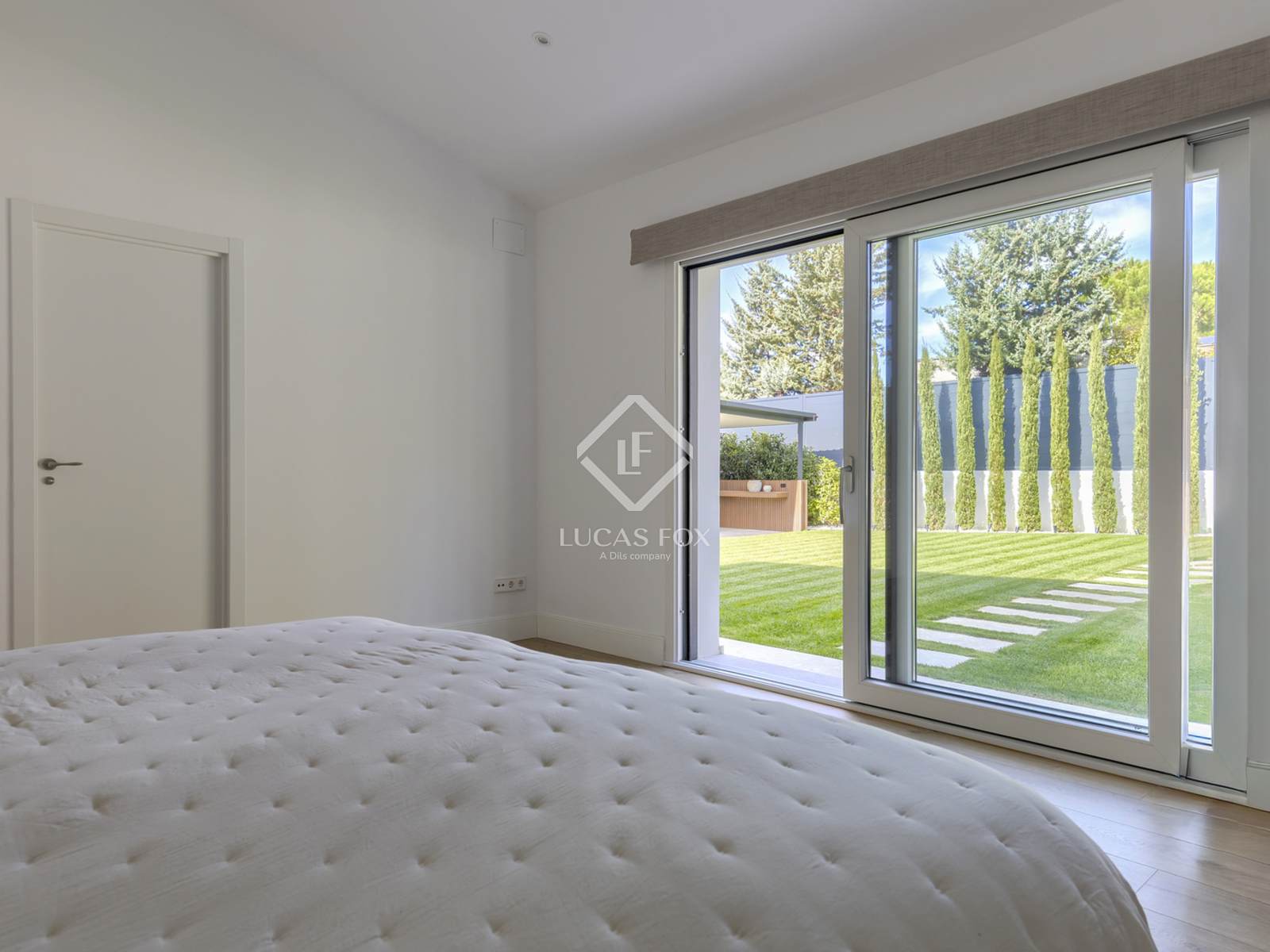 Beautifully renovated villa with five bedrooms, a large living room opening onto the garden and cozy spaces with high ceilings; located in Bonanza, Boadilla del Monte.
