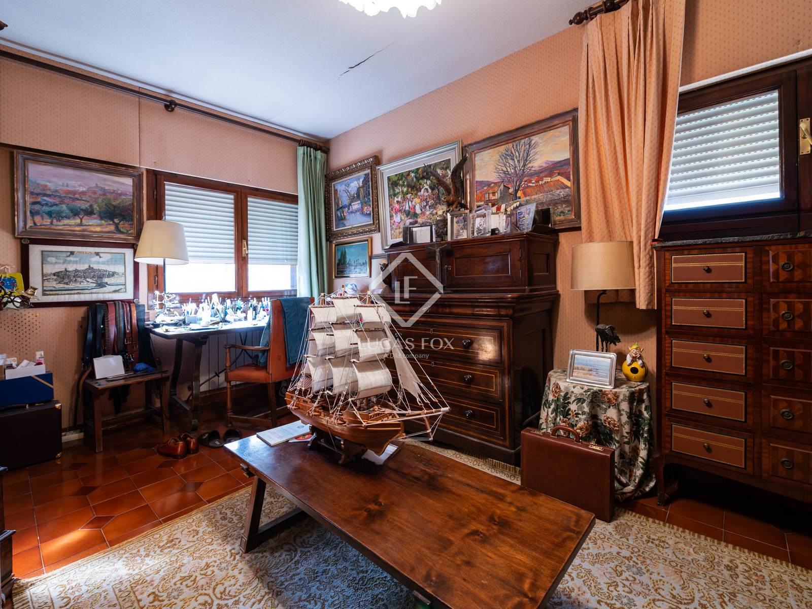 The upper floor houses two splendid master bedrooms, each with a private living room , dressing room, and en-suite bathroom . These are complemented by two additional spacious bedrooms that share a full bathroom . A bright and charming library is also located on this level.