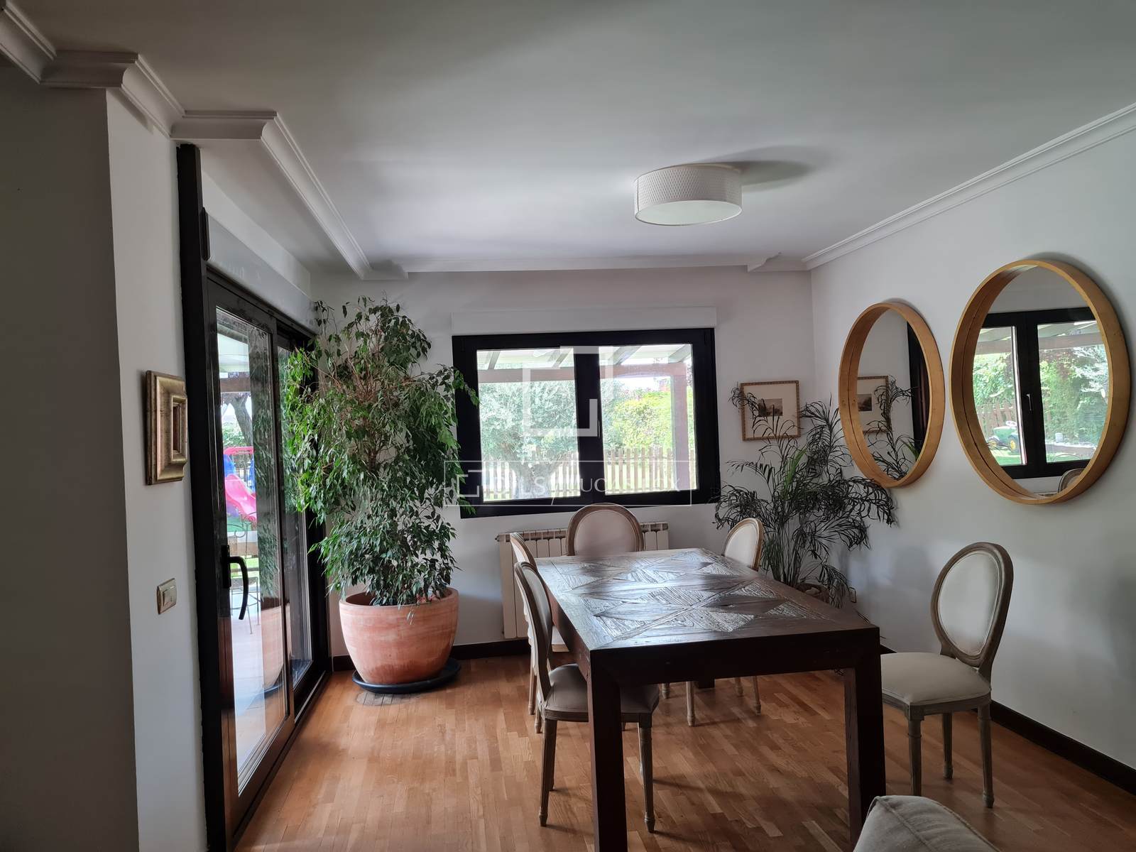 Elegant entrance hall leading to a large living-dining room with direct access to the porch and garden. Spacious kitchen with a dining area, also with access to the exterior, perfect for everyday life.
