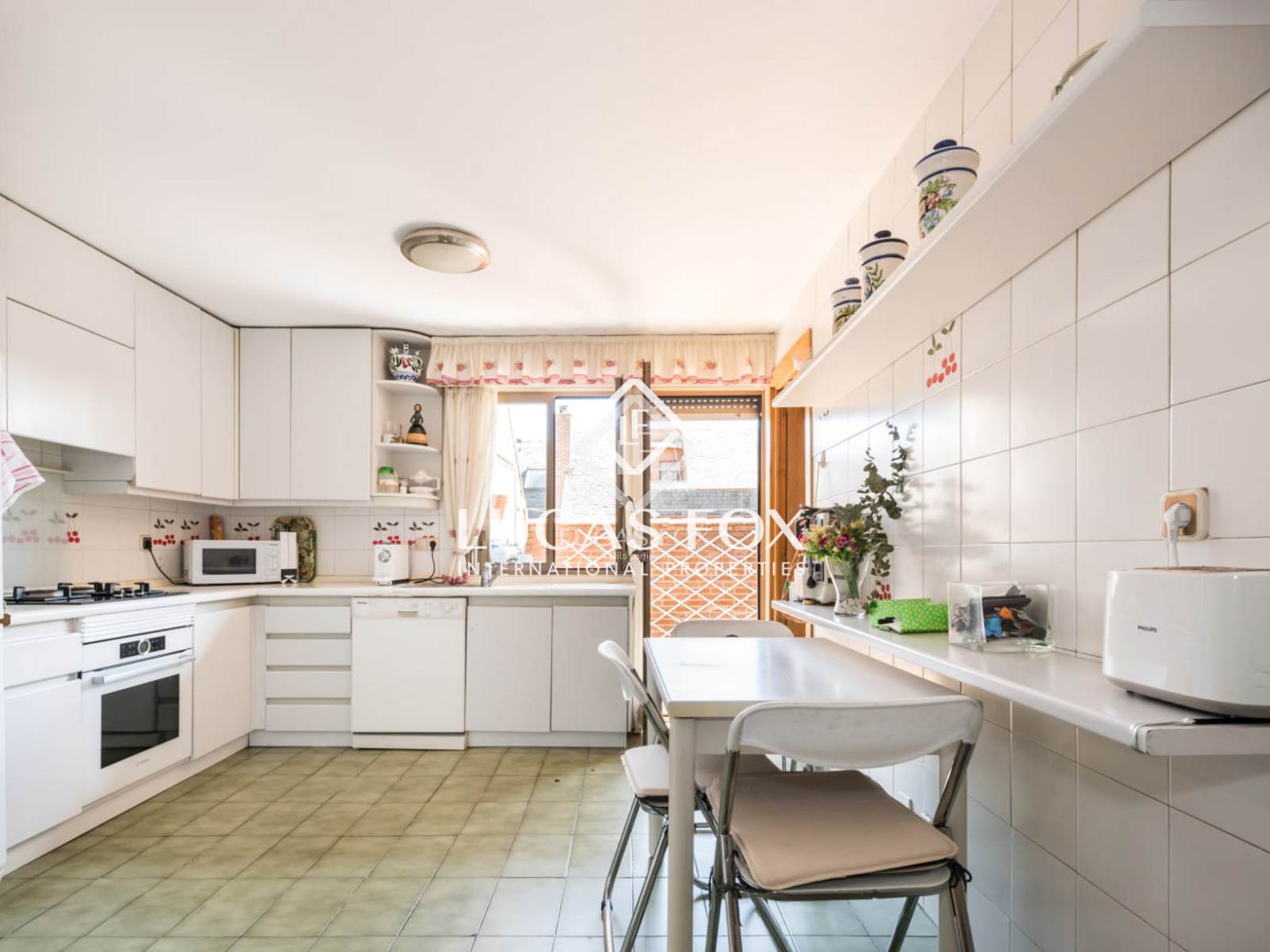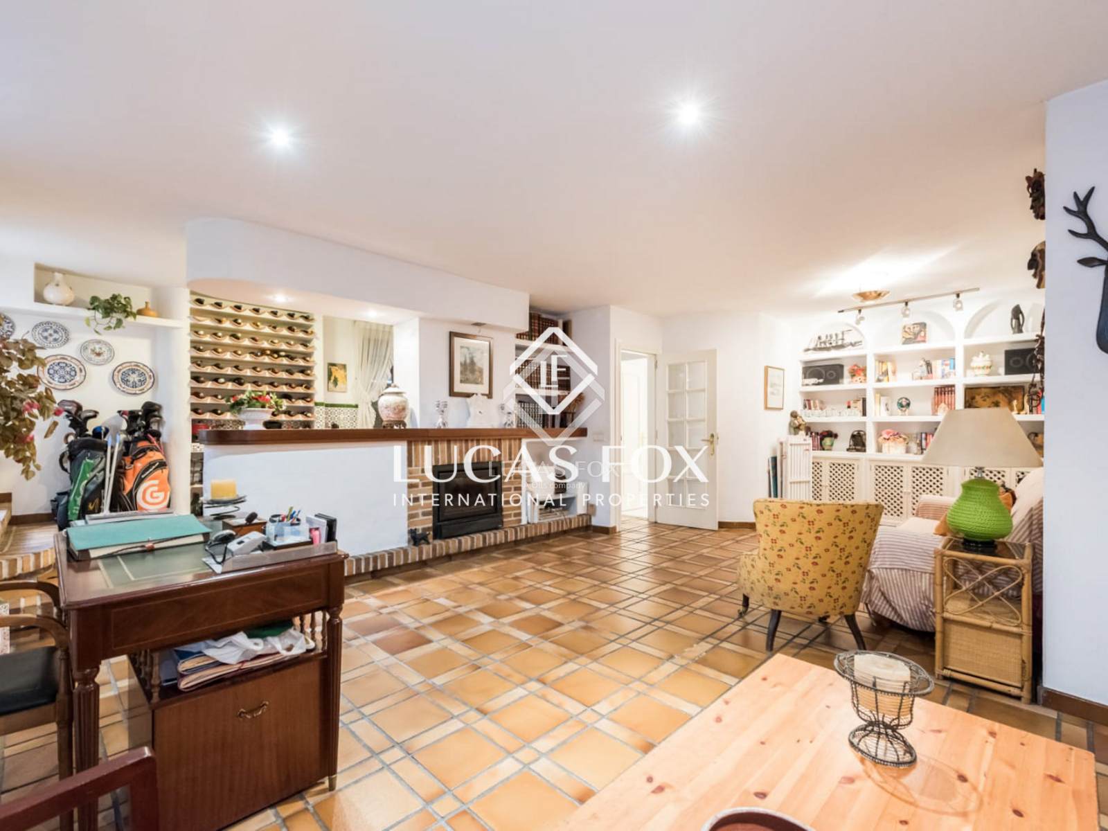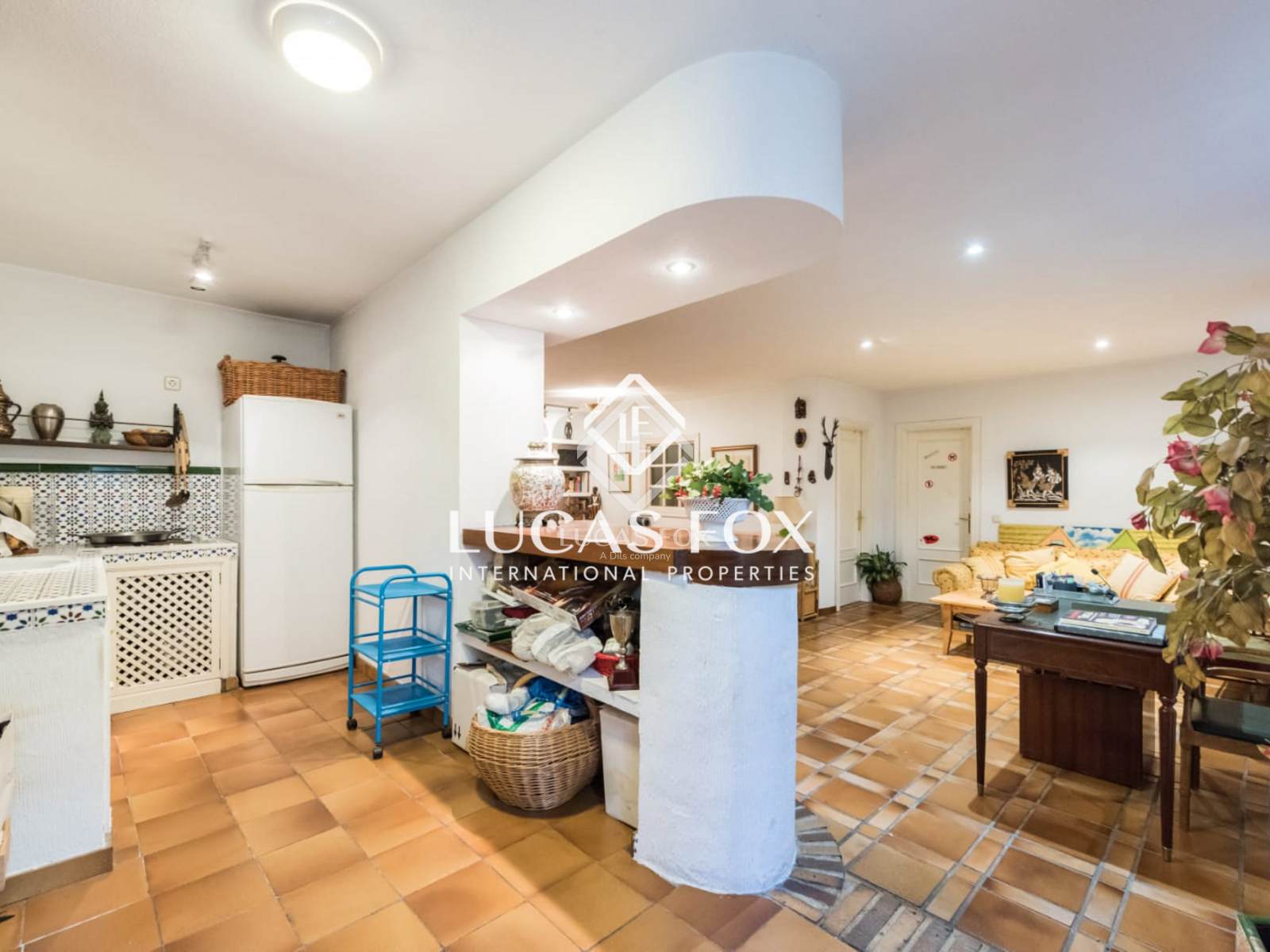 The property is spread over three floors. Its layout includes a living-dining room with a fireplace and high ceilings, a spacious and bright kitchen, a staff bedroom with its own bathroom , and four more bedrooms. The lower ground floor features an apartment with a living room, open kitchen, bedroom , and bathroom, as well as a double garage and two storage rooms. Exterior, there is a private corner garden with direct access to the pool.