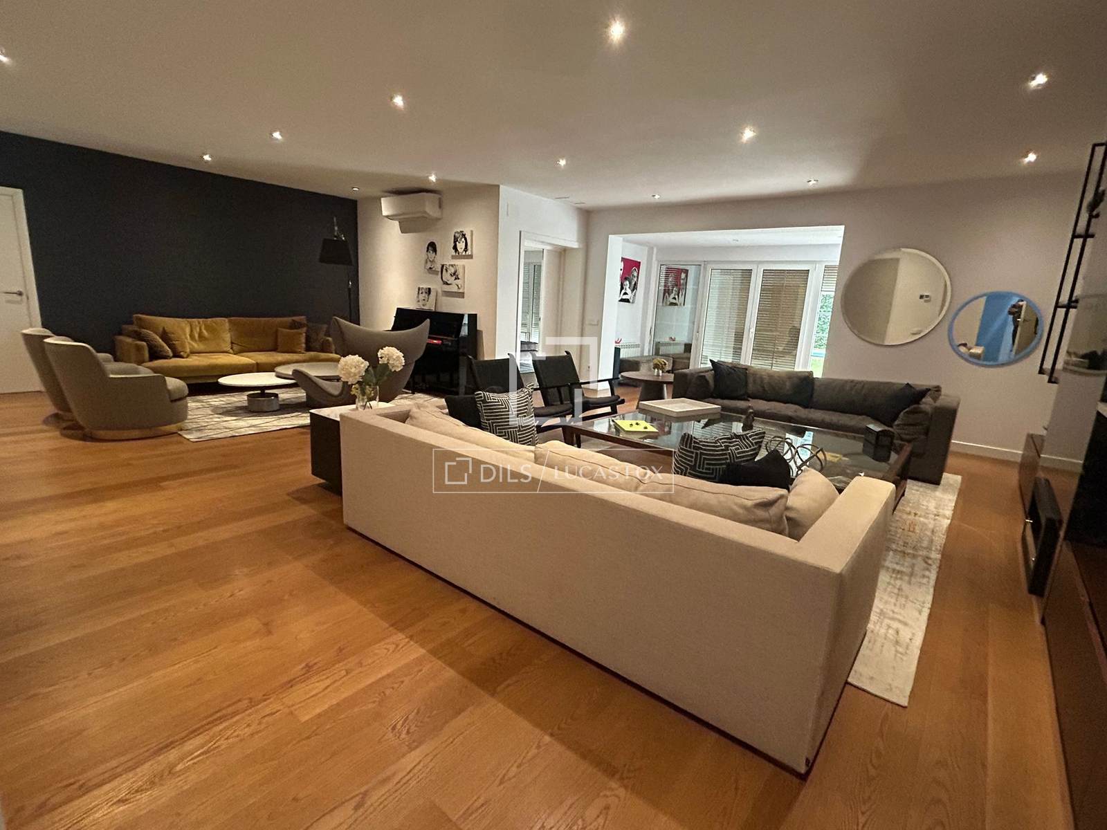 The lower level complements the property with a comprehensive suite of amenities focused on well-being and leisure: a gym, wine cellar, multipurpose rooms, and various storage areas that allow the house to be adapted to different lifestyles. The spacious garage and utility areas complete a floor designed to facilitate household logistics.