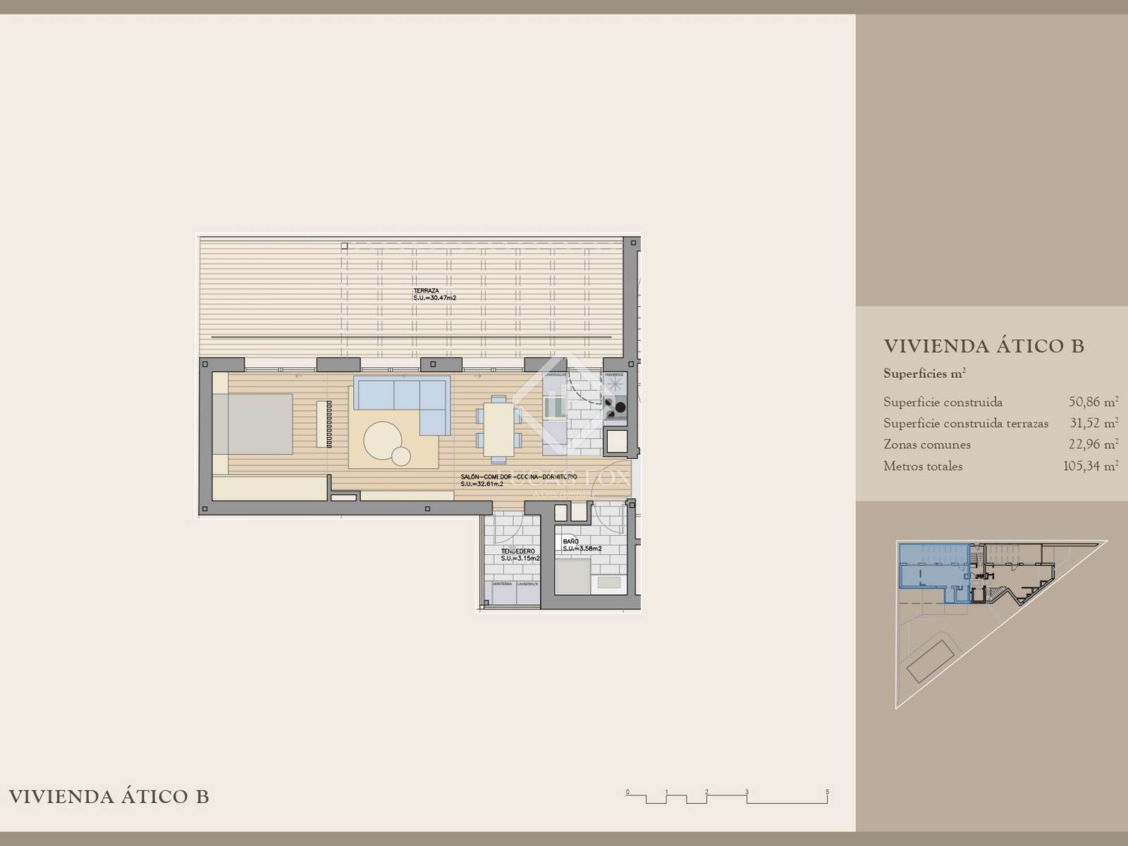 This property has been carefully designed to optimize space and features high-quality finishes. The interiors stand out for their contemporary style, with a fully equipped kitchen, wood-effect porcelain floor , built-in wardrobes , and underfloor heating heating and cooling systems powered by aerothermics.