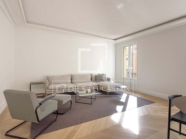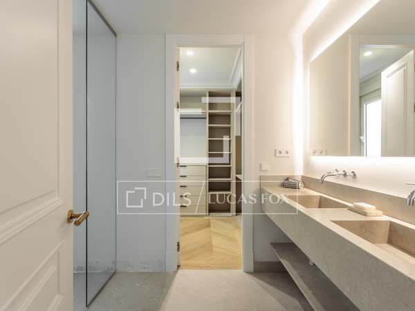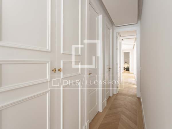 Stunning luxury apartment with 3 bedrooms with private bathrooms and parking space in a building for sale in Almagro, Madrid.