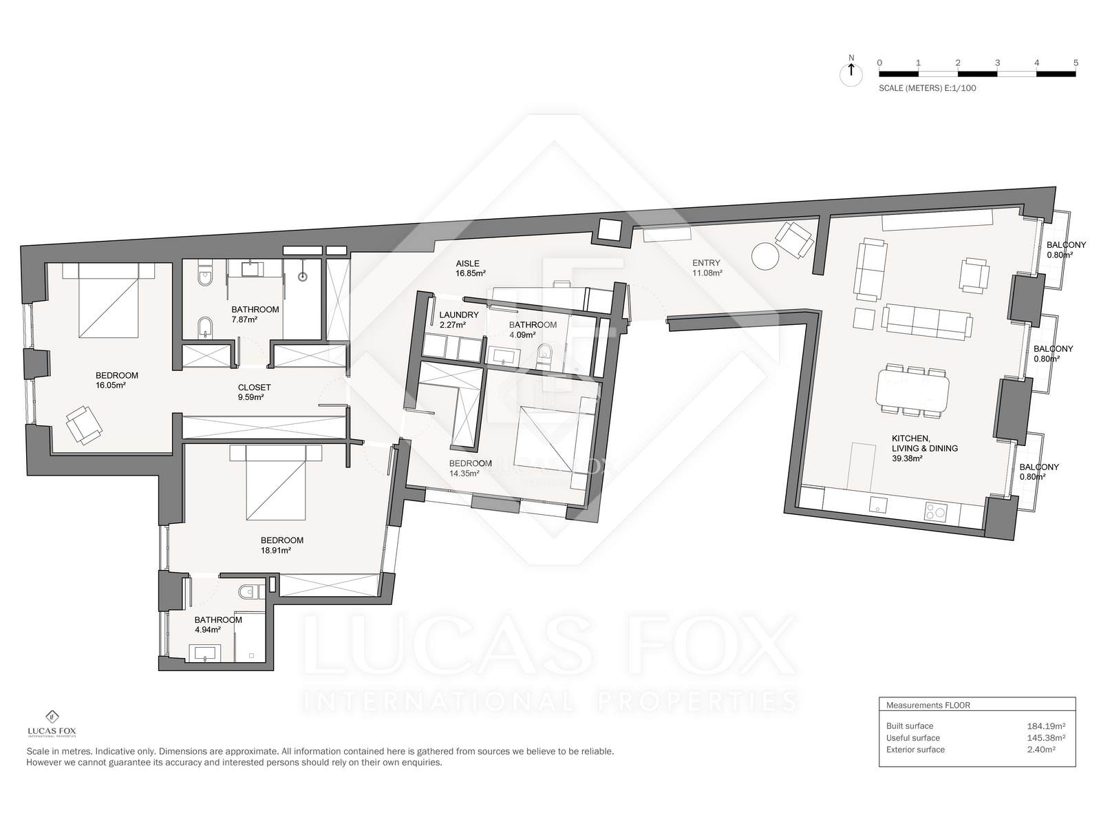 This particular penthouse boasts an approximate area of 184m² and offers an exceptional layout that combines spaciousness and balance. It features a master suite, two additional bedroom and two complete bathrooms, a bright living-dining room , and a fully equipped kitchen with high-quality finishes.