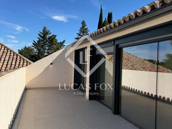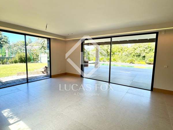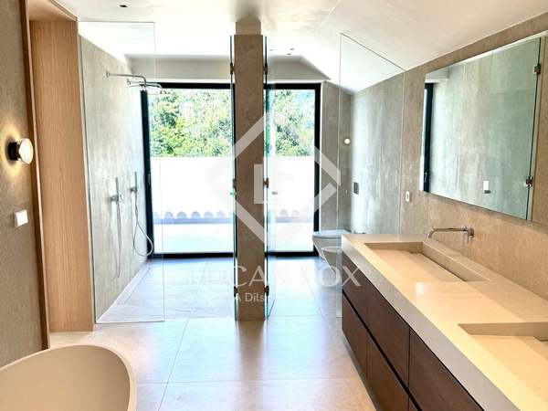Inside, the layout is impeccable: a main living room with various seating areas, a designer kitchen equipped with Gaggenau appliances , several suites with private bathroom and dressing rooms, a gym, a home cinema, and guest bedrooms with separate access . The property is being sold fully furnished and includes state-of-the-art installations, such as underfloor heating/cooling, solar panels, comprehensive home automation, and dual fiber optic connections.