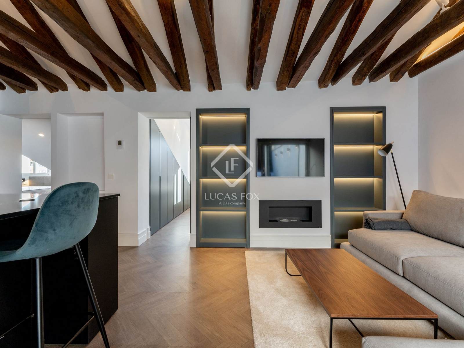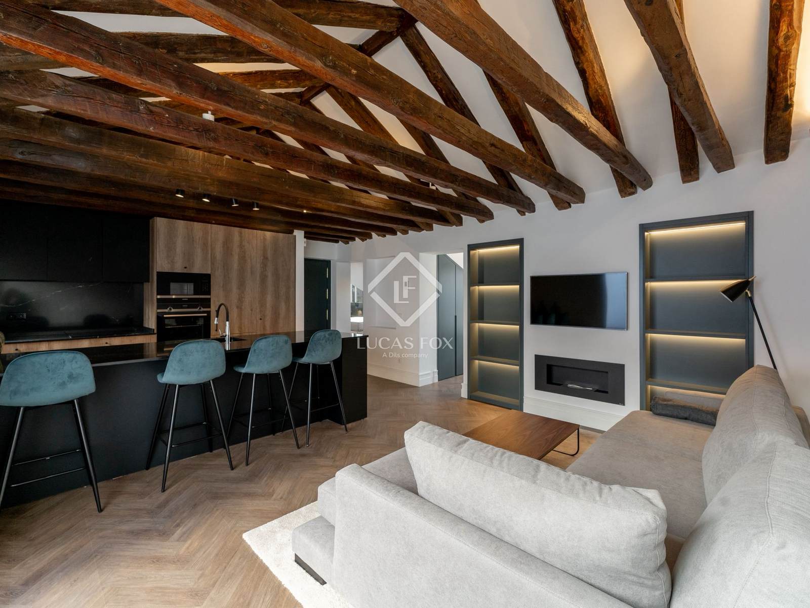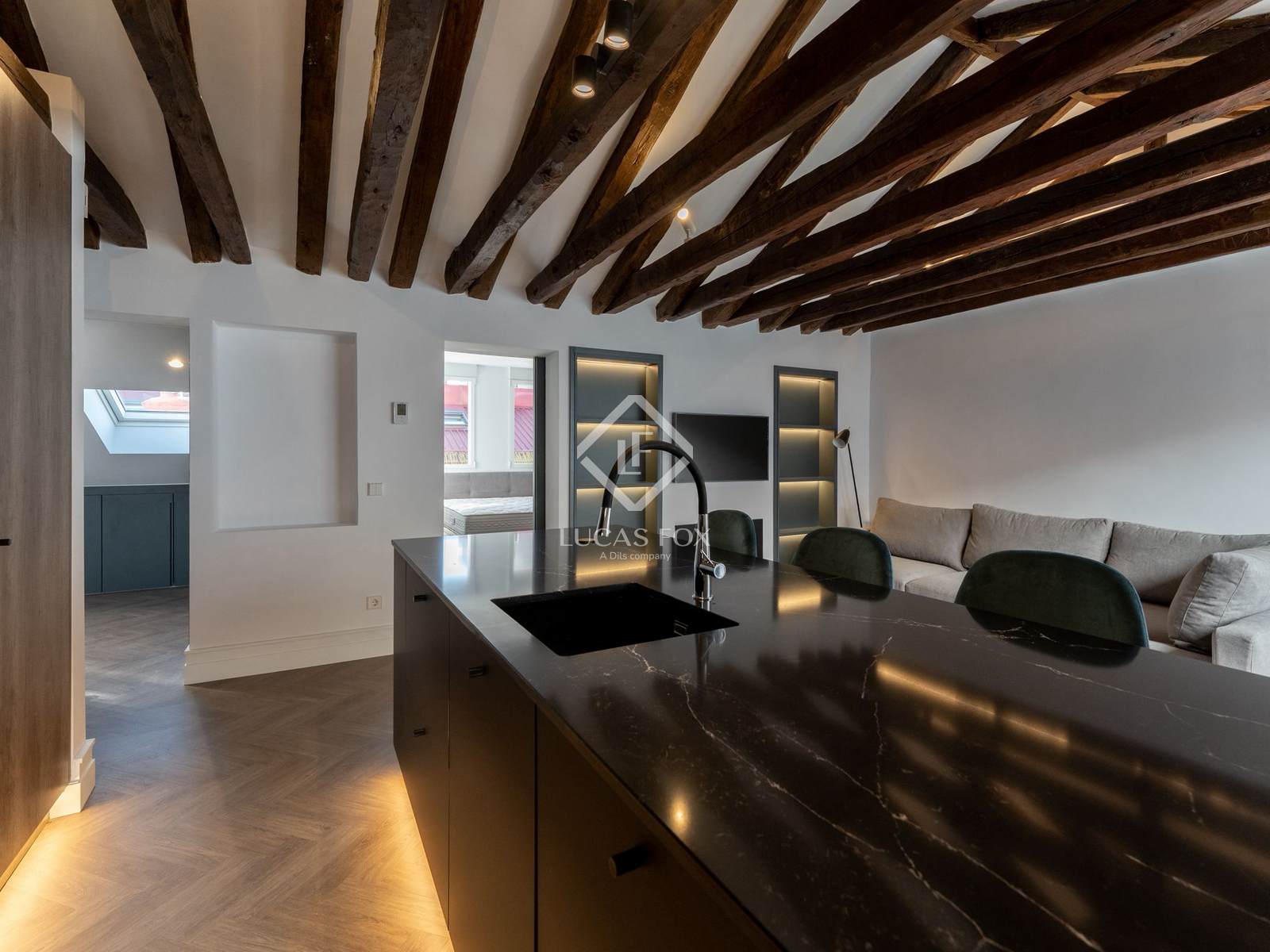 Lucas Fox presents this magnificent penthouse, renovated to a high specification, located just a few meters from Plaza de Salesas, one of the most sought-after locations in the Justicia area of Madrid.