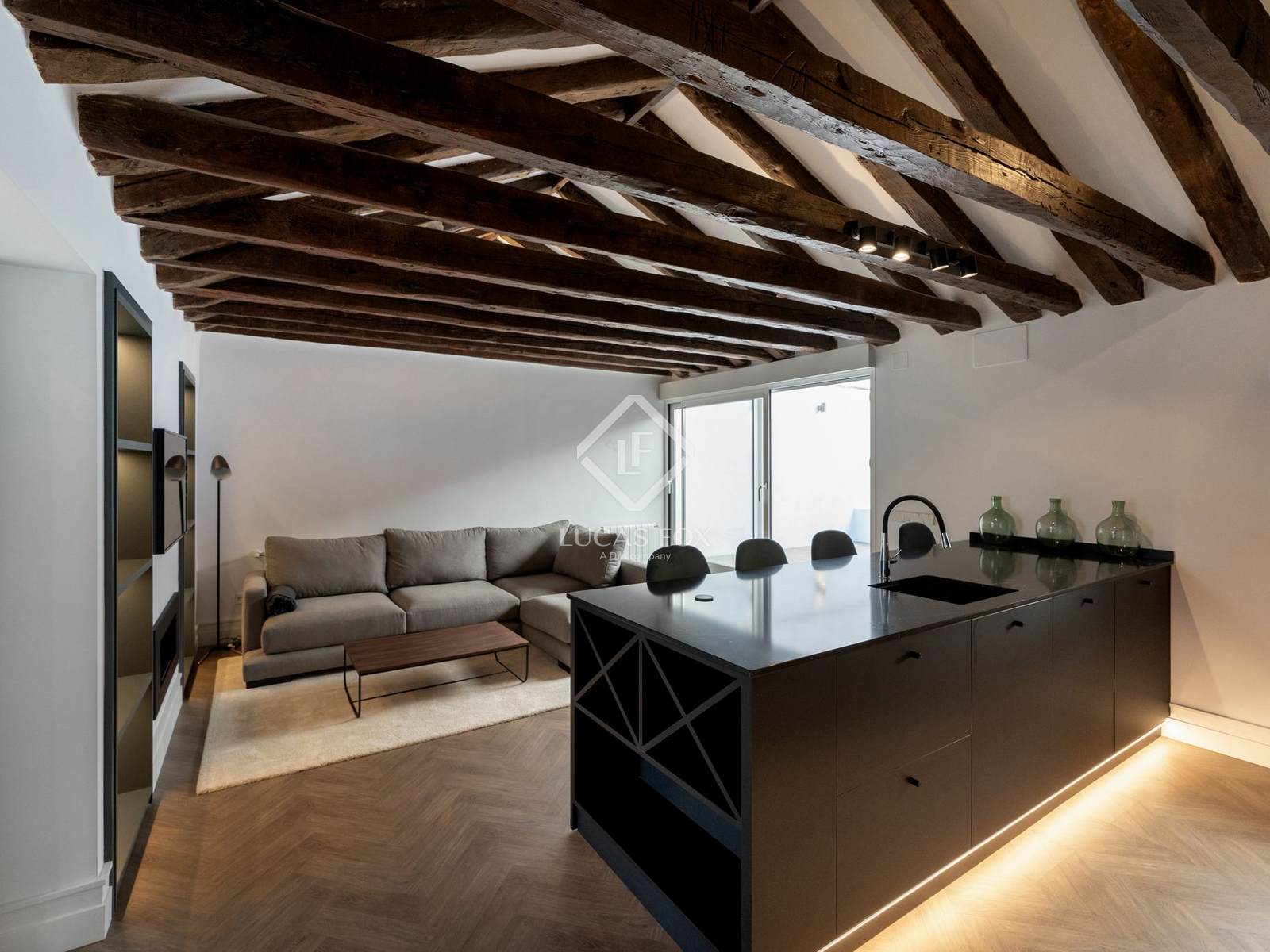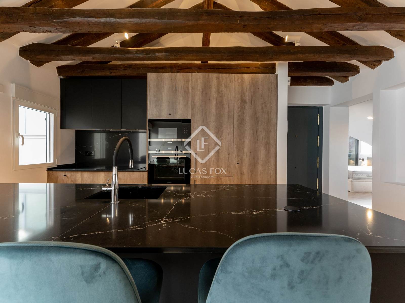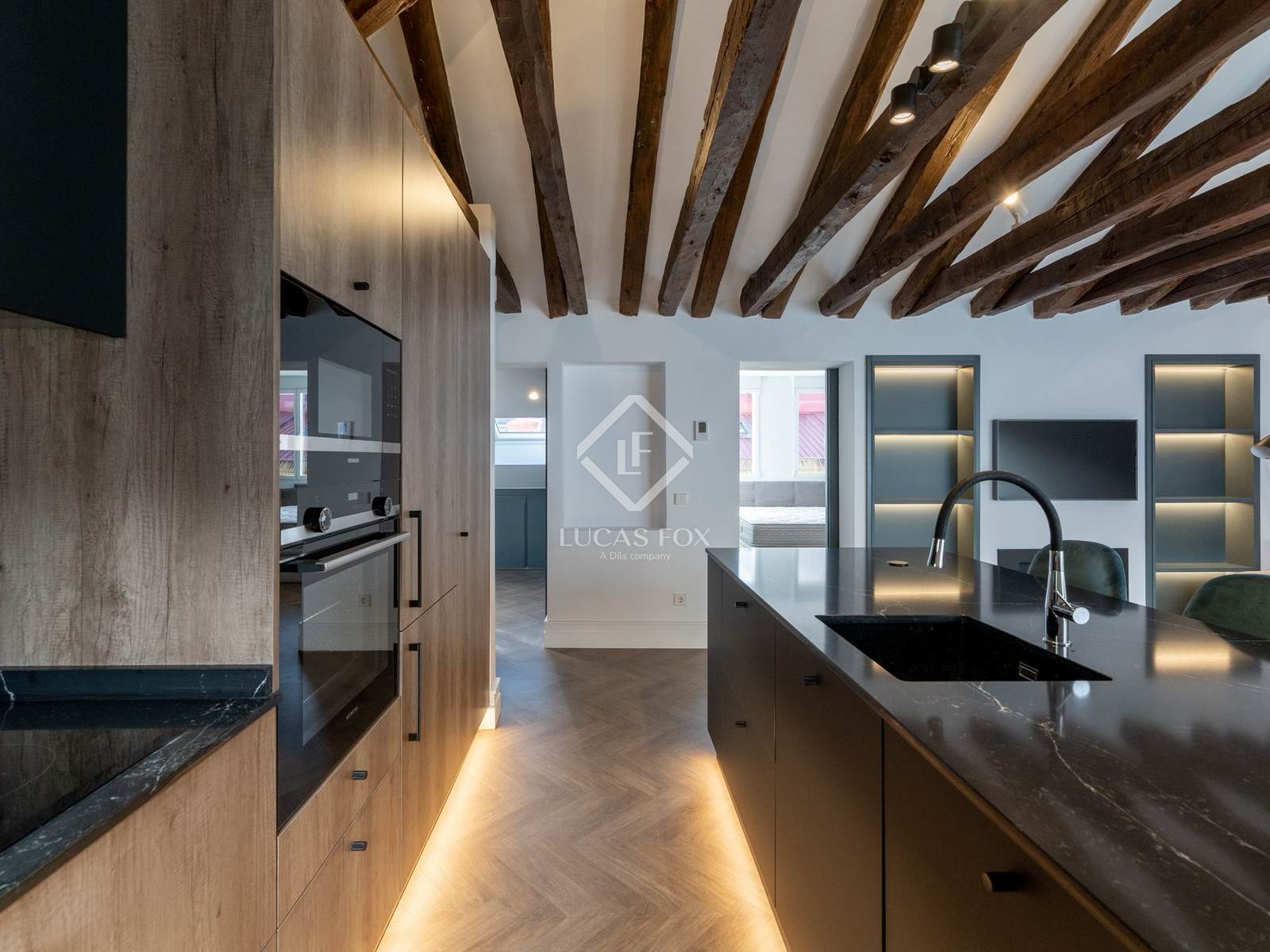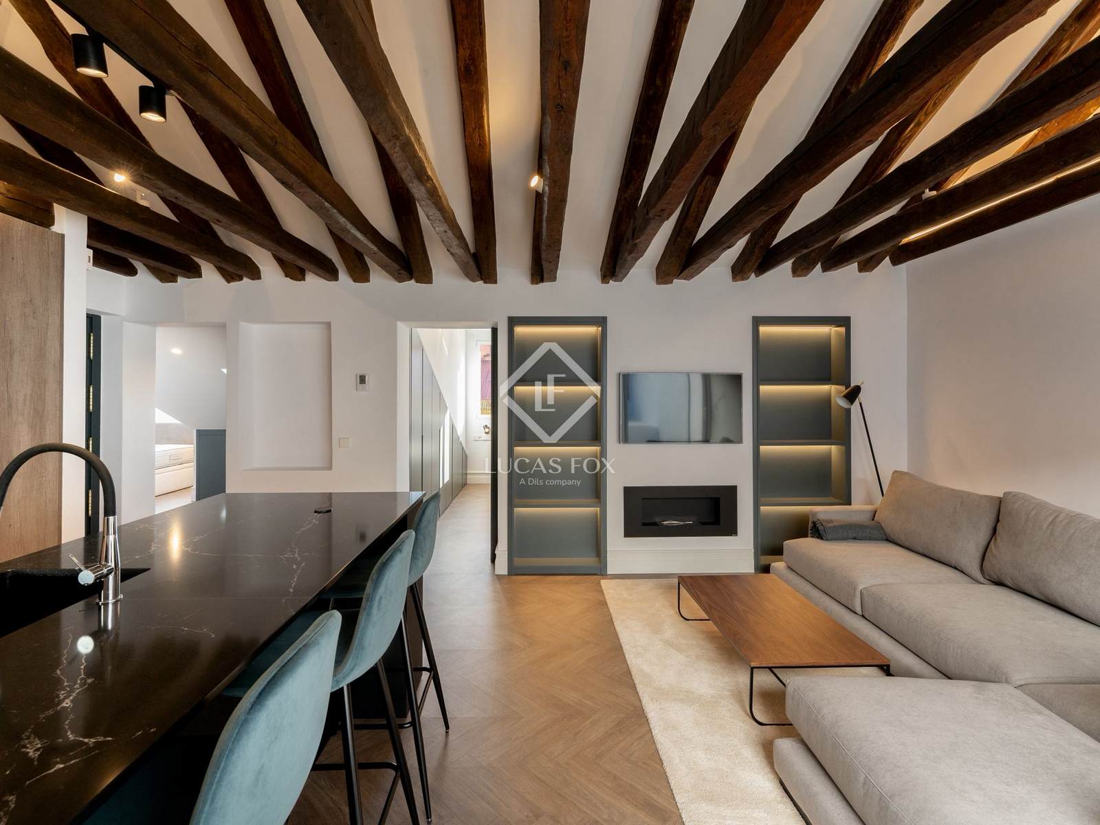 Lucas Fox presents this magnificent penthouse, renovated to a high specification, located just a few meters from Plaza de Salesas, one of the most sought-after locations in the Justicia area of Madrid.