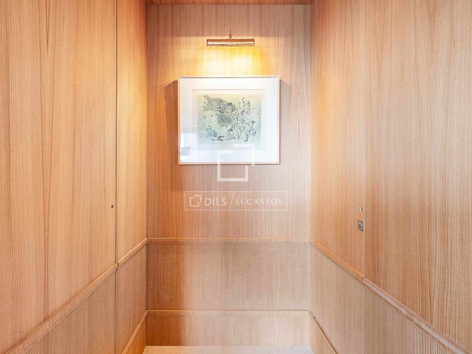 Access is through an elegant entrance hall paneled in natural wood, which immediately creates a warm and refined atmosphere. The spacious living room- dining room, flooded with light thanks to its southerly aspect, opens onto a spectacular private terrace, a true gem of the property and one of the most privileged viewpoints in Madrid, where the Retiro Park becomes an everyday vista.
