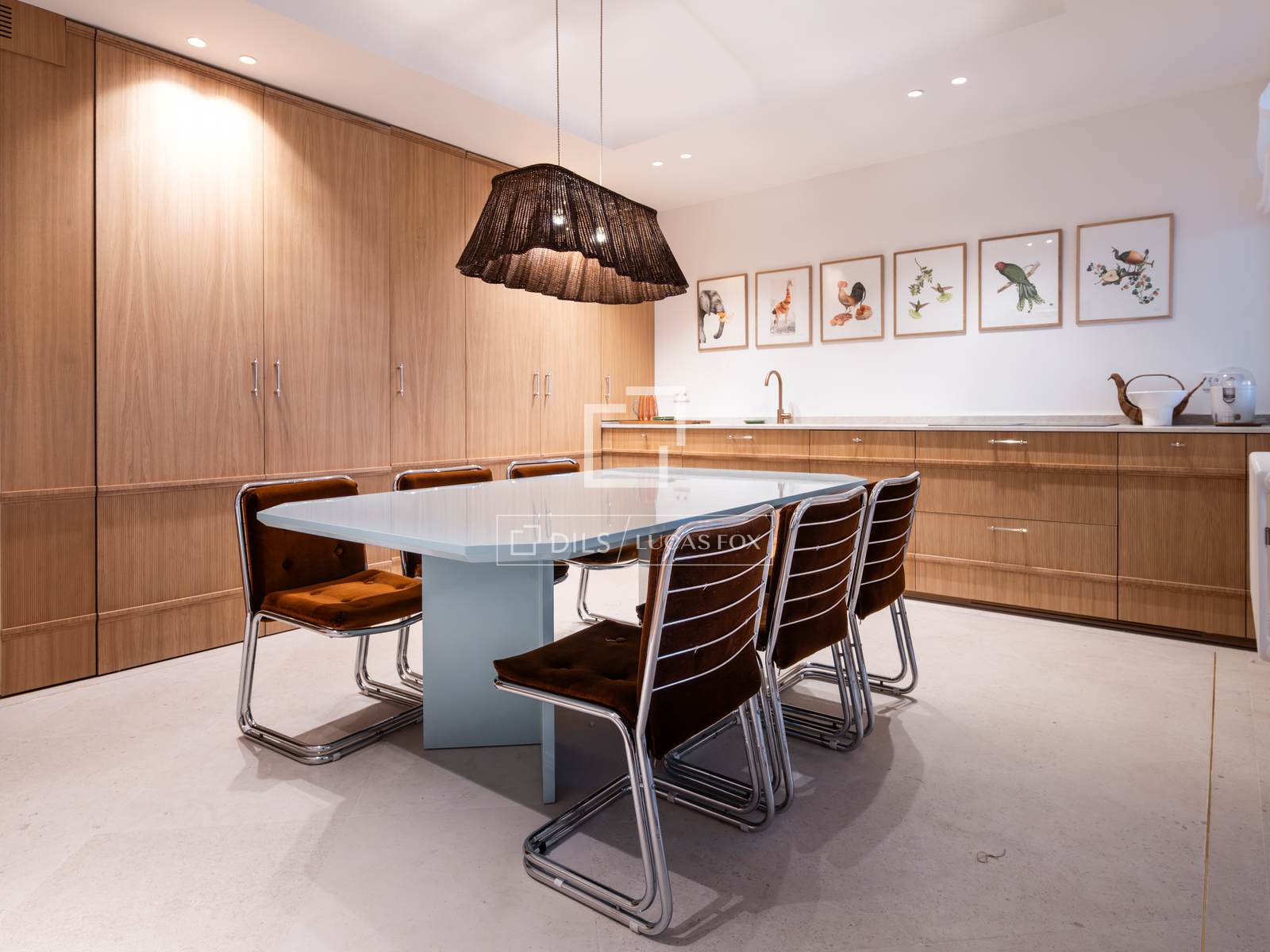 Integrated into this room is a designer open-plan kitchen, completely concealed and almost invisible, equipped with high-end, paneled appliances . Its integration with the dining room reinforces the feeling of spaciousness and continuity, providing functionality without compromising the overall elegance.