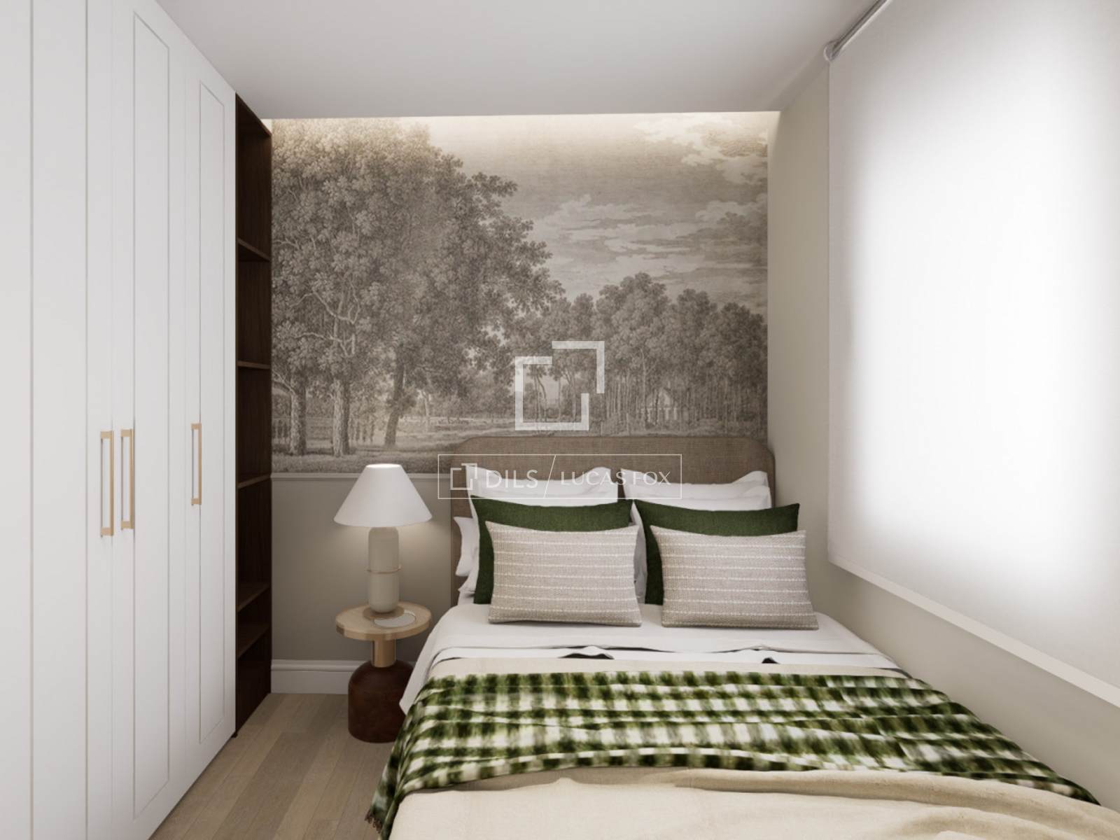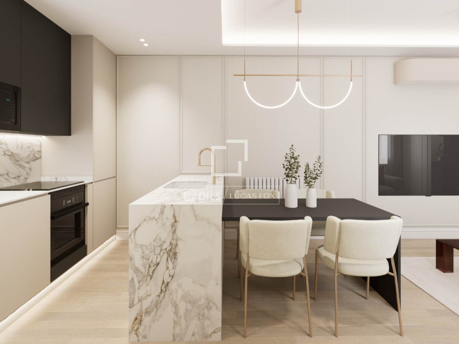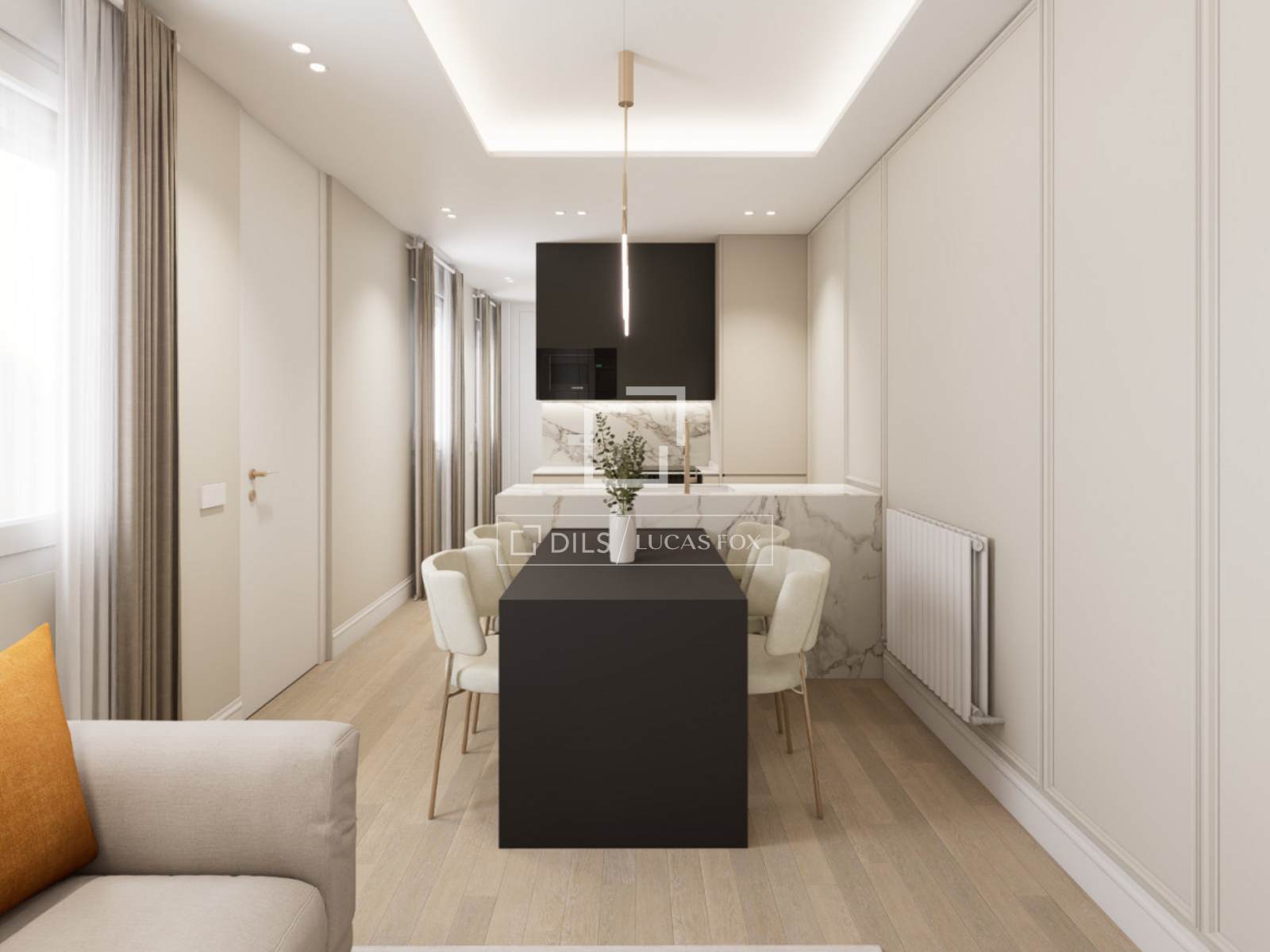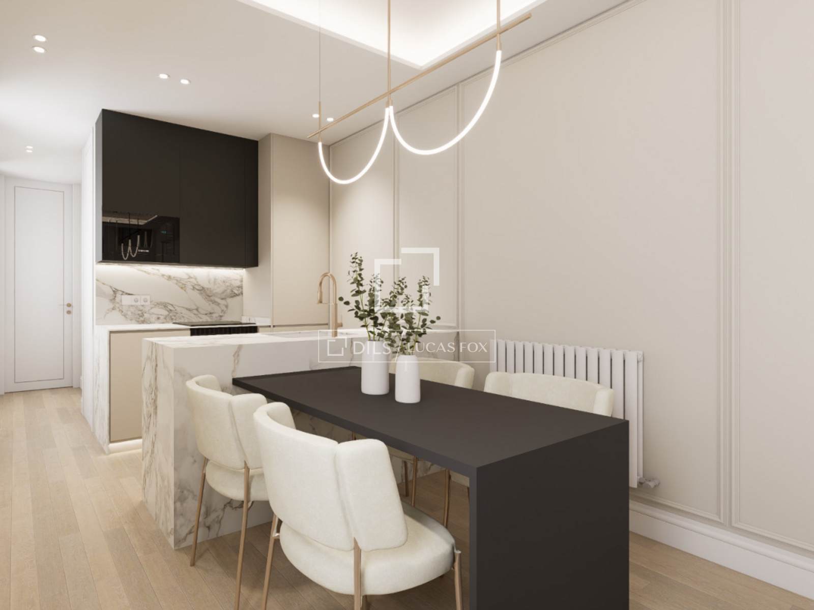 Elegant designer apartment of 55 m² fully renovated with 2 bedrooms and 1 bathroom for sale in the exclusive Ibiza neighbourhood , next to the Retiro Park in Madrid.