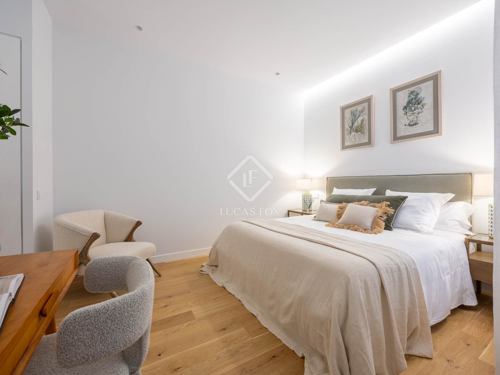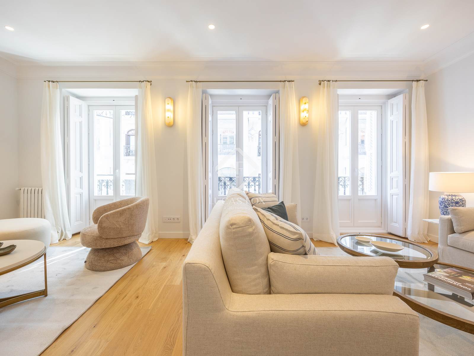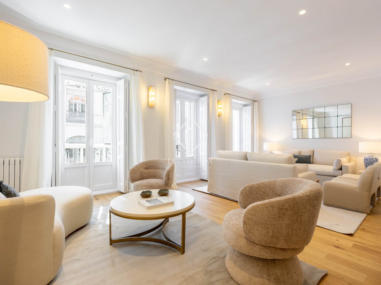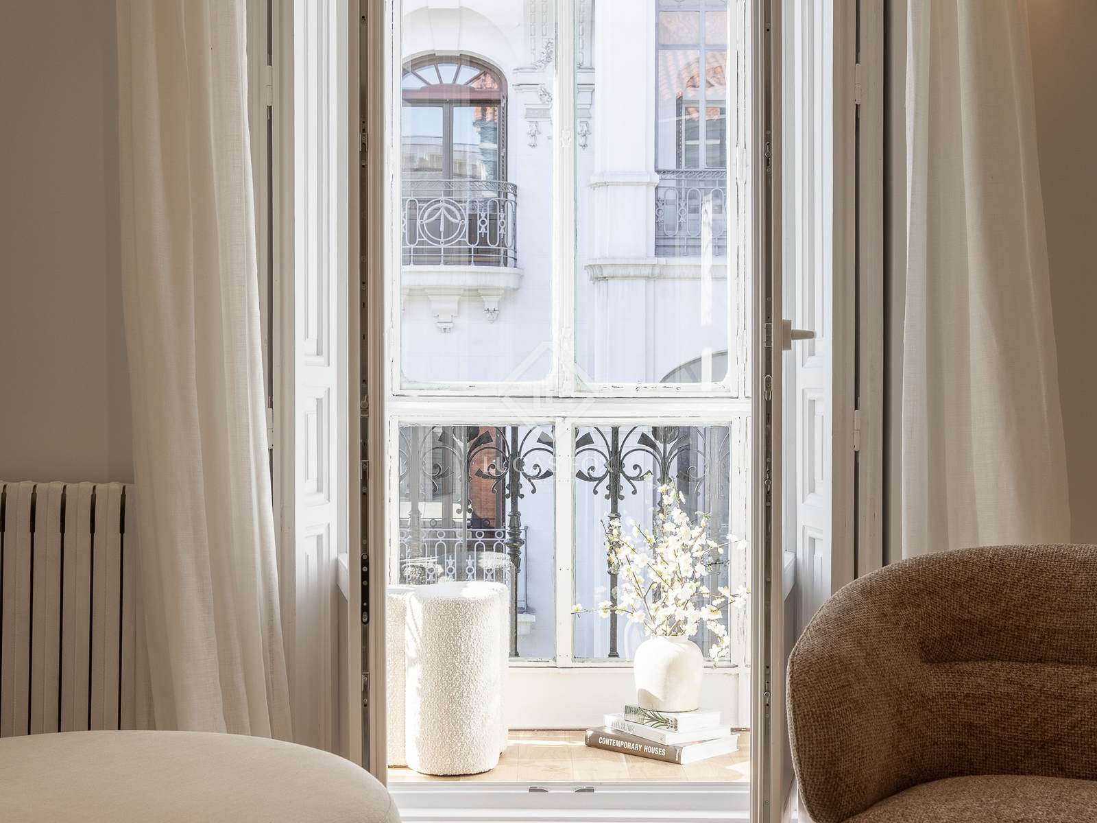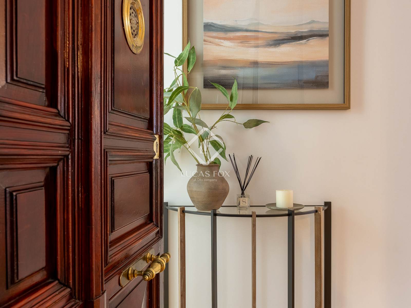 Newly renovated exterior apartment with three en-suite bedrooms, two balconies, and a viewing platform for sale in Jerónimos, Madrid.