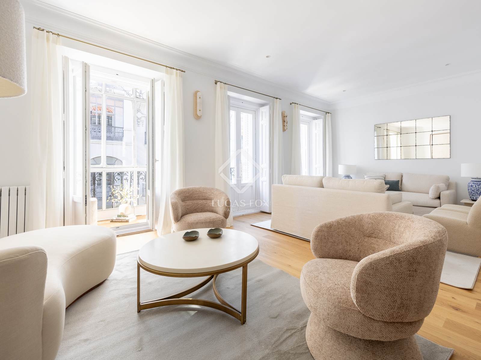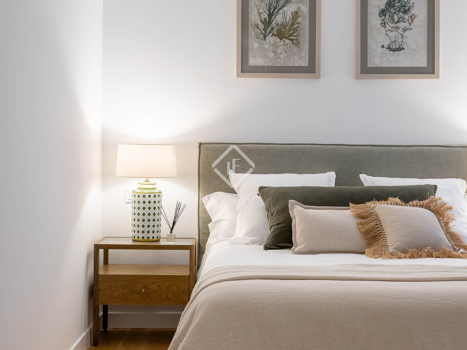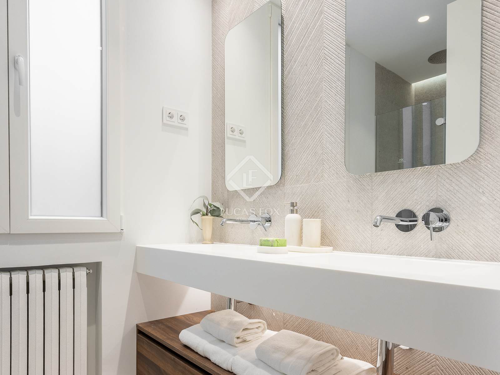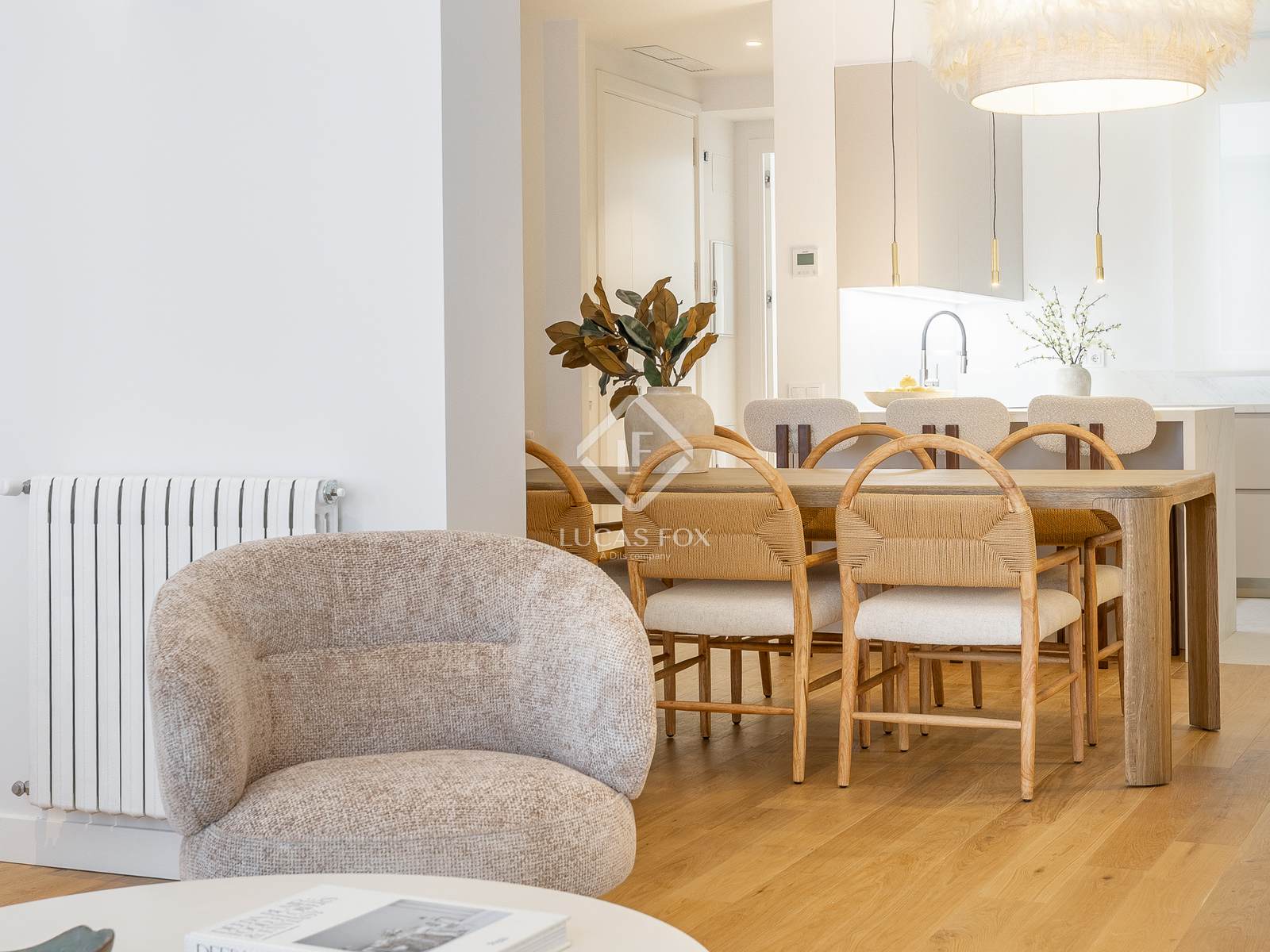 Newly renovated exterior apartment with three en-suite bedrooms, two balconies, and a viewing platform for sale in Jerónimos, Madrid.
