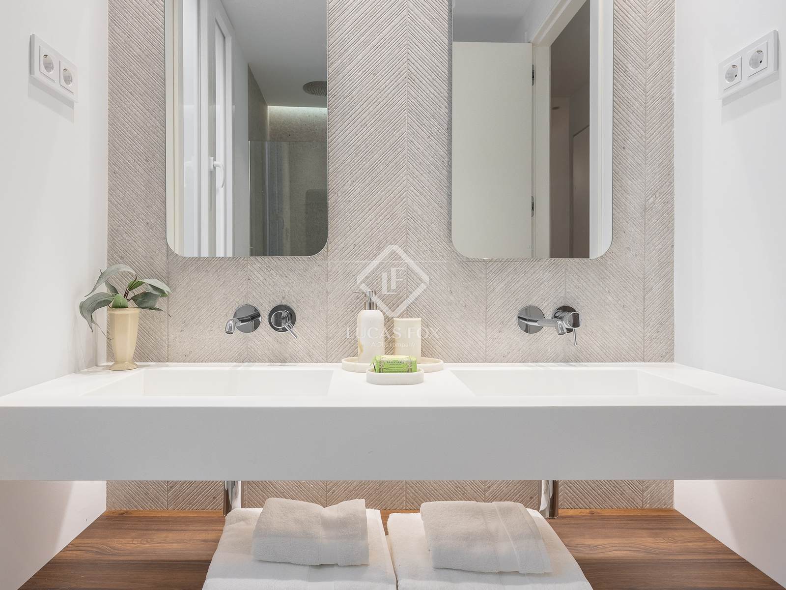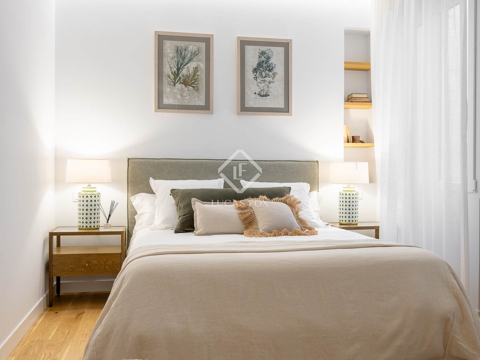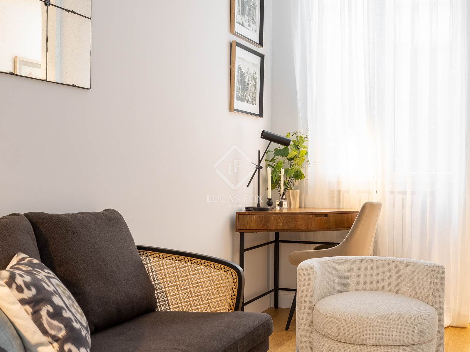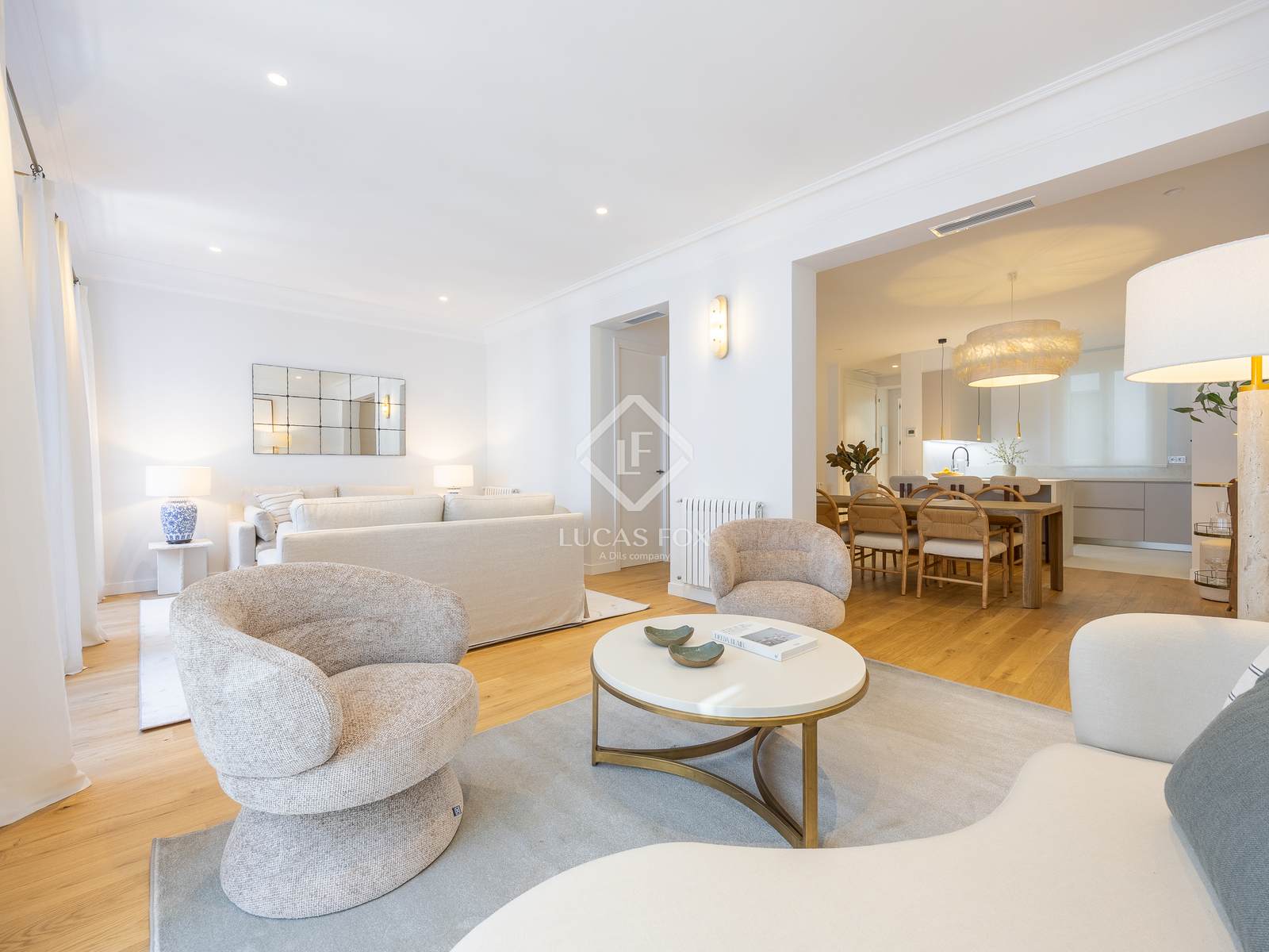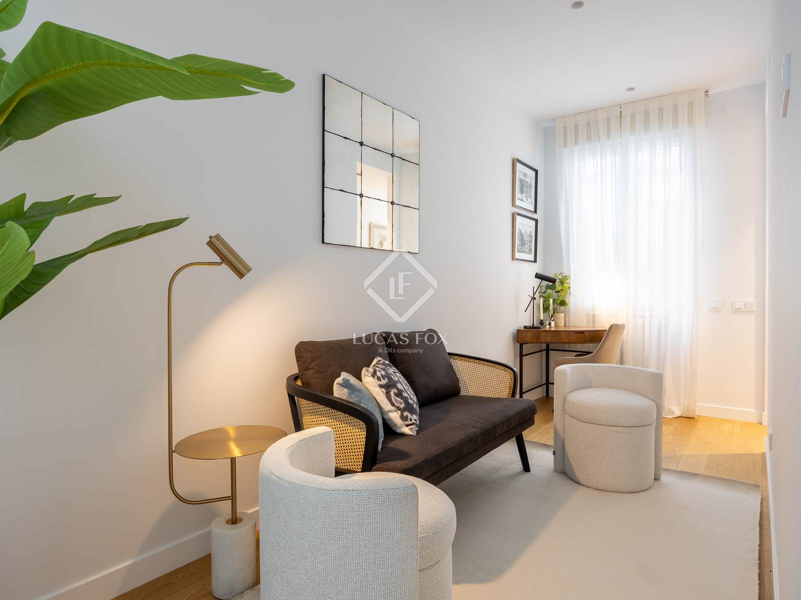 Newly renovated exterior apartment with three en-suite bedrooms, two balconies, and a viewing platform for sale in Jerónimos, Madrid.