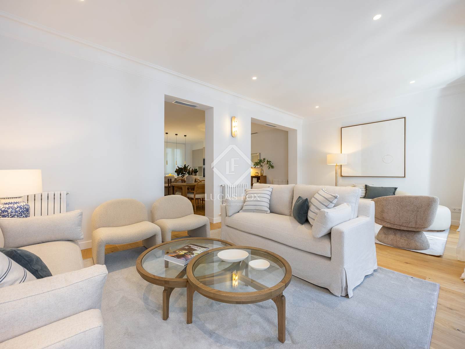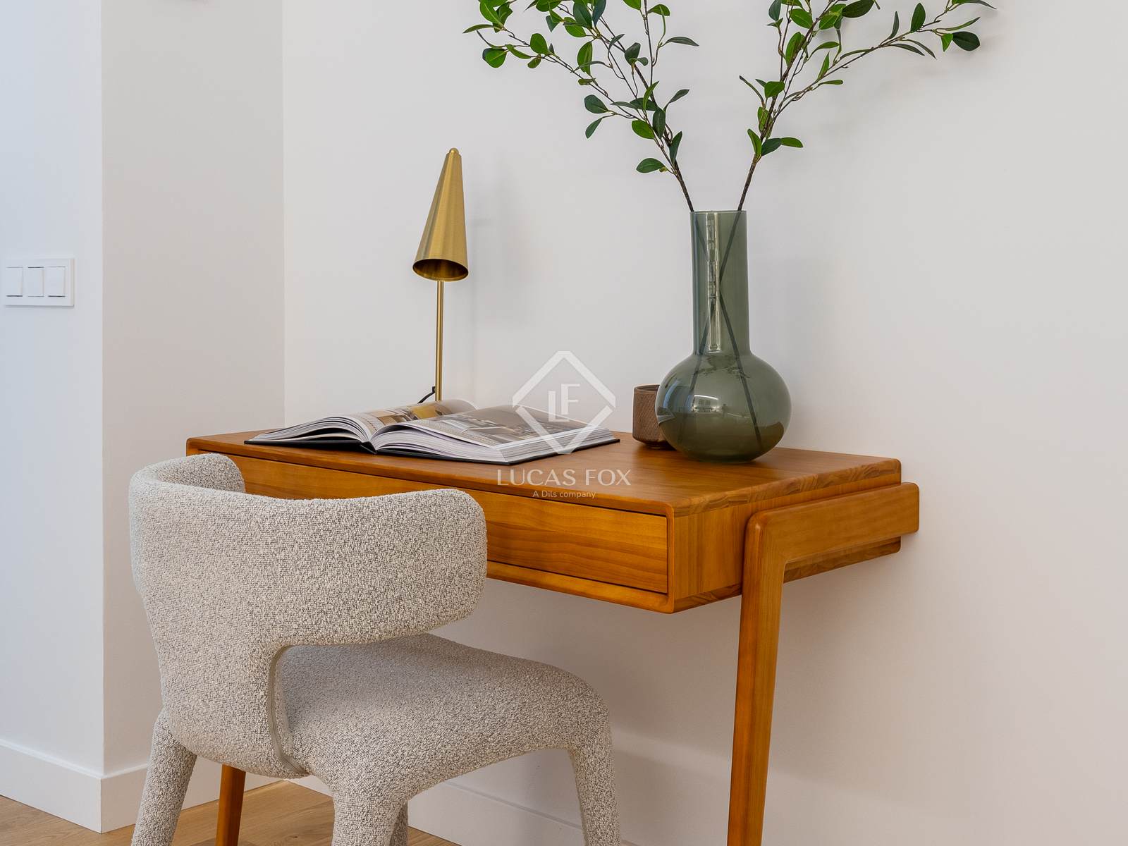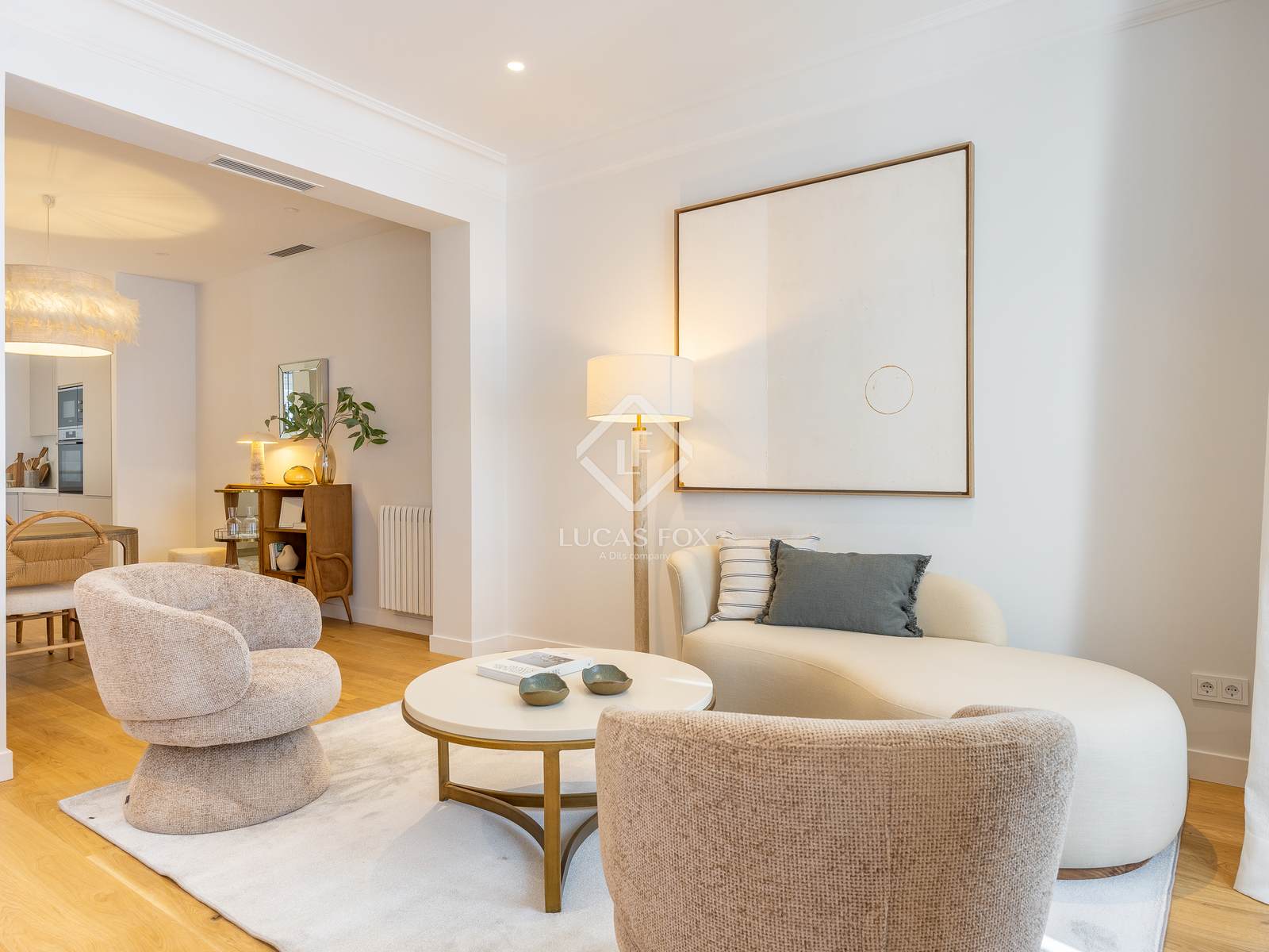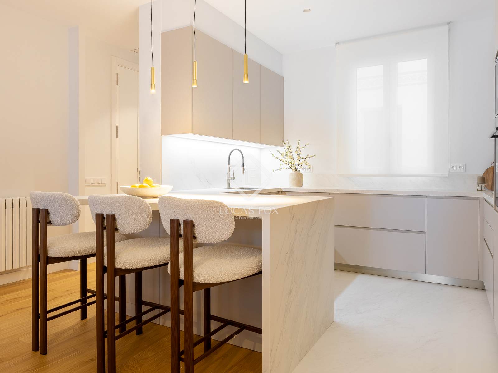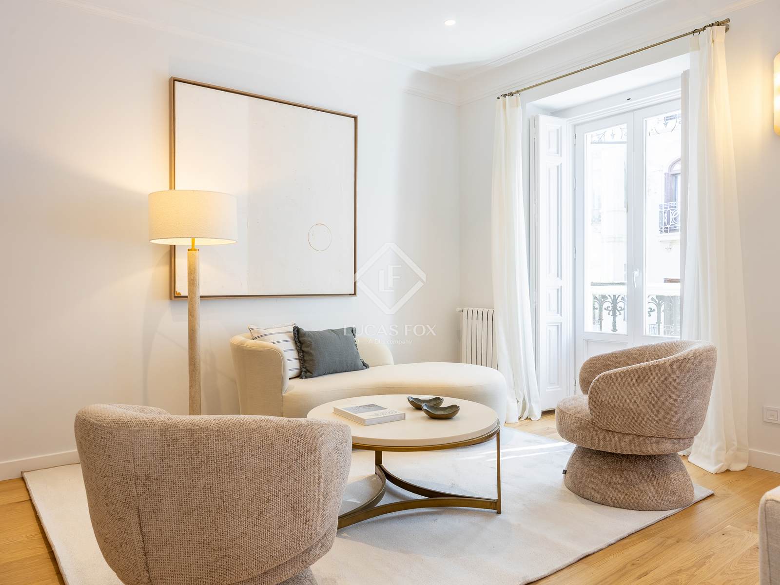 Newly renovated exterior apartment with three en-suite bedrooms, two balconies, and a viewing platform for sale in Jerónimos, Madrid.