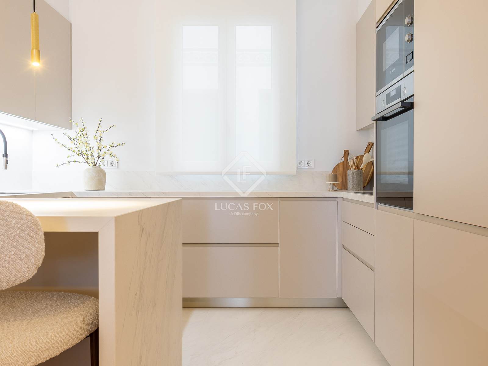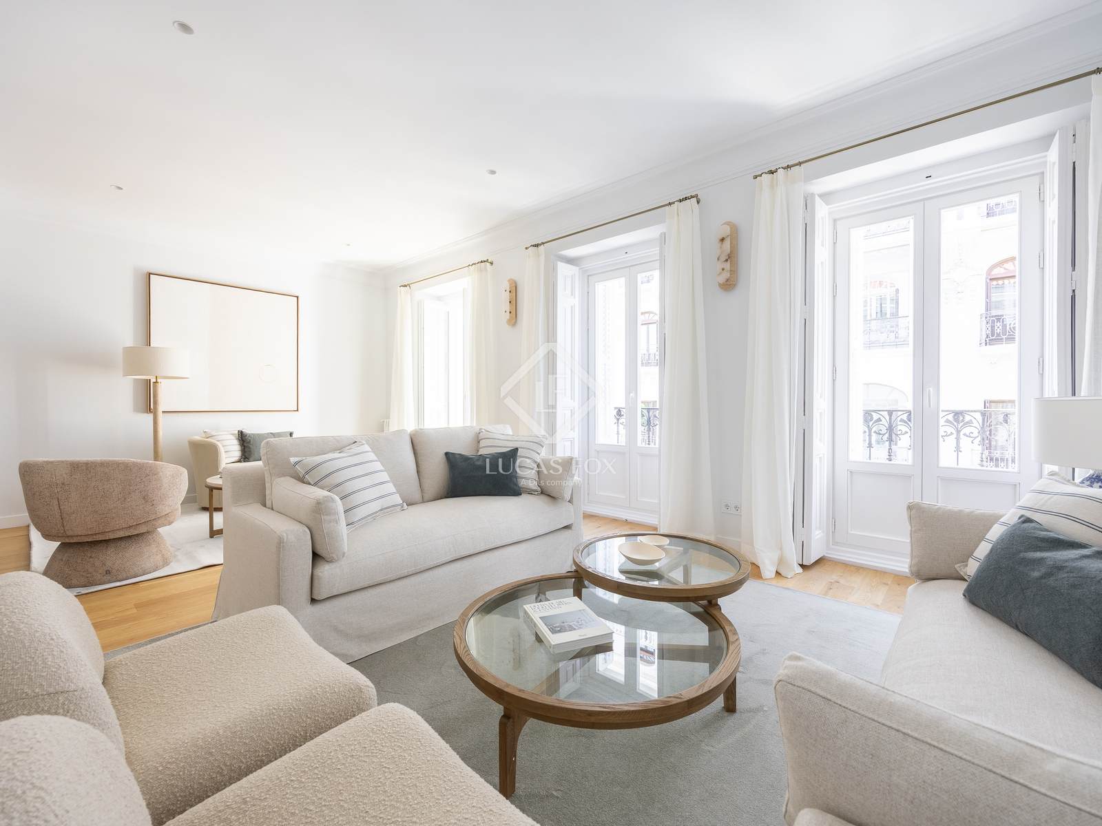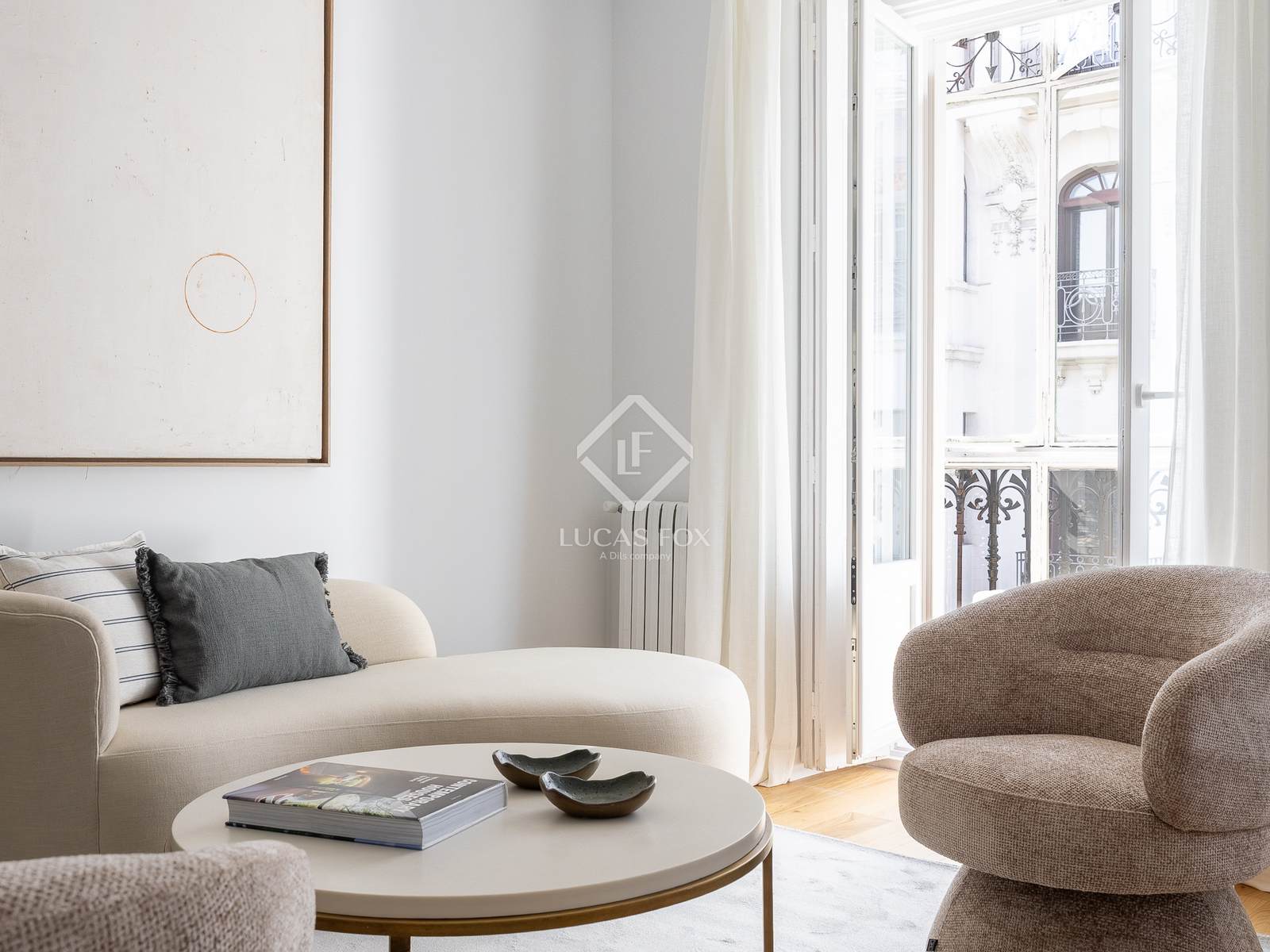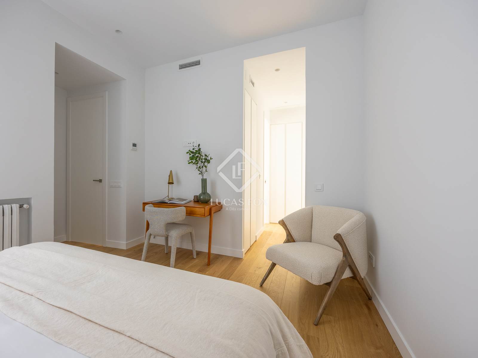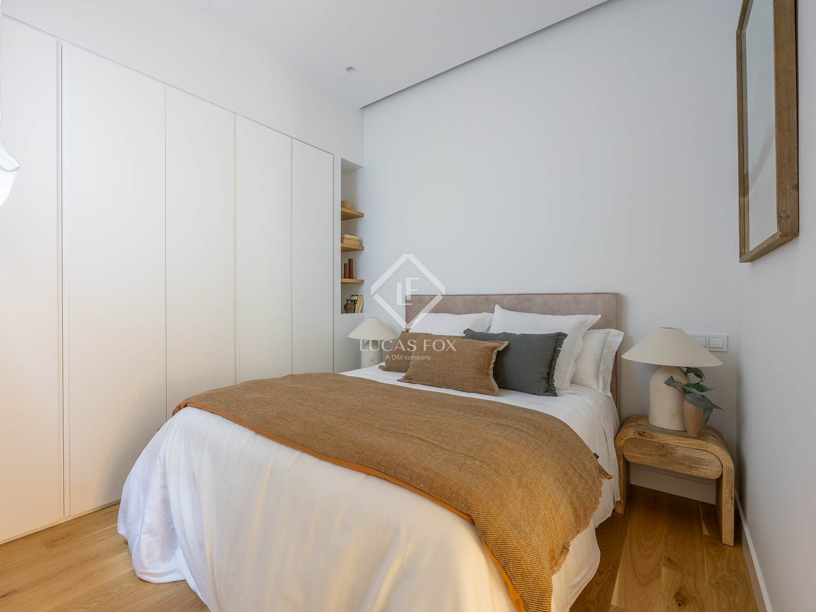Newly renovated exterior apartment with three en-suite bedrooms, two balconies, and a viewing platform for sale in Jerónimos, Madrid.