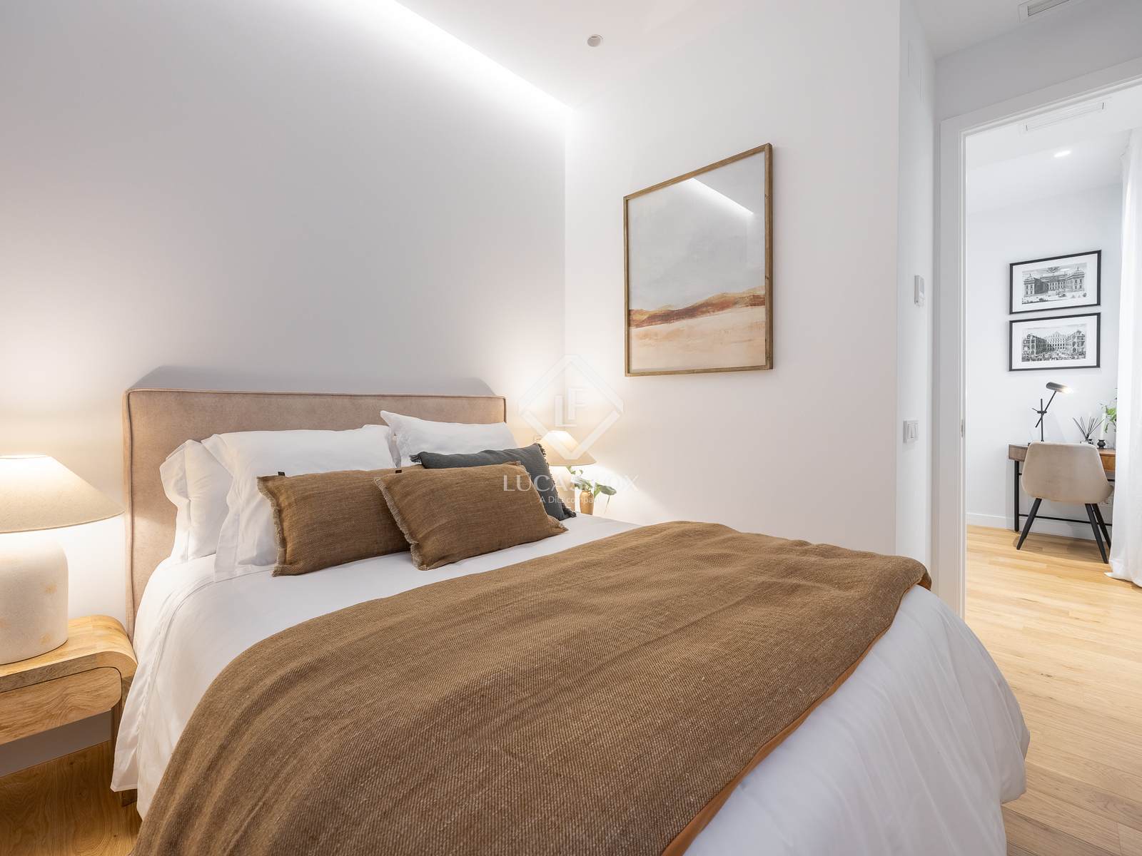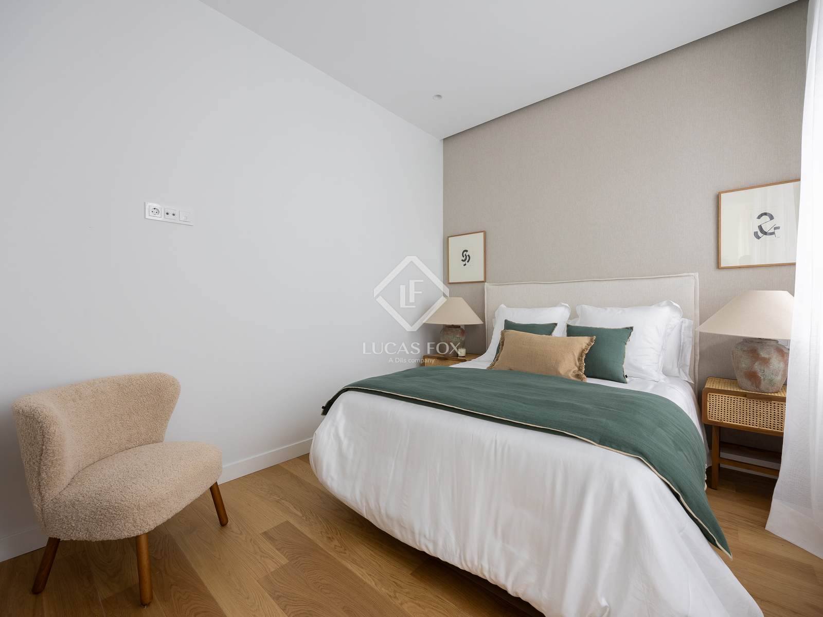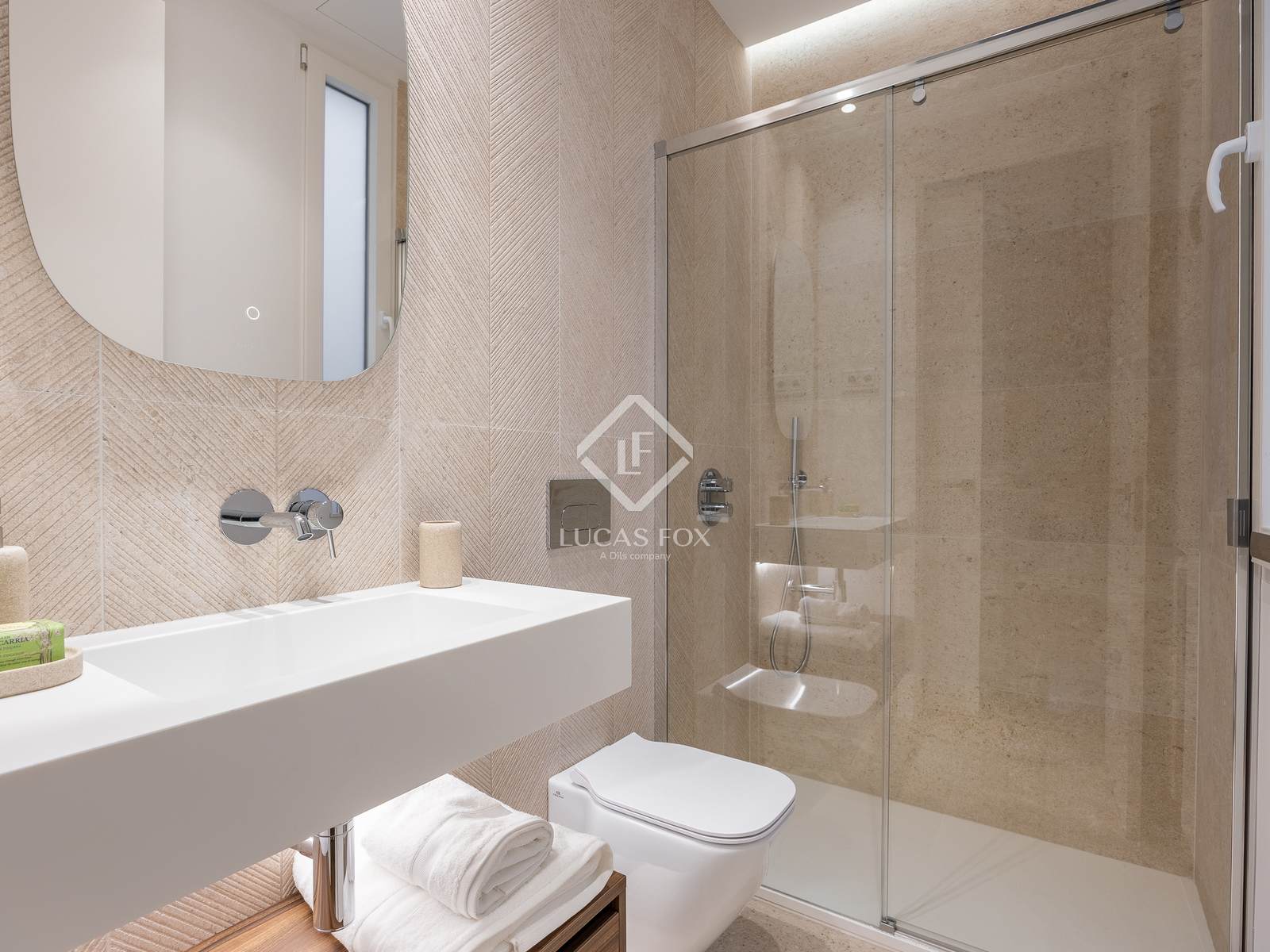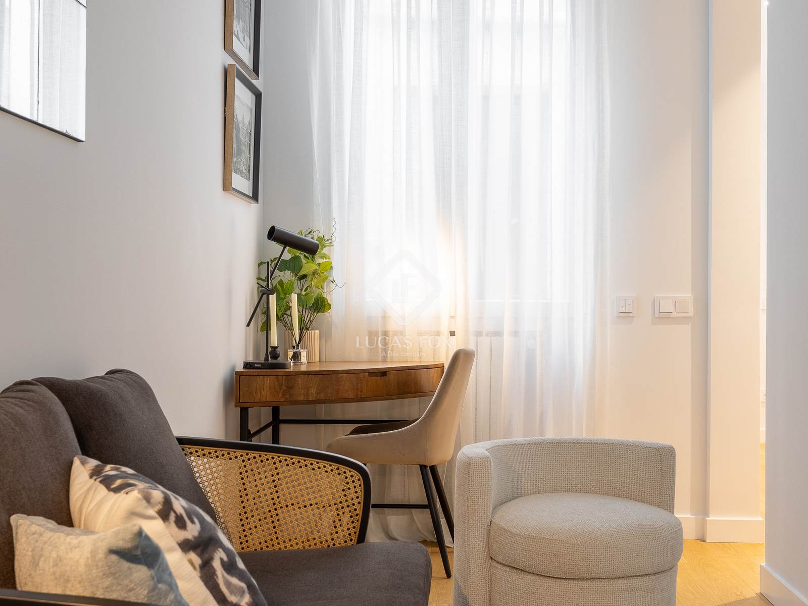 Newly renovated exterior apartment with three en-suite bedrooms, two balconies, and a viewing platform for sale in Jerónimos, Madrid.