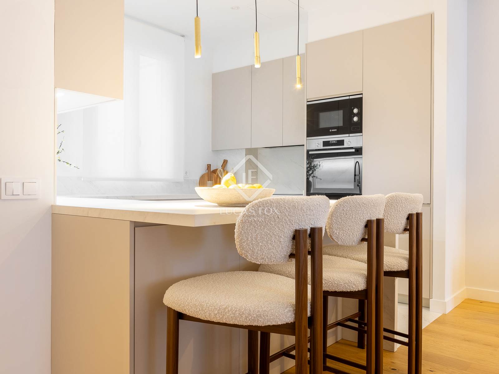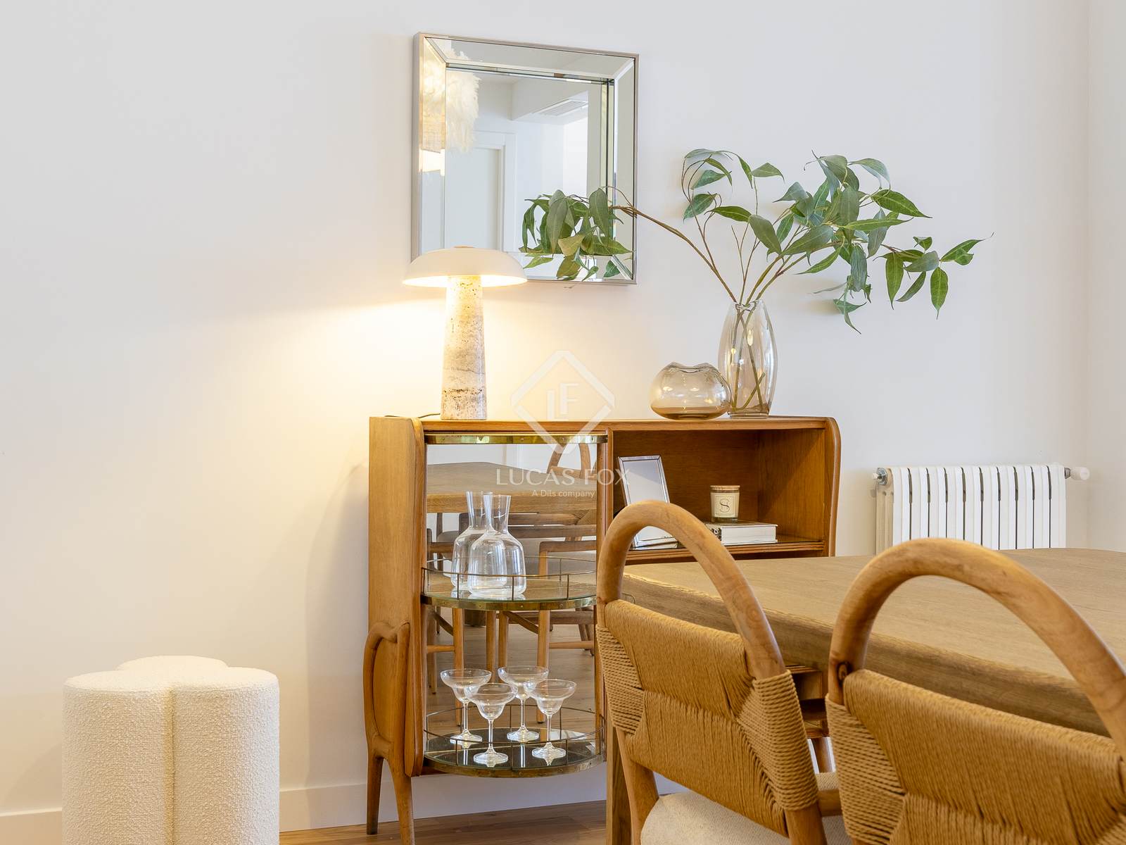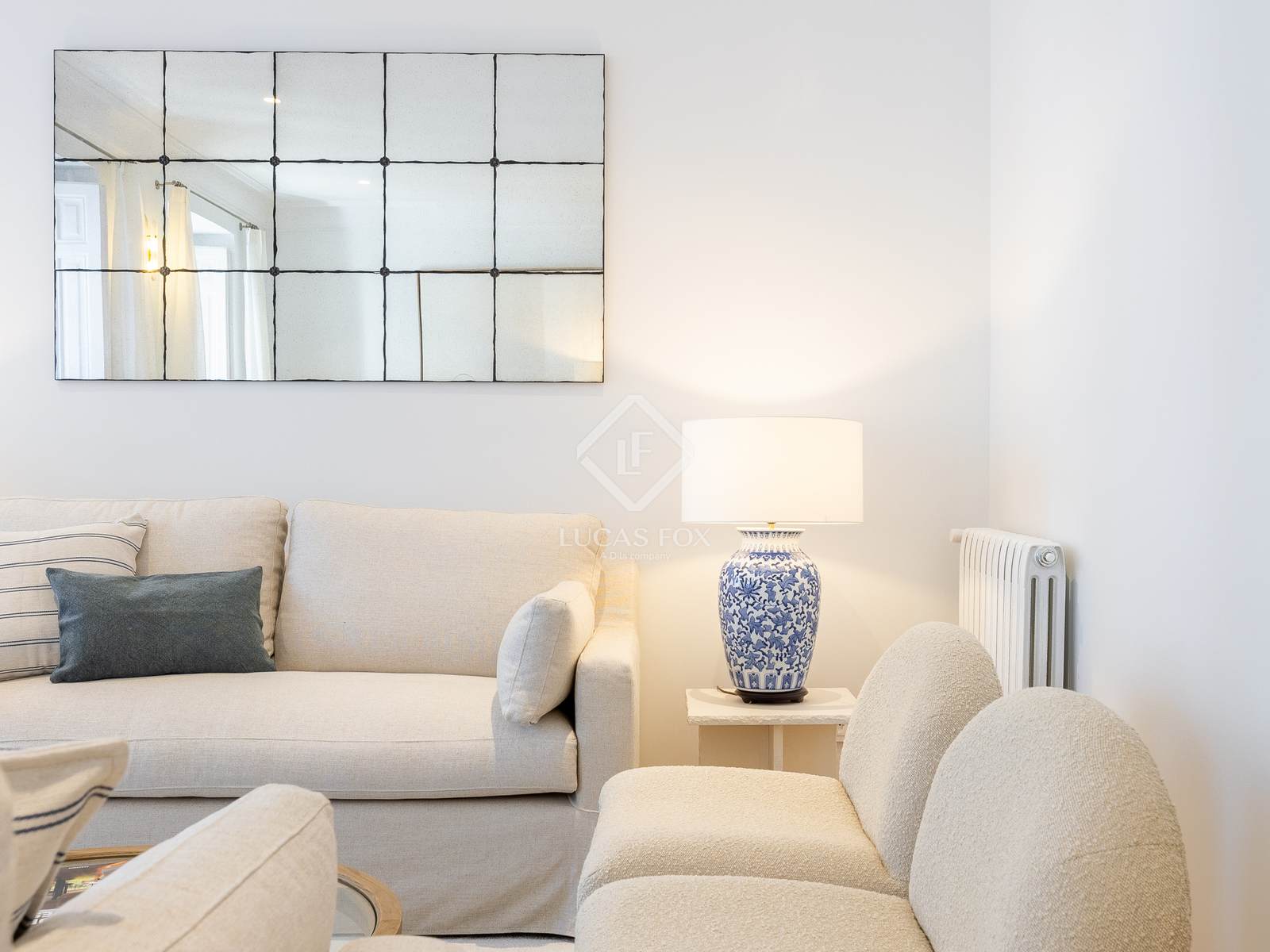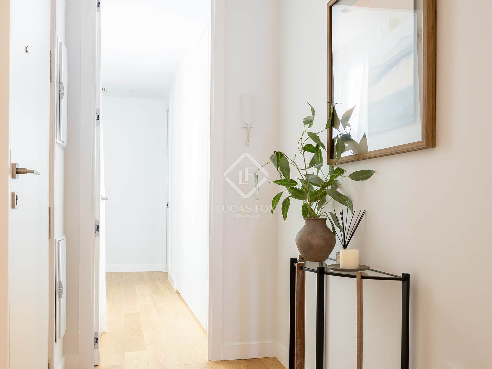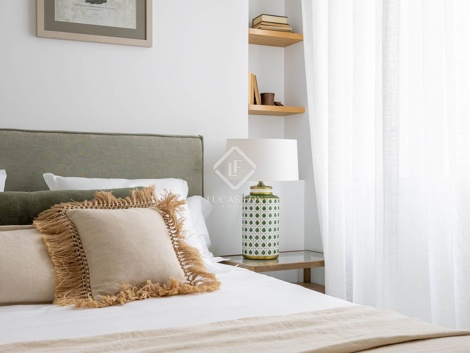 Newly renovated exterior apartment with three en-suite bedrooms, two balconies, and a viewing platform for sale in Jerónimos, Madrid.