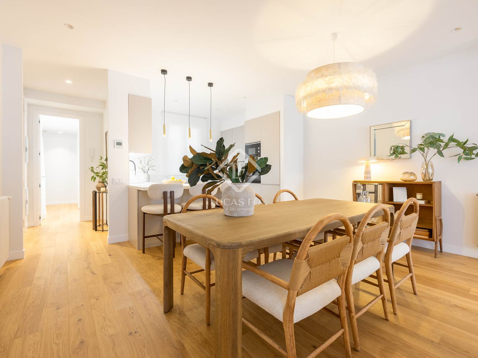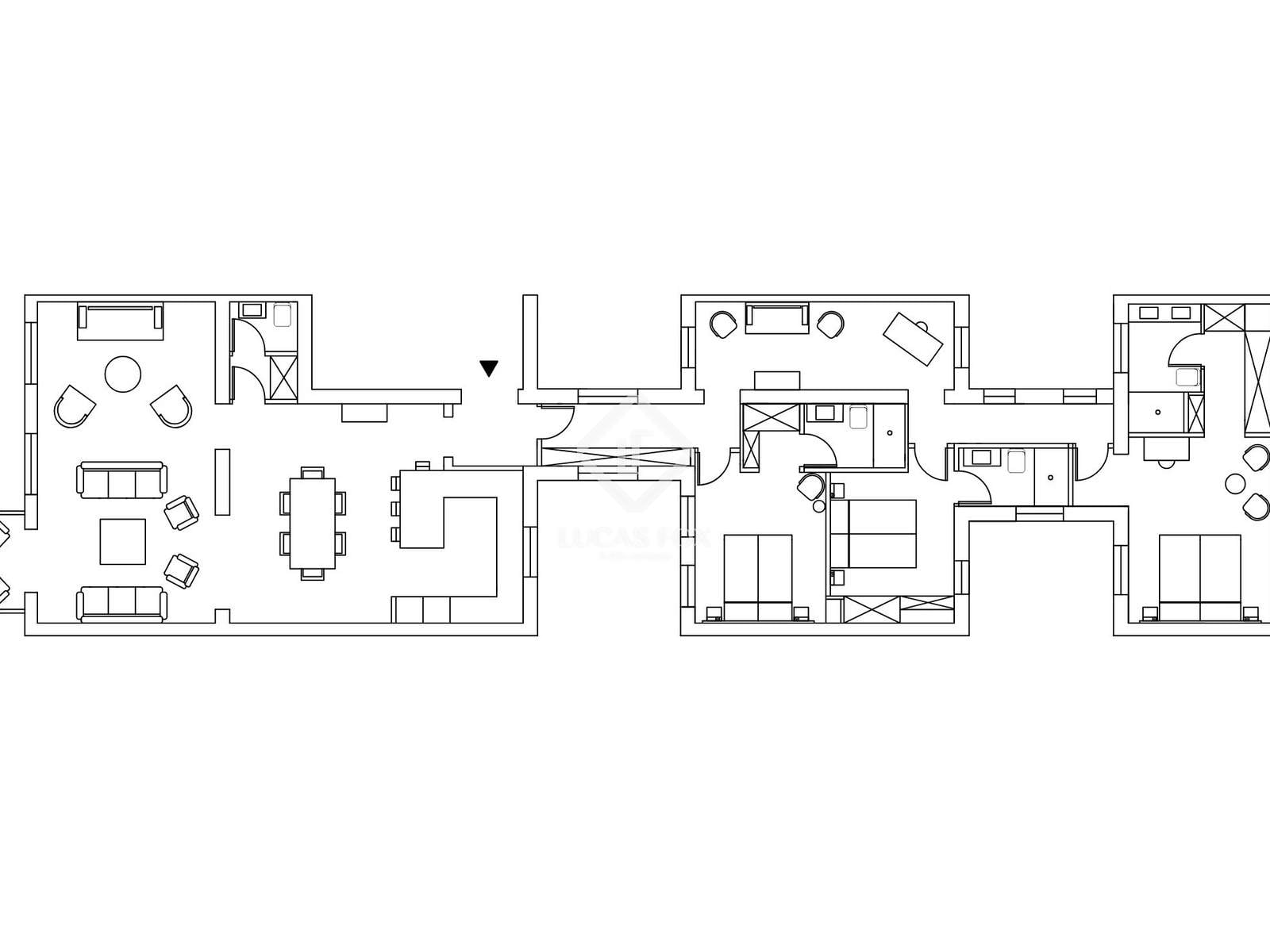 The apartment, completely renovated by design, has 182 square meters, distributed in two living areas , very bright with two balconies facing the street and a southerly aspect viewing point, a dining room, an open kitchen, three bedrooms en suite, a family room, a guest toilet and a separate laundry area .