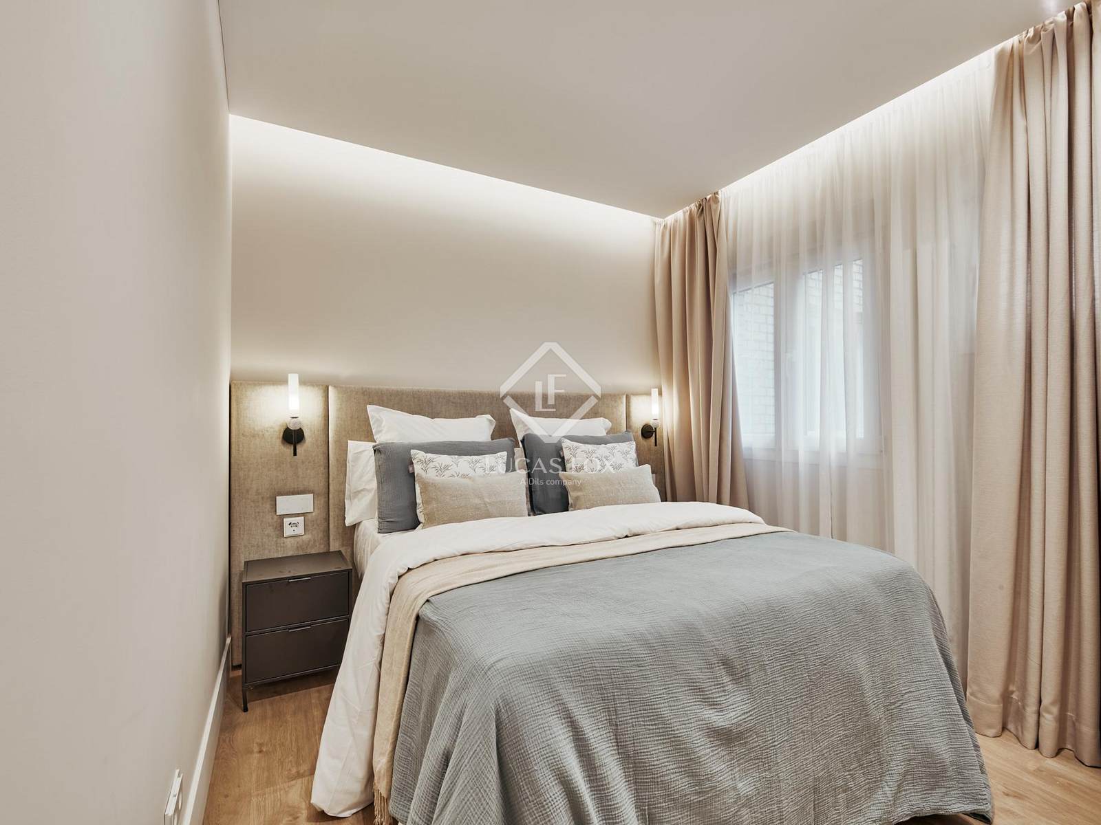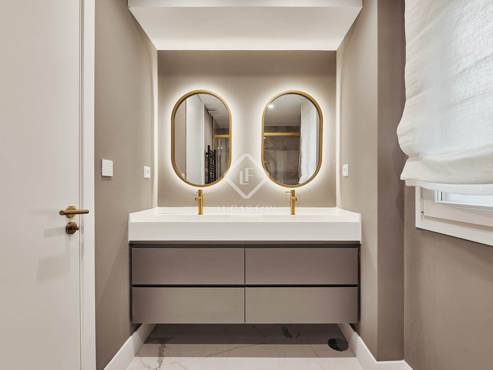Elegant designer apartment with 3 en suite bedrooms, terrace and luxury finishes for sale on the sixth floor of a building in Castellana, Madrid.