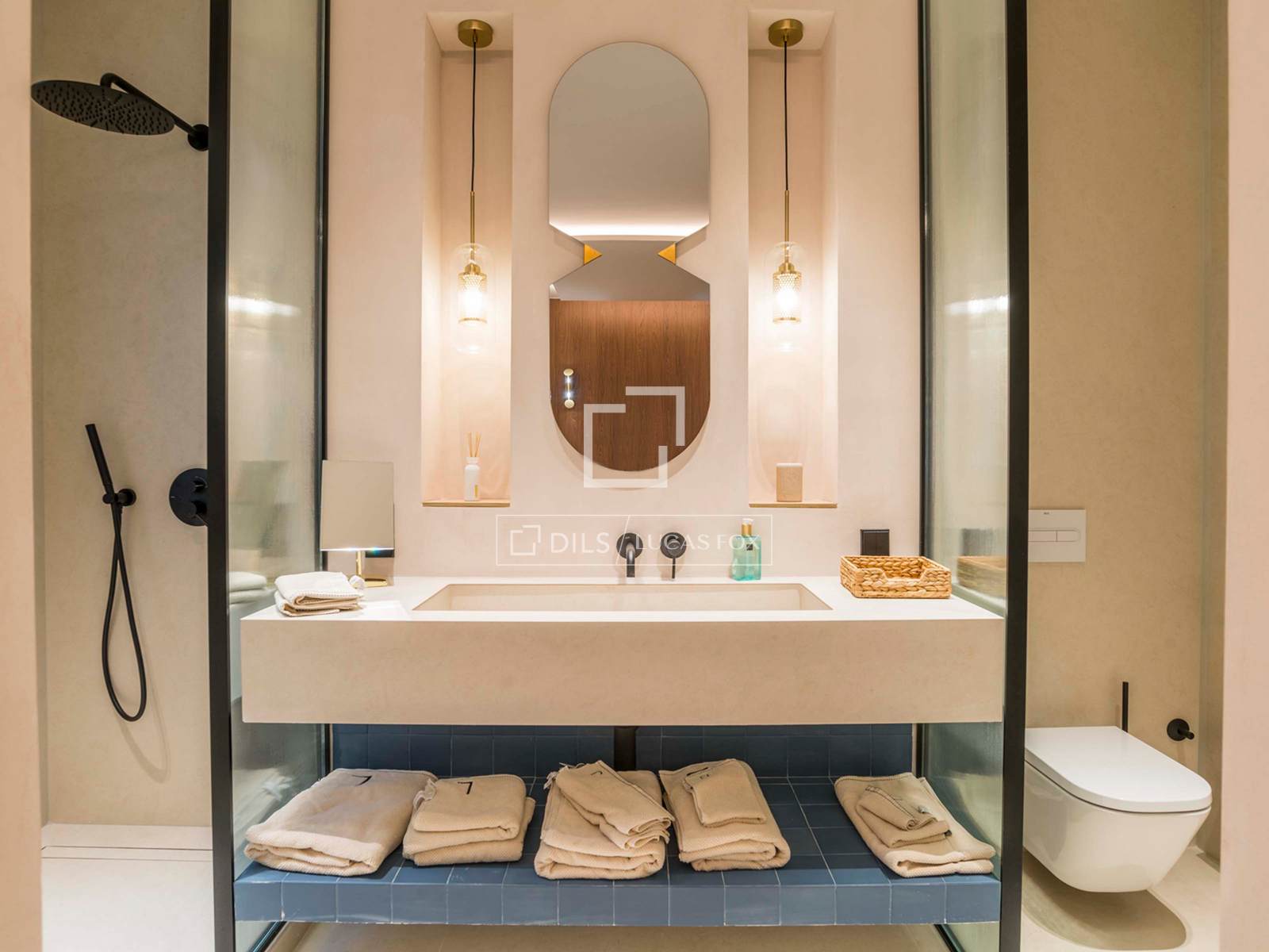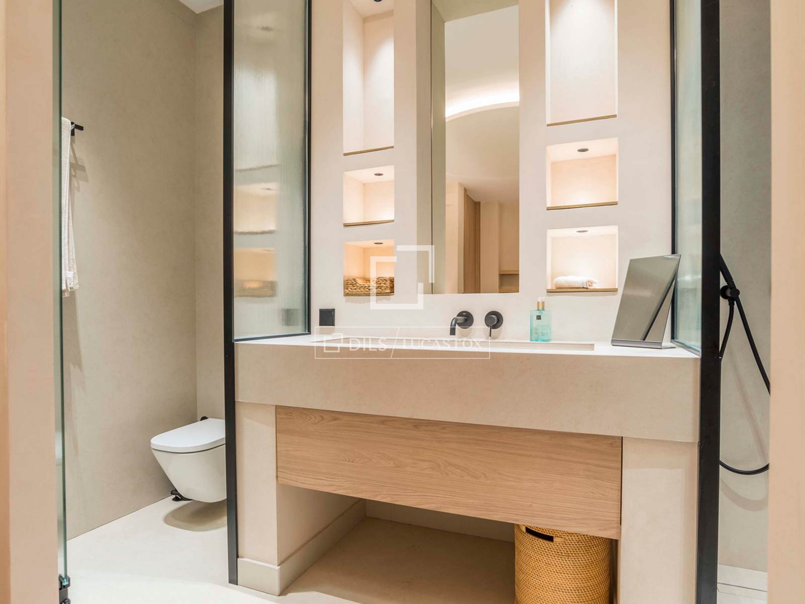 This is a single-family property per floor, designed to offer absolute privacy and maximum comfort. Its spacious outdoor areas are arranged around a bright living living room , a sophisticated open-plan kitchen with an island and central marble table, equipped with high-end appliances , and a well-maintained, separate laundry area.