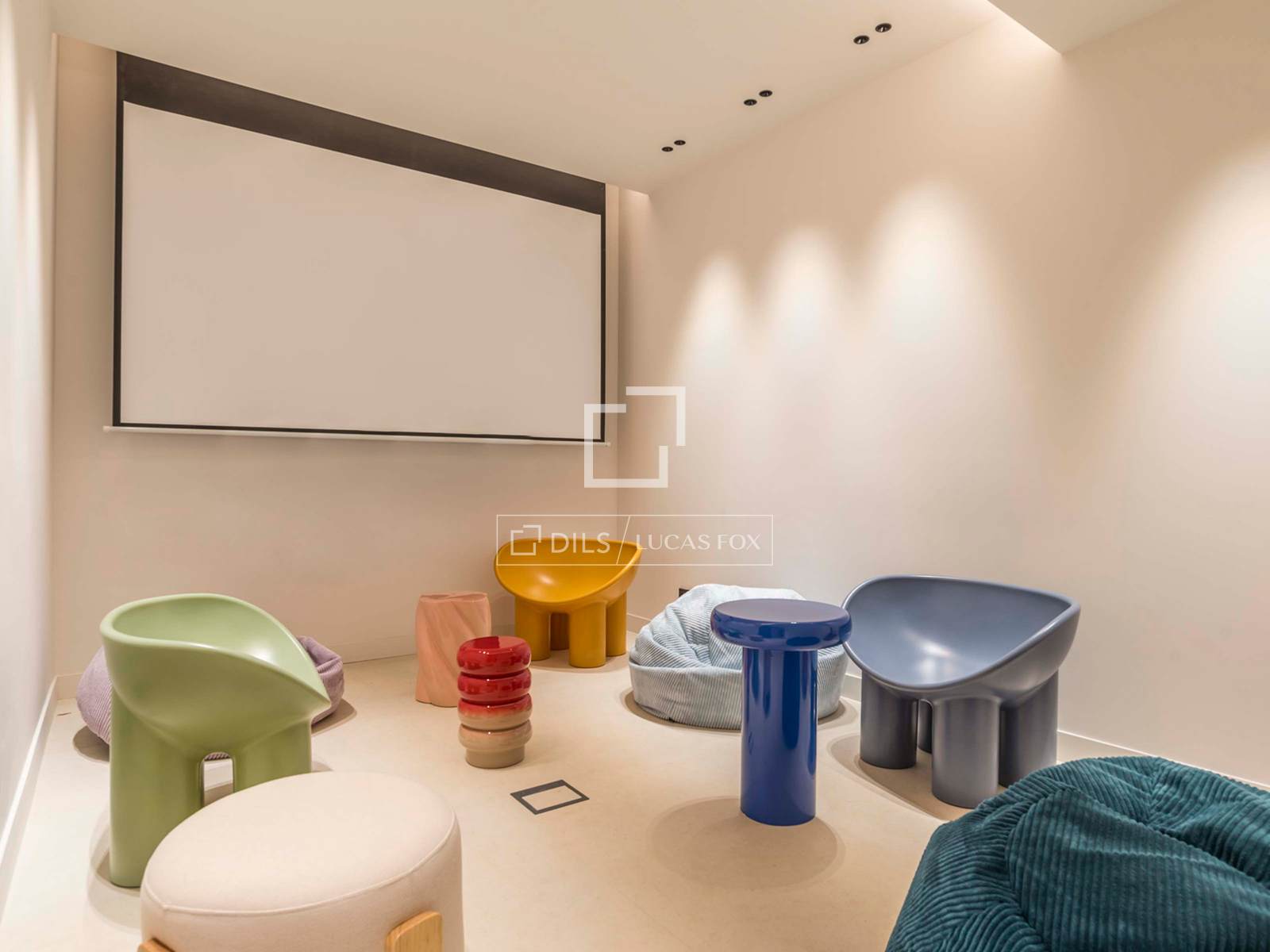 The bedroom area features six bedrooms with en-suite bathroom , plus an elegant guest bathroom. The property is further enhanced by exclusive spaces dedicated to well-being and leisure, such as a meeting room, cinema and exterior games room , gym and fitness room, creating a unique residential experience in the heart of the city.