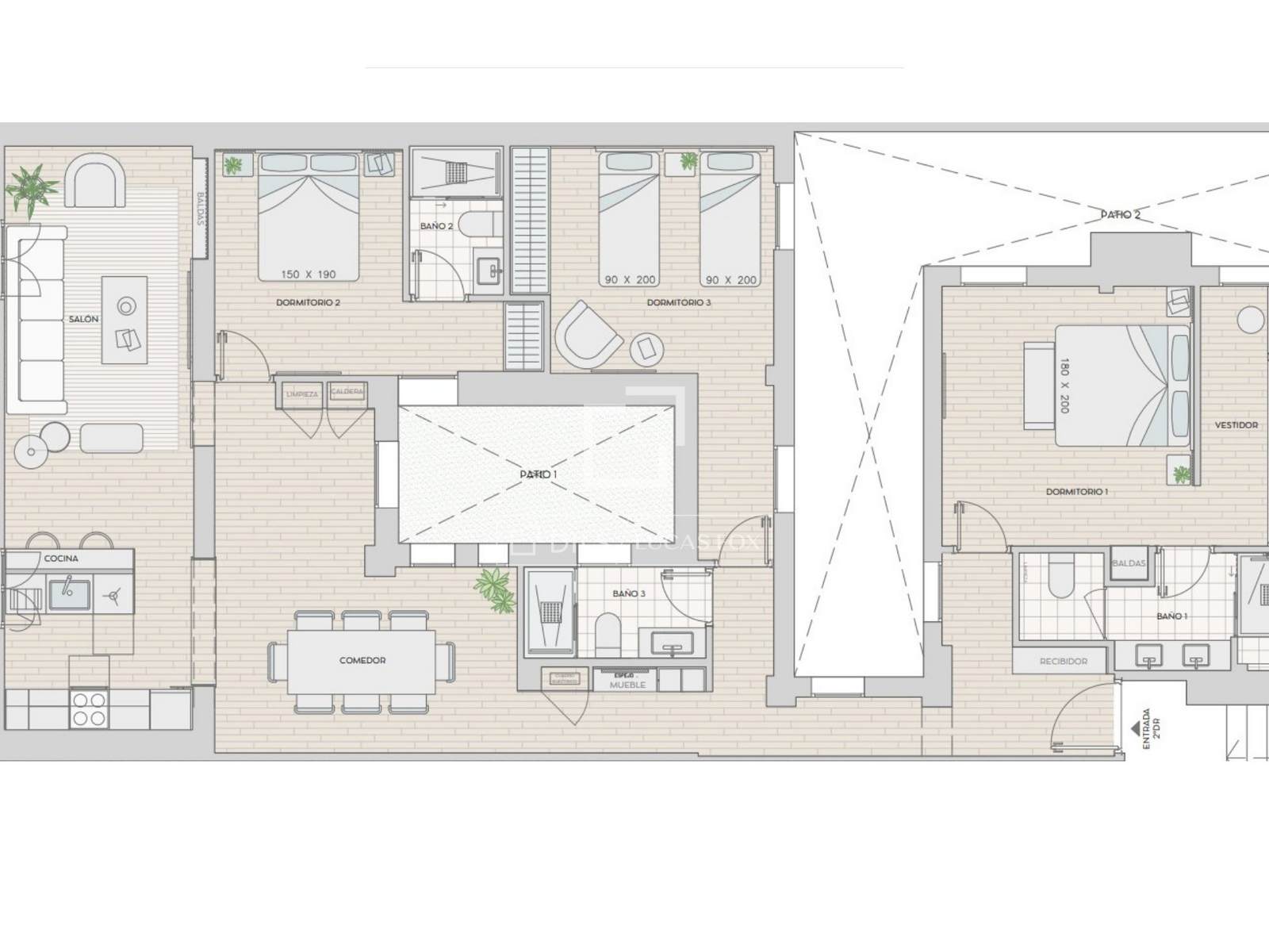 The property is located on the exterior floor of a building with an elevator and concierge service. It has a surface area of 166 m² and has been completely renovated according to an architectural and design project by the renowned studio Arctempus, offering spacious, functional, and meticulously designed rooms.