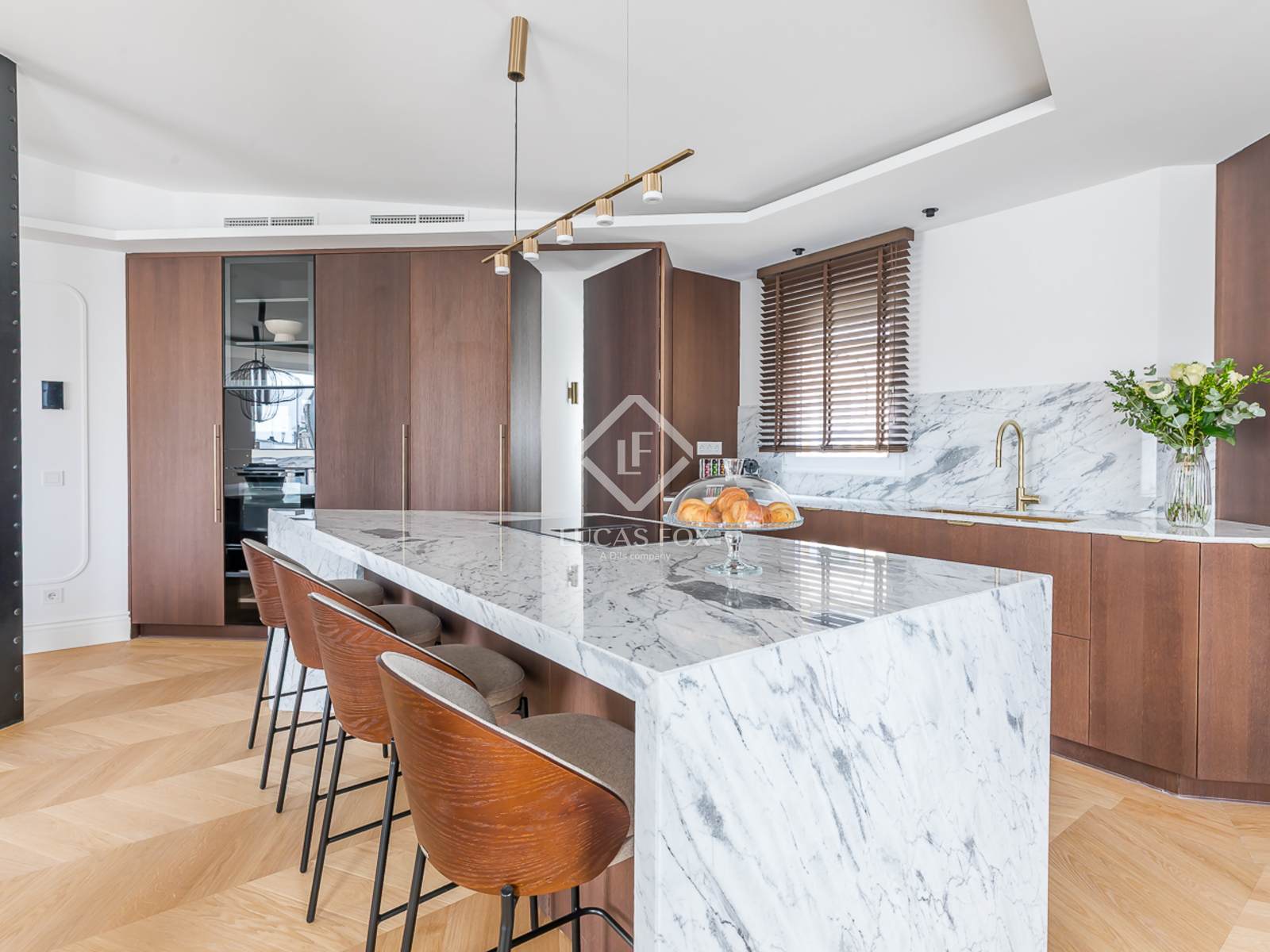 Lucas Fox presents this exclusive penthouse in Recoletos, located in a mid-20th-century building with two terraces offering stunning views of the Madrid skyline.