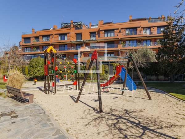 Wonderful newly built ground floor apartment of 315 m² with a private garden of 115 m² with a swimming pool for sale in the Sky Villas area of LGC7, a gated development with 24-hour security in La Finca, Pozuelo.