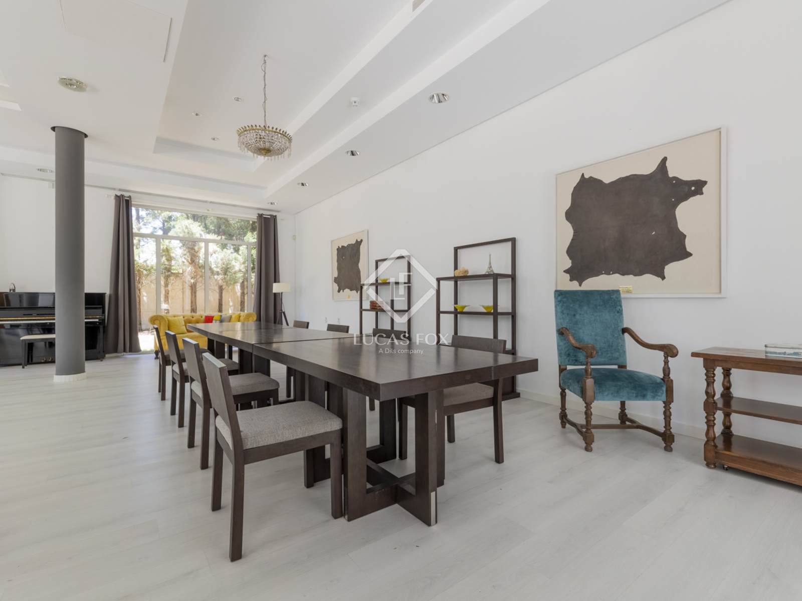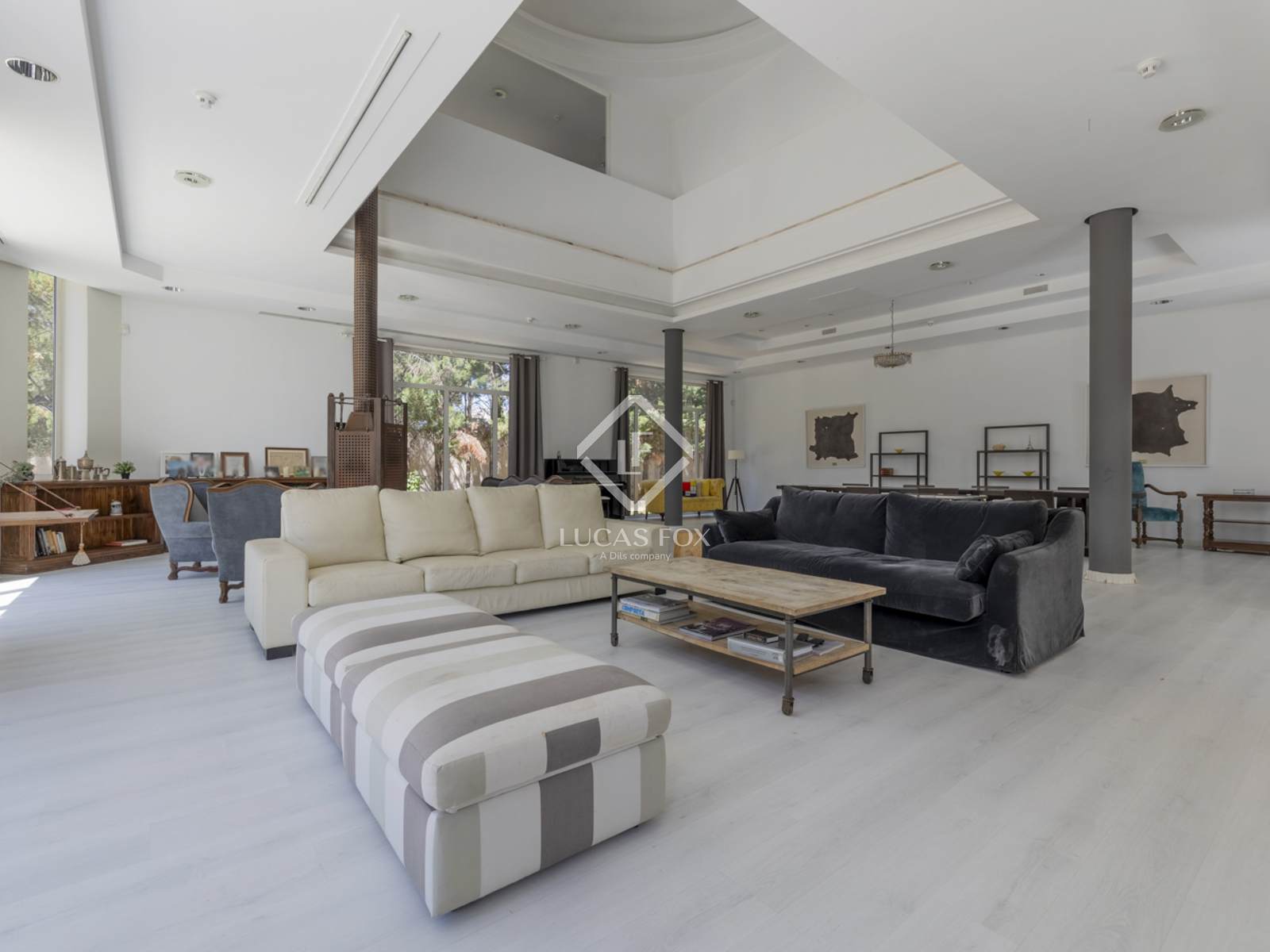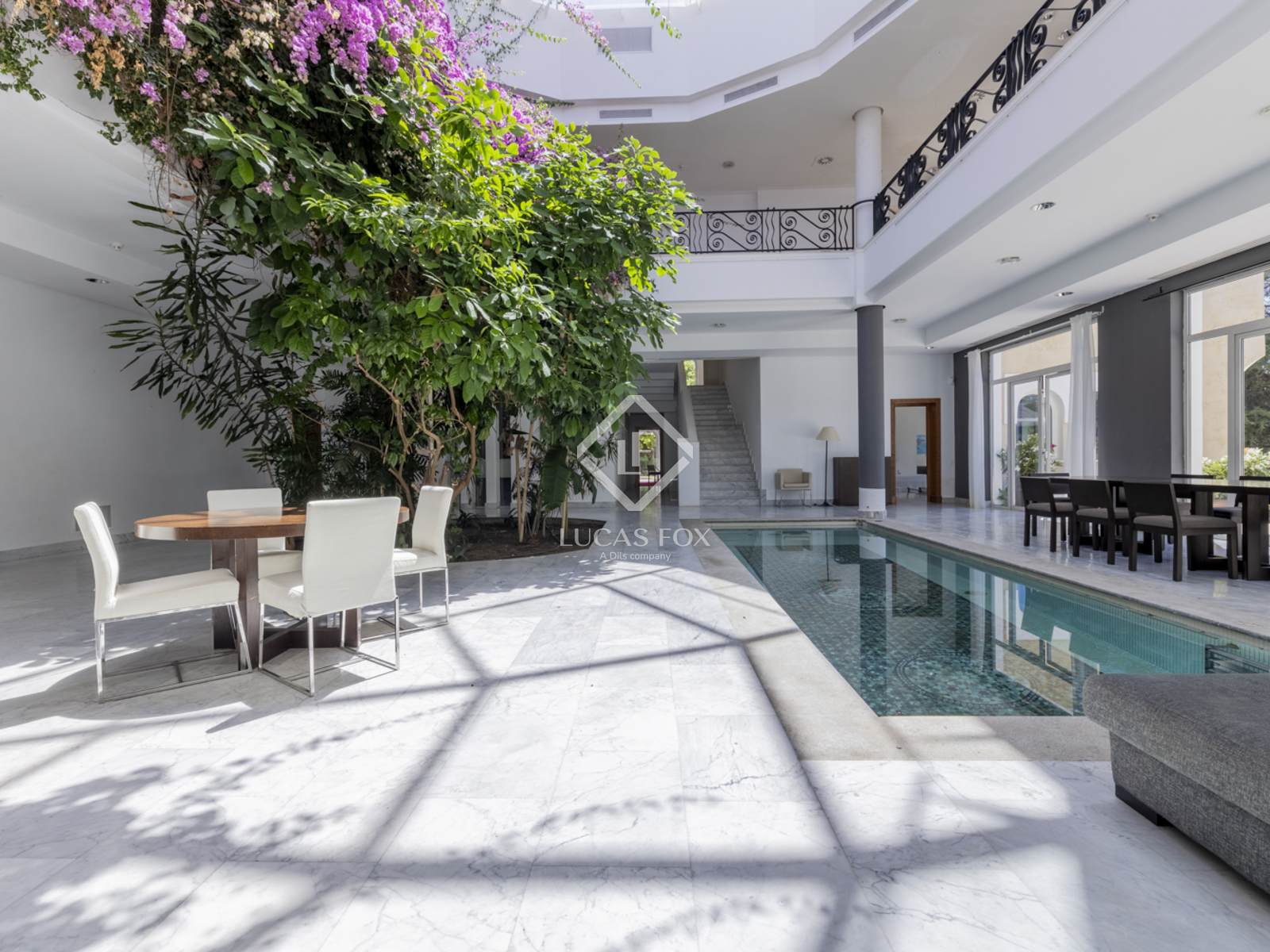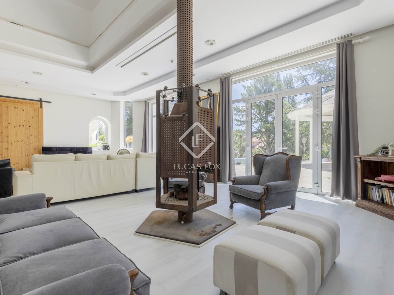 Spectacular villa for sale with a grand living room with high ceilings, majestic garden and indoor pool which reflects and celebrates the beauty of a unique architecture in the best urbanization of Pozuelo.