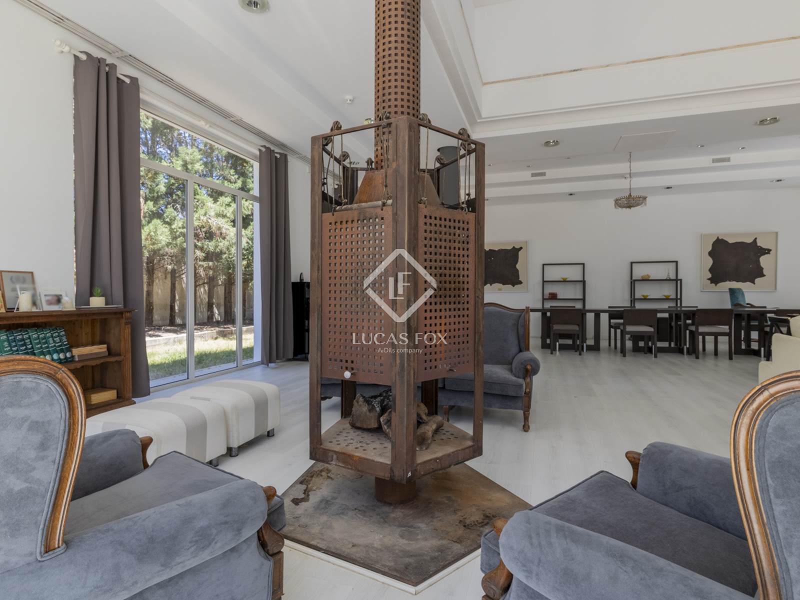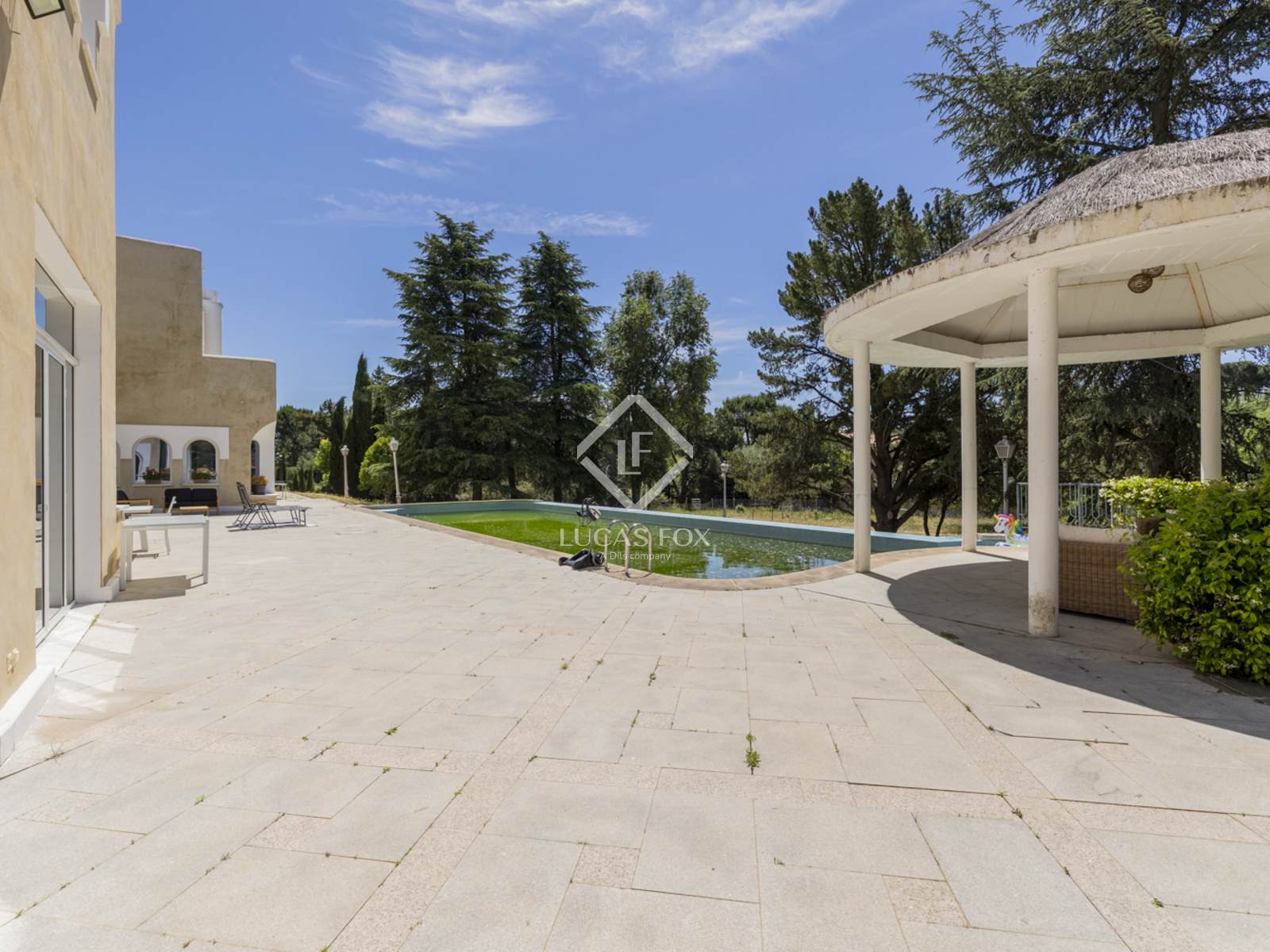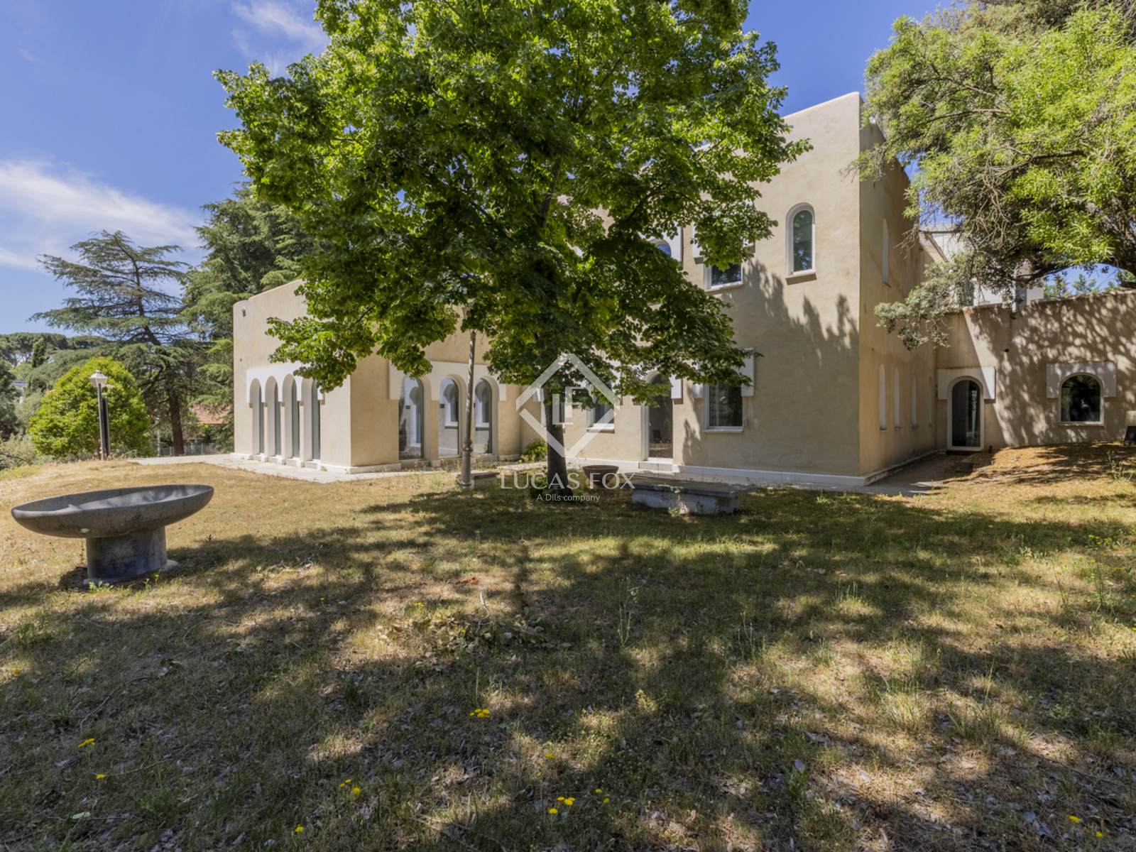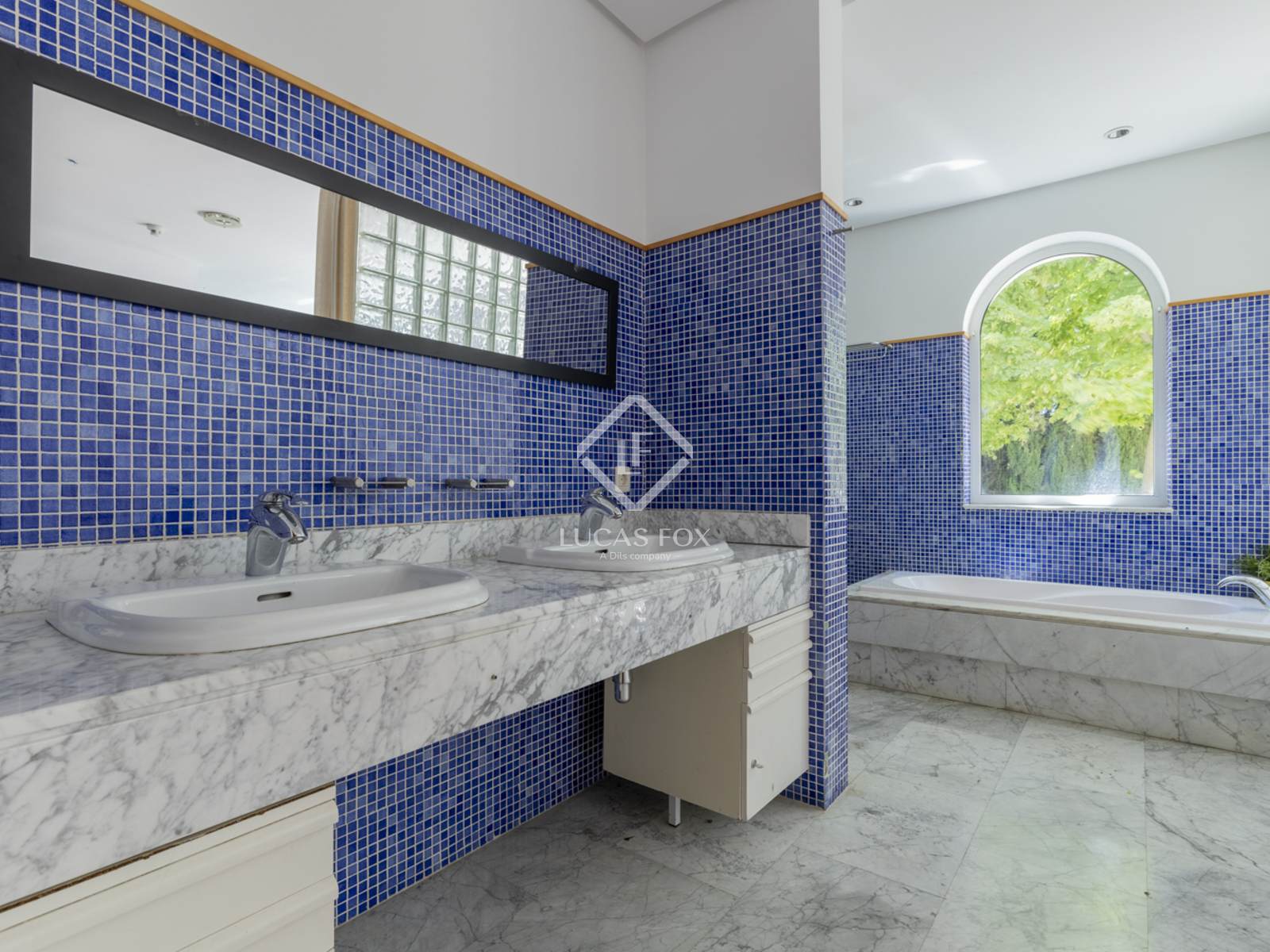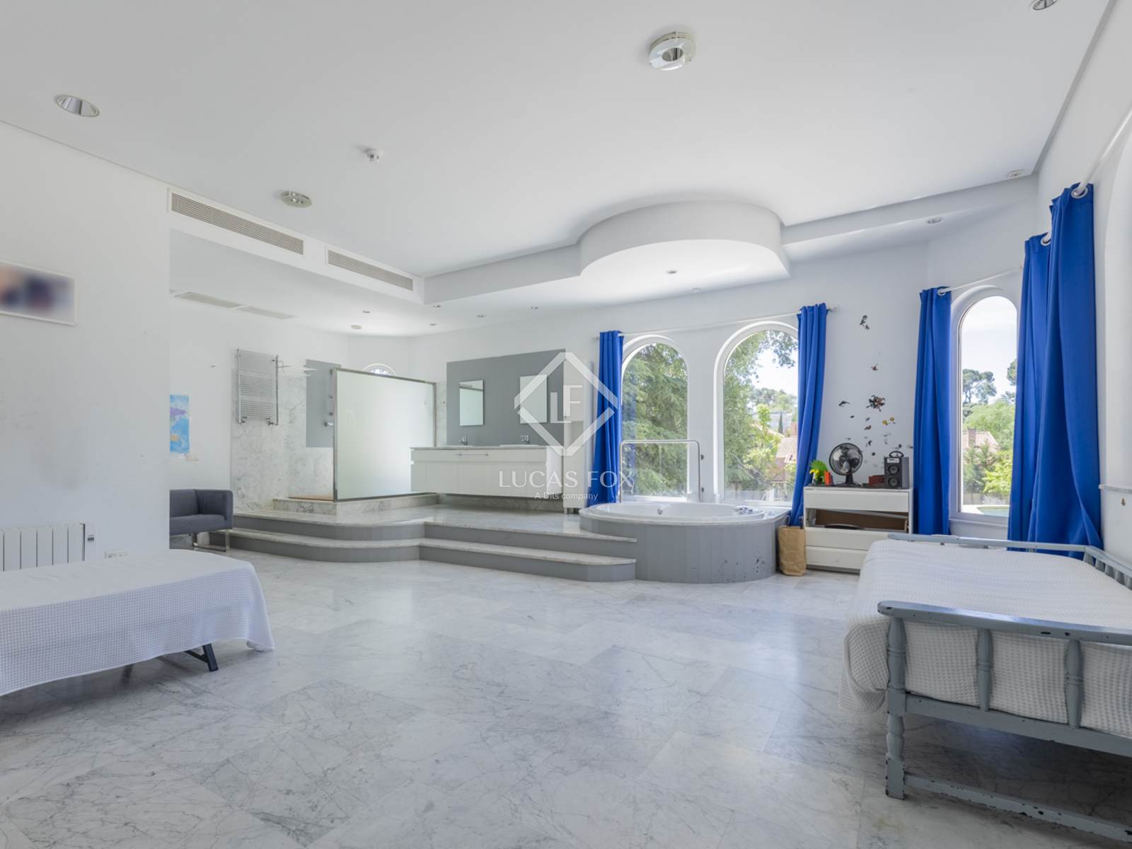 Spectacular villa for sale with a grand living room with high ceilings, majestic garden and indoor pool which reflects and celebrates the beauty of a unique architecture in the best urbanization of Pozuelo.