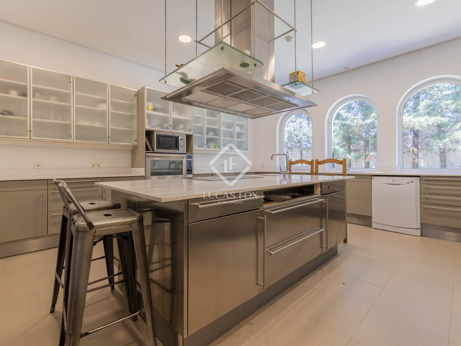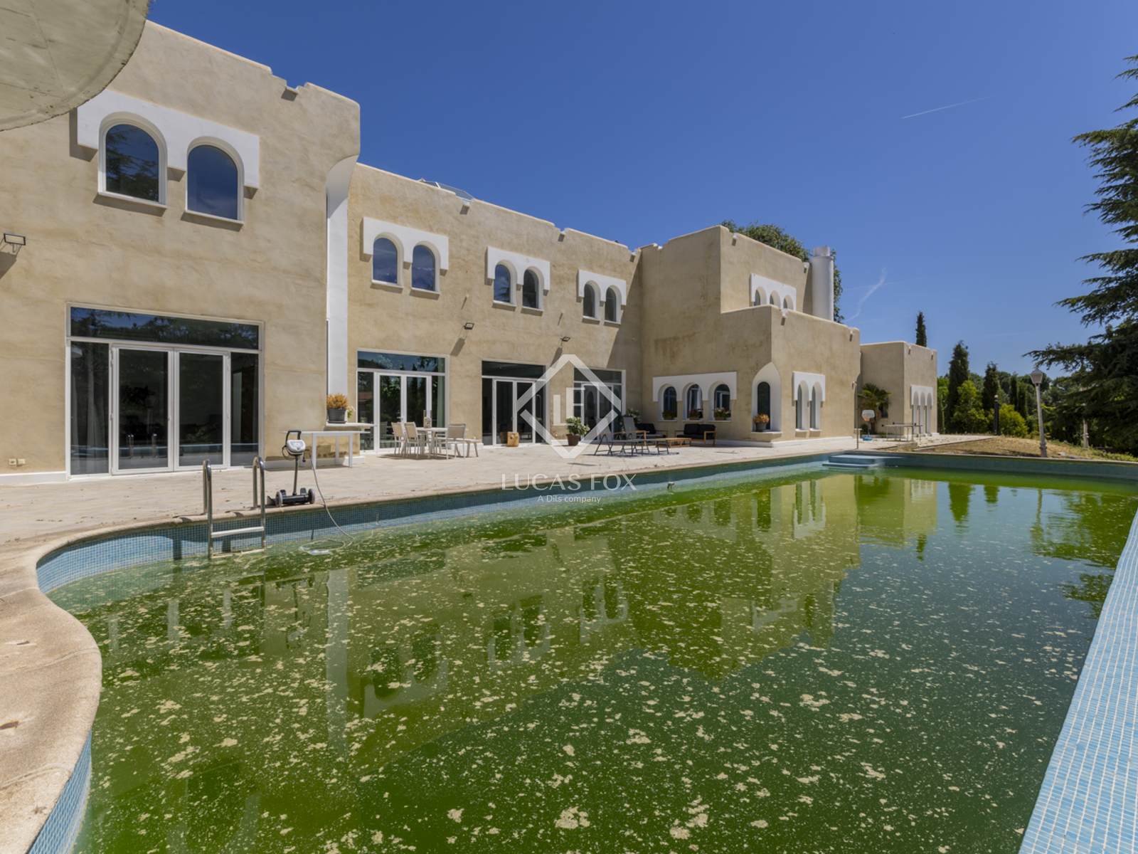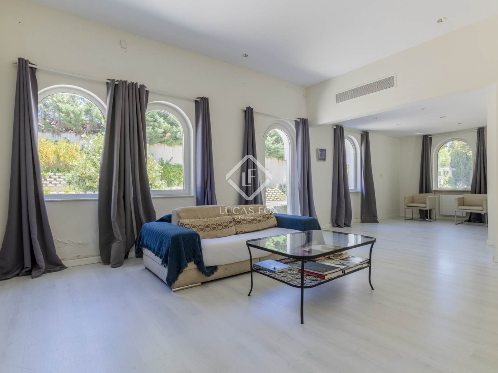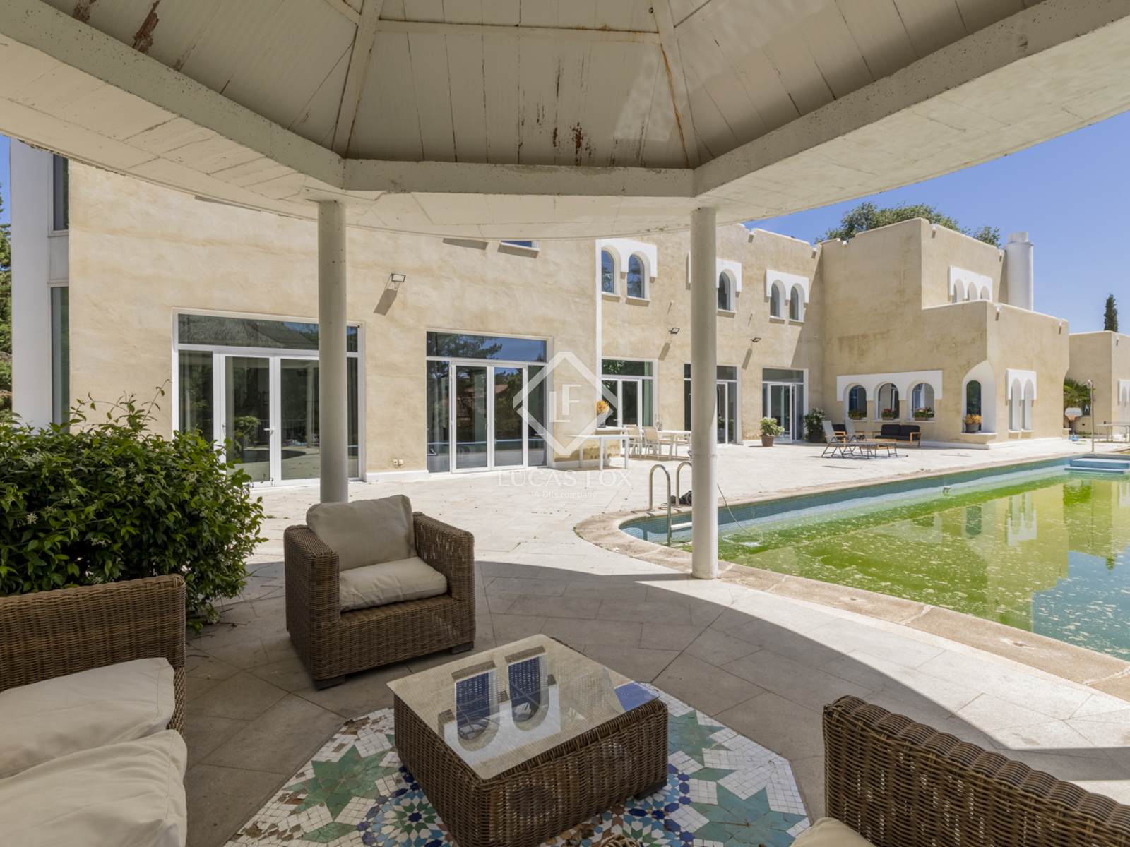 Spectacular villa for sale with a grand living room with high ceilings, majestic garden and indoor pool which reflects and celebrates the beauty of a unique architecture in the best urbanization of Pozuelo.