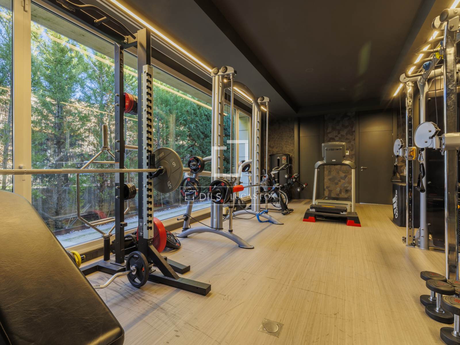 Adjacent to the main bedroom are three secondary bedrooms, all with en-suite bathrooms and large built-in wardrobes. At the other end of this wing, there is a spacious and fully equipped gym with a bathroom. Next to the gym are two large guest bedrooms, one of which has an en- bathroom.