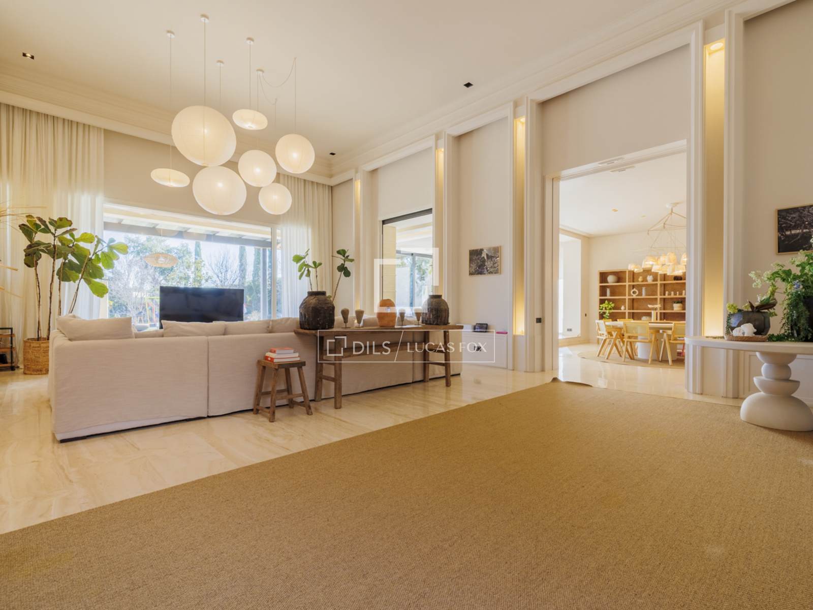 Its current owners have been renovating and expanding it to achieve over 930 m² of living space distributed on a single floor. All of this is achieved with a unique layout that allows the different spaces to flow naturally into one another and offers pleasant views and access to the garden, terraces, and the fantastic swimming pool.