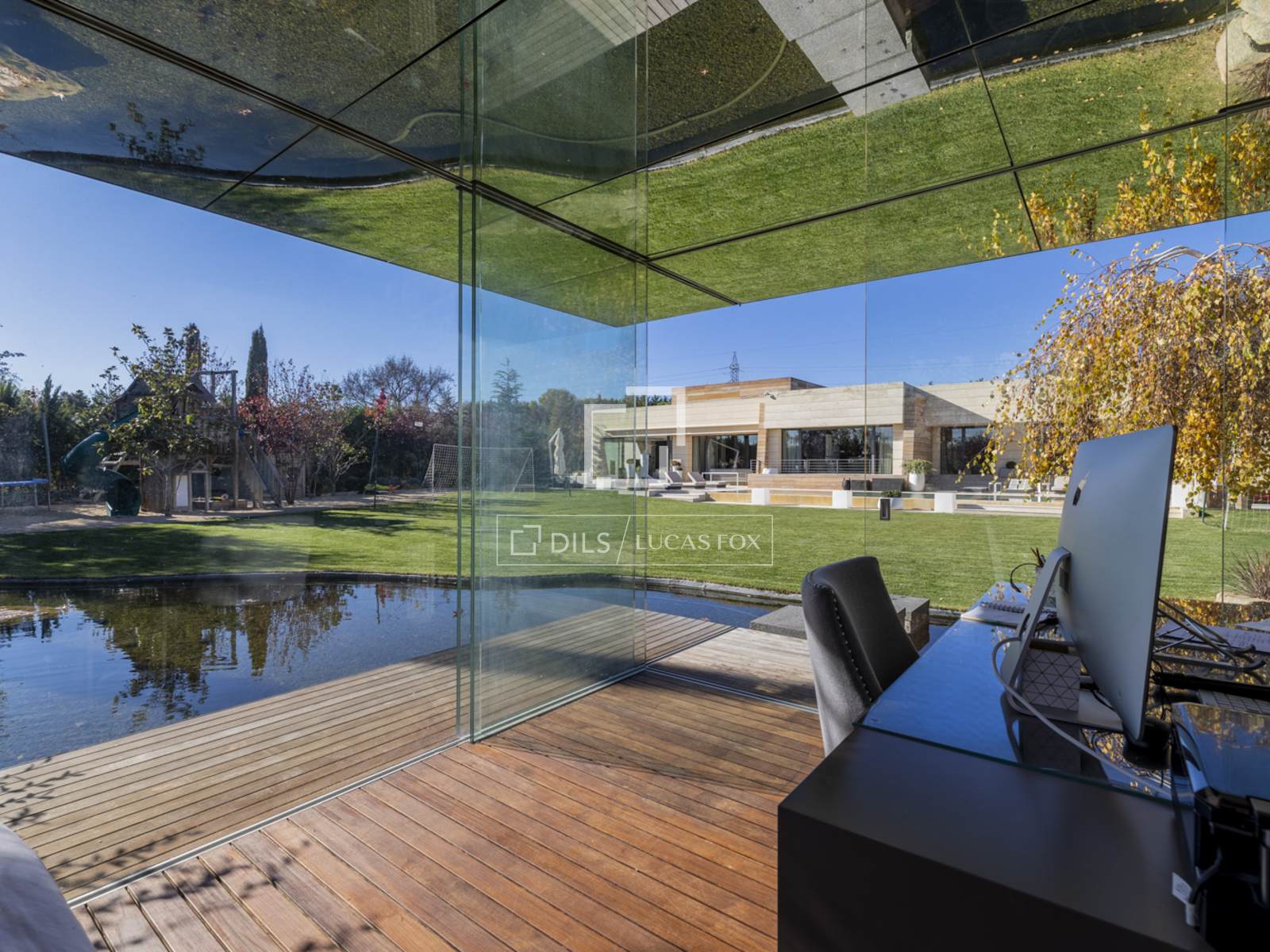 Luxury single-storey villa on 3,200 m² plot with 8 bedrooms, landscaped garden with a pool, gym and a 6-car garage, located in La Finca, the most private and exclusive community in Pozuelo.