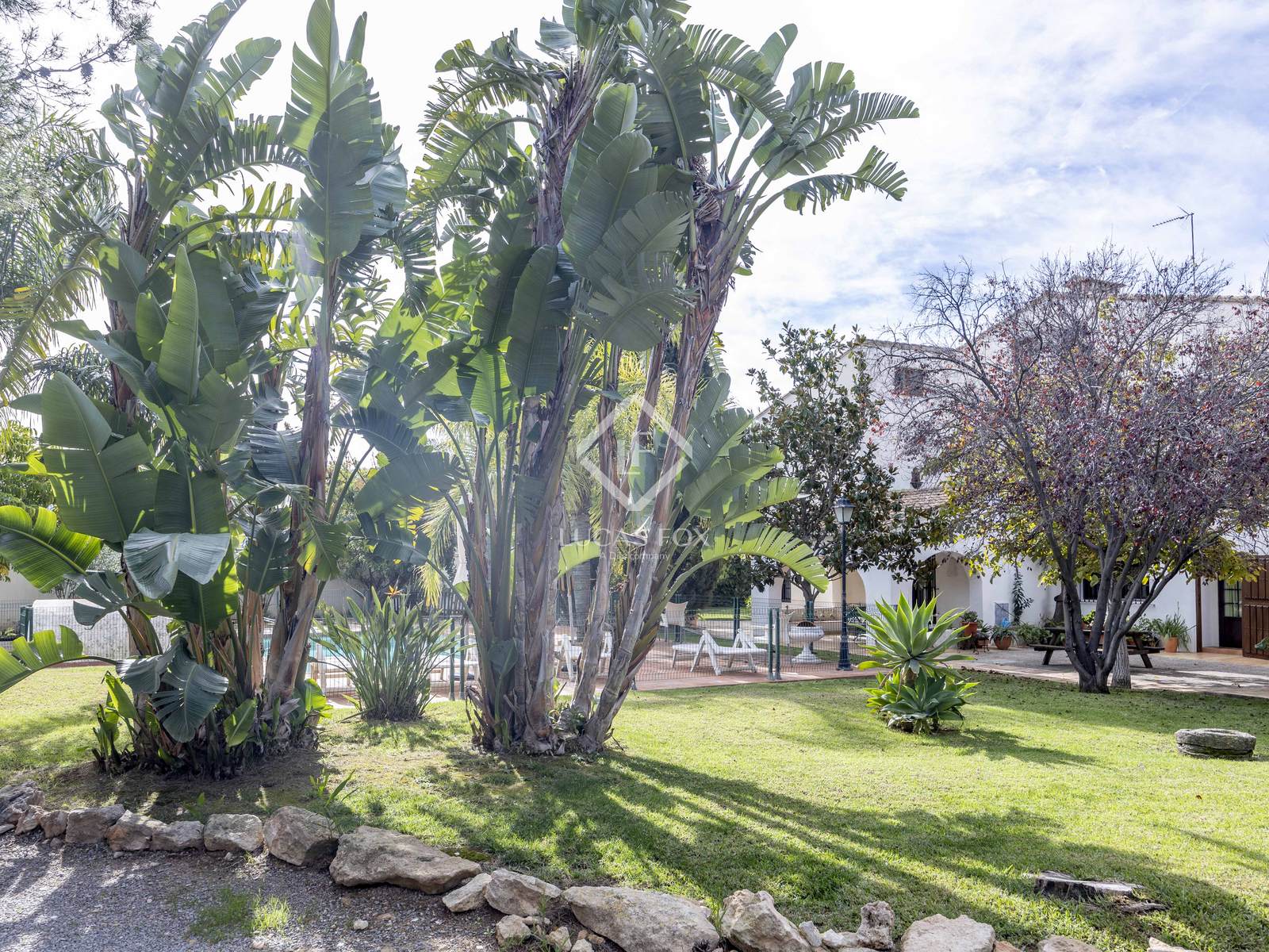 The exterior is a true oasis: a swimming pool with a fenced sun deck, extensive areas with mature vegetation, olive trees, palm trees, and charming corners. It also features a traditional paella cooking area, a vegetable garden garden, stables, and ample parking.