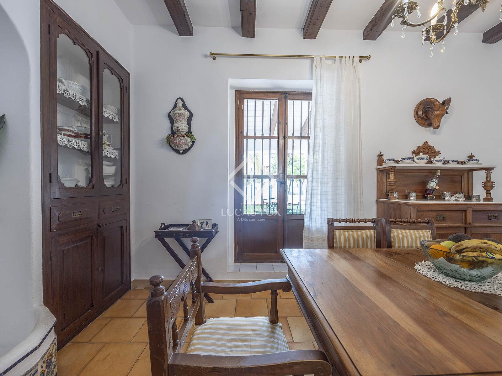 The main house features eight bright bedrooms and three full bathrooms, as well as additional outdoor toilets ideal for use during events or for guests. The main kitchen, in a traditional Valencian style, maintains its rustic and welcoming atmosphere, combining charm and functionality for everyday life.