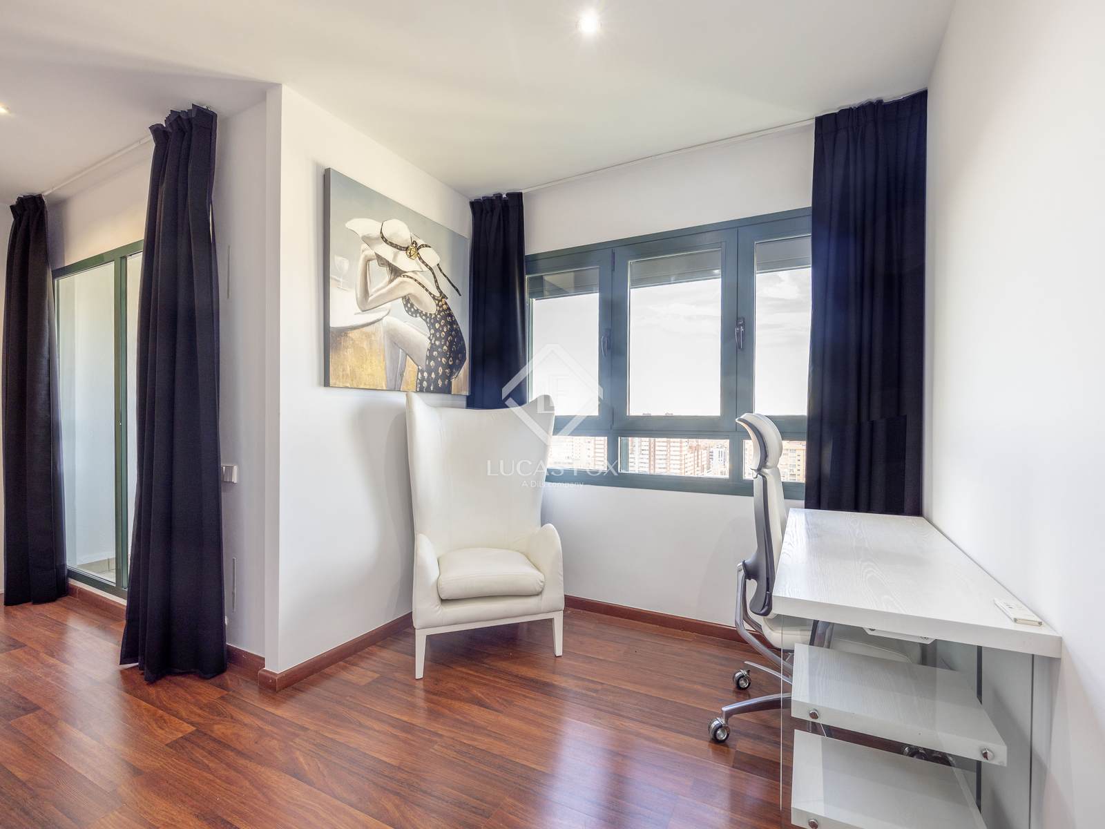 The penthouse opens to the city with each window framing a shifting panorama, from the curves of the Ciudad de las Artes y las Ciencias to the line where the sea begins.