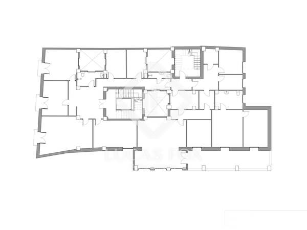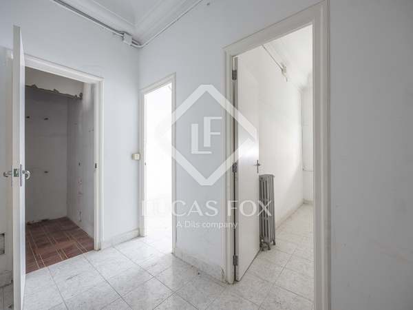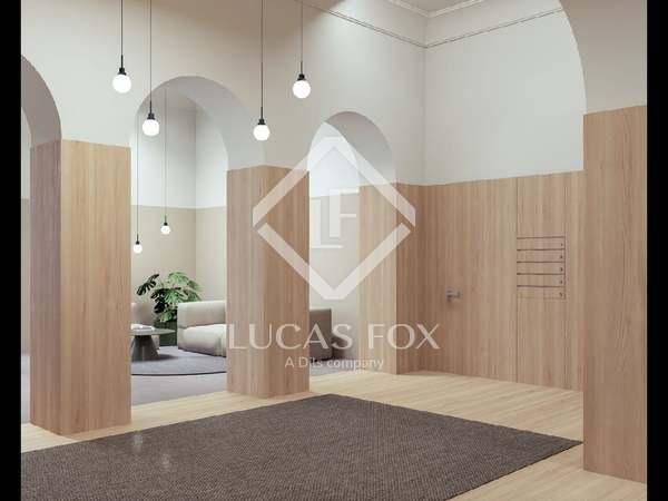 A spacious hall welcomes us to give us an idea of the generous dimensions of the flat. Here, the unique floors, the magnificent carvings and the quality of the woodwork stand out. These elements will accompany us throughout our entire journey throigh the property.