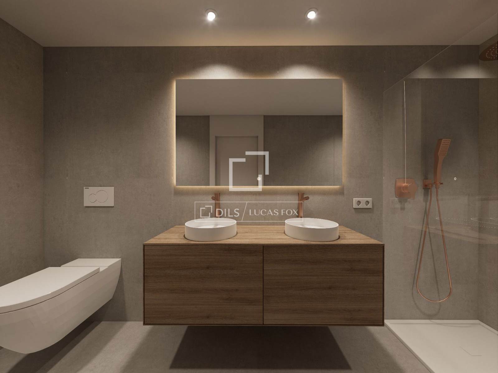 The property offers four spacious bedrooms and two contemporary bathrooms, open-plan living kitchen and dining areas with several lovely balconies, and an option of two parking places. At the rear, there is access to a large private terrace that goes out onto a large patio.