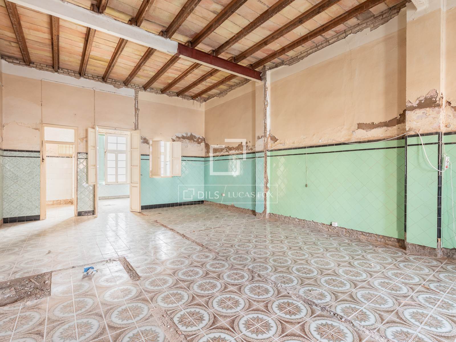 The property has a classic Cabanyal façade and an interior patio. It’s composition, the moulded carpentries or the metallic handrails are representative of the traditional architecture of the area. Inside, there are very well conserved typical valencian floorings and high ceilings.