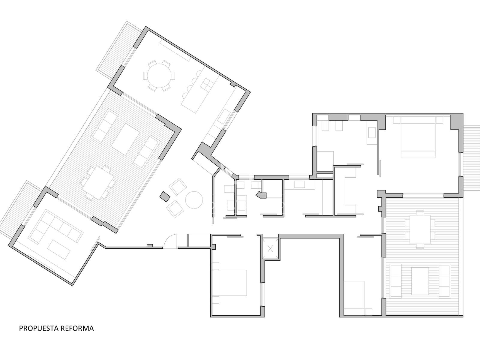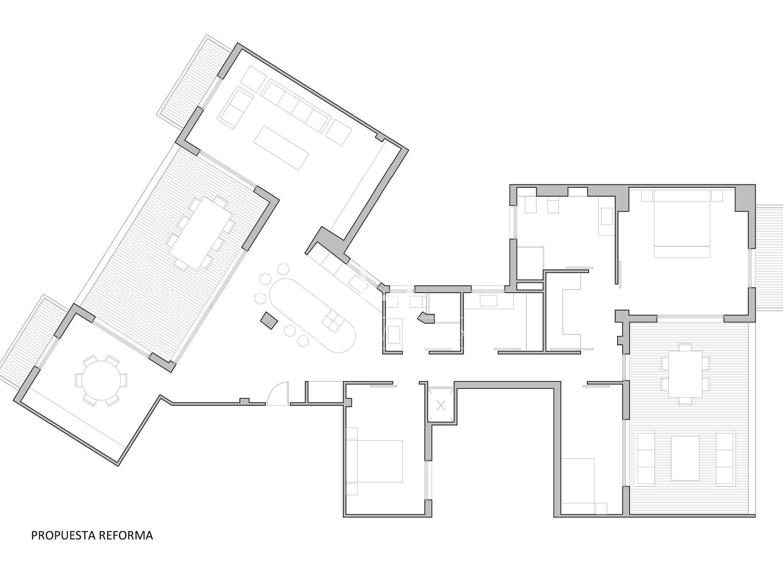 The property offers four spacious double bedrooms, including the main bedroom with a private bathroom, a large dressing area, and direct access to one of the terraces, perfect for enjoying an intimate and relaxing space with natural light throughout the day.