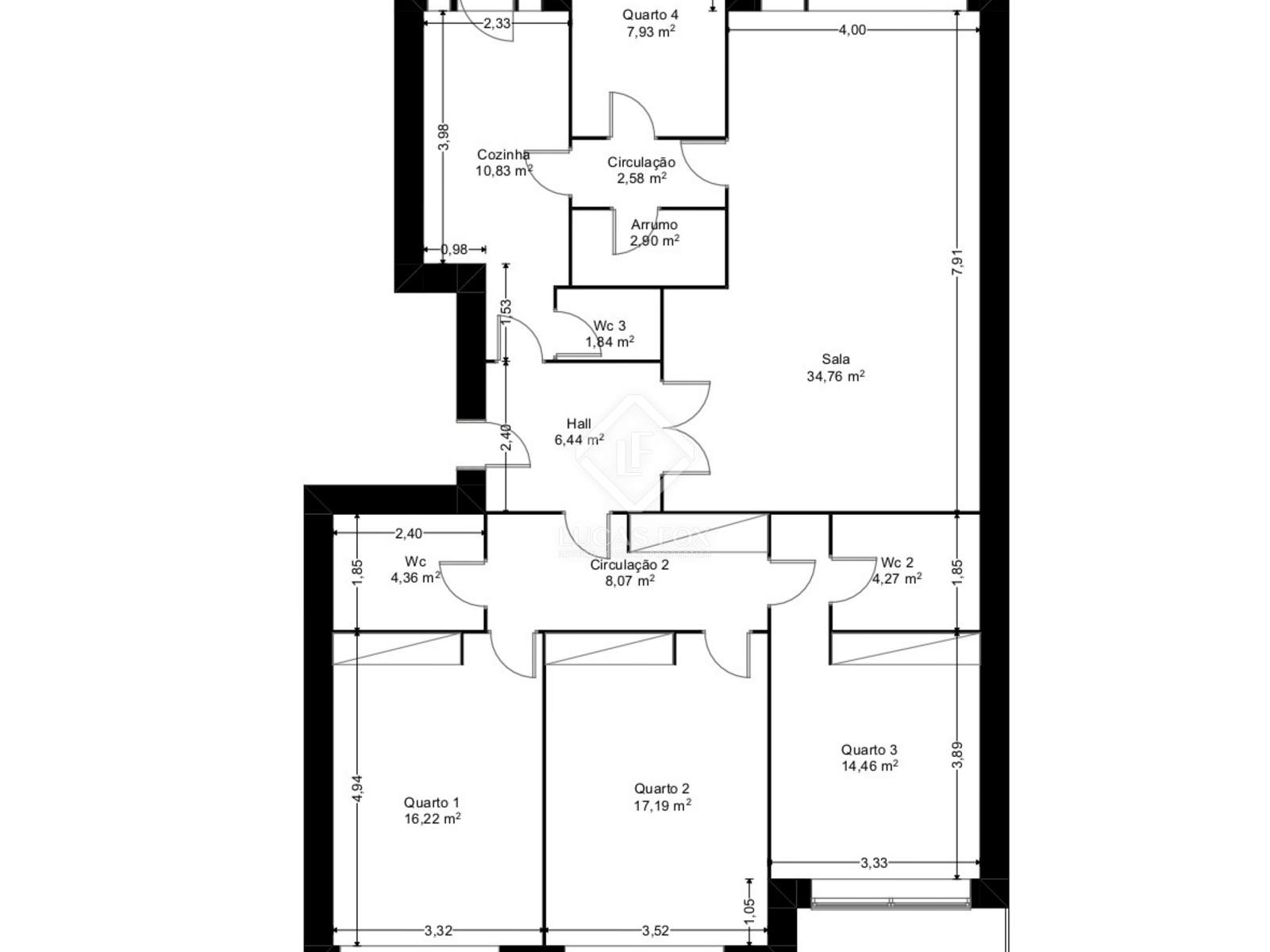 The apartment has a total gross area of 192 m2 (of which 145 m2 corresponds to the private gross area, 12 m2 to the outdoor area/balcony, 30 m2 to the parking space and 5 m2 to the storage room) and is distinguished by its spacious areas, good distribution of spaces and excellent natural light.