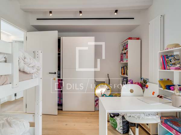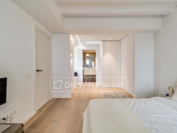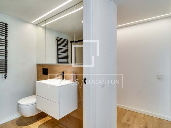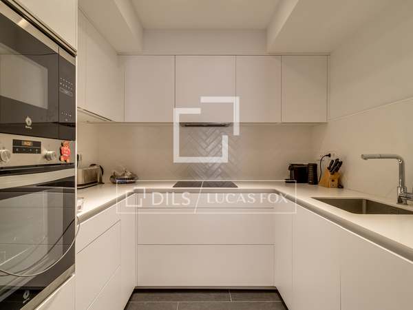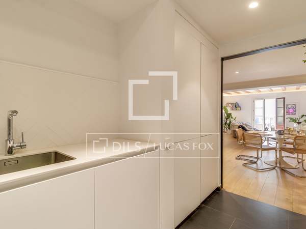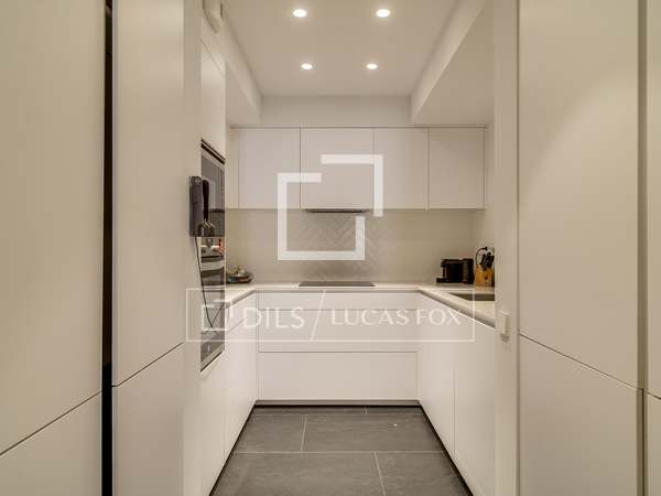 In the corridor there is a discreet and elegant guest toilet. A spacious, open-plan living - dining room with many windows with beautiful views of the emblematic Vía Laietana. A beautiful openkitchen, fully equipped with high-end appliances, cobi fridge, teppanyaki, induction, wine cellar complete this elegant home, fully designed, with parquet flooring, electrical aerothermal system.